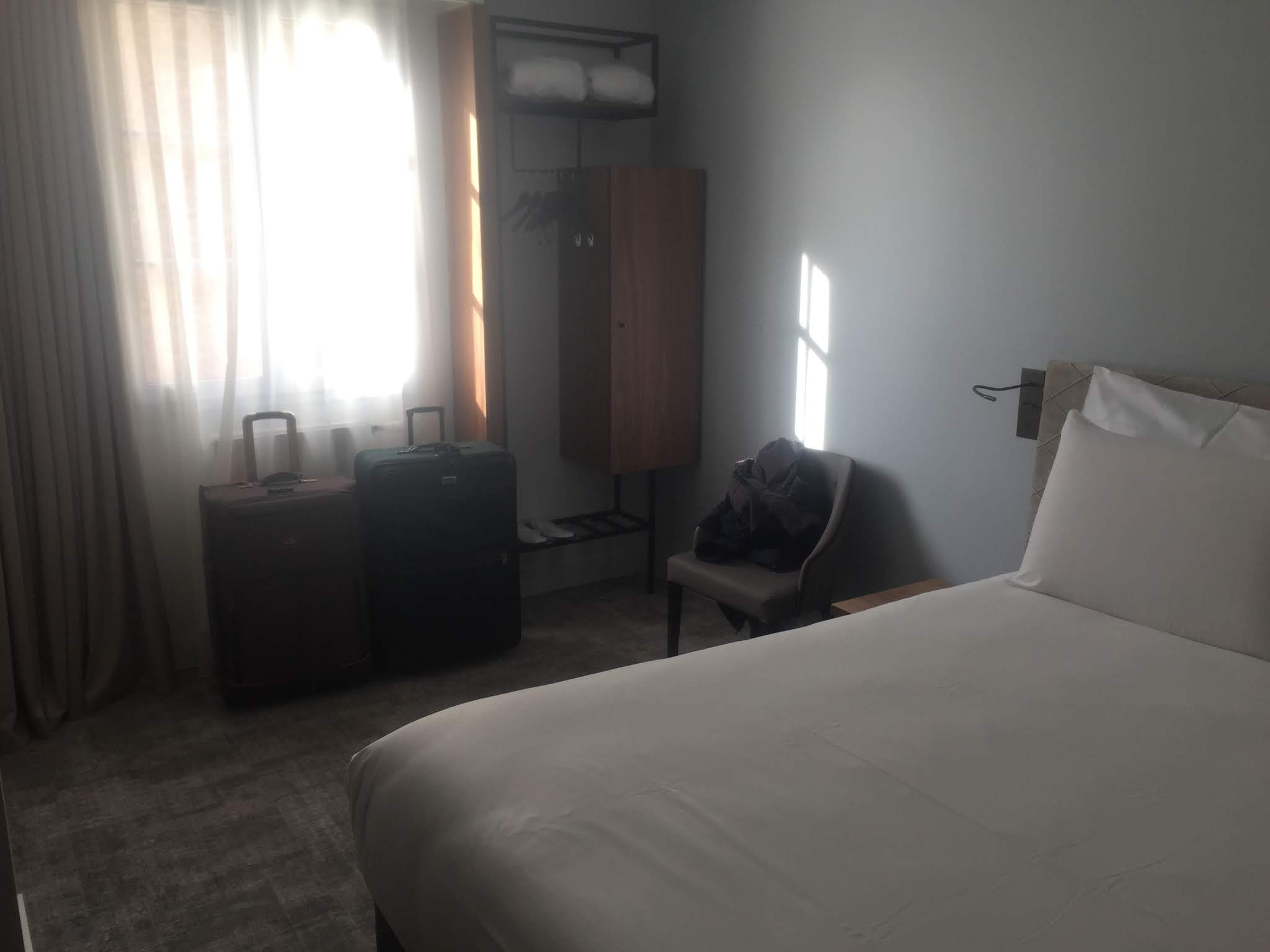Petite chambre. Il n'y a pas de garde-robe. Trop de bruit provenant d'un pub juste en dessous des chambres de l'hôtel. La douche et la porte-fenêtre ne fonctionnaient pas bien. D'un hôtel quatre étoiles, avec un prix quatre étoiles, je m'attendais à mieux. Bon petit déjeuner.