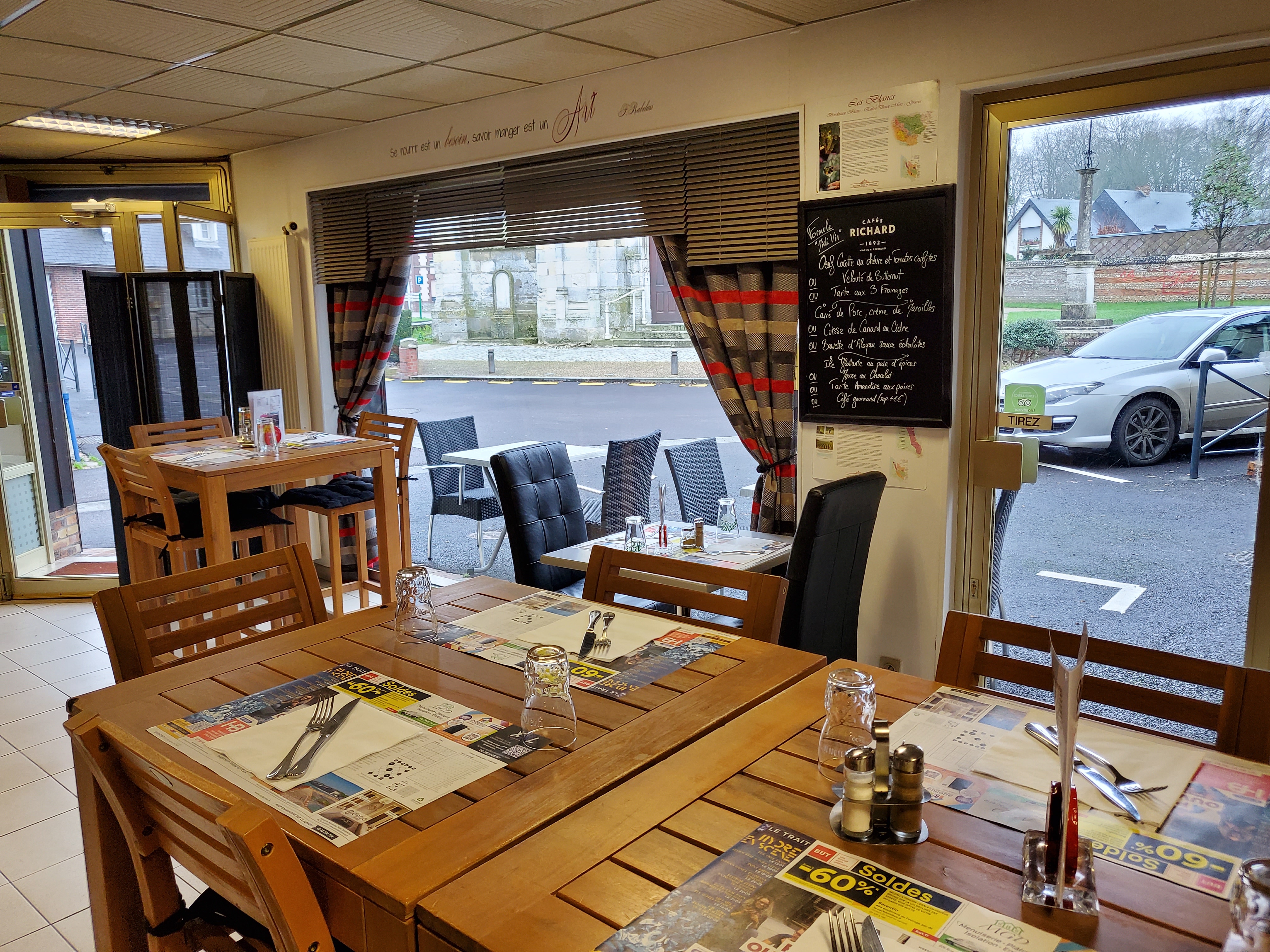 Nous avons dejeunès hier midi en terrasse très bien accueillis les plats excellents le personnel très sympathique je recommande vivement il faut réserver pour être sûr de pouvoir déjeuner