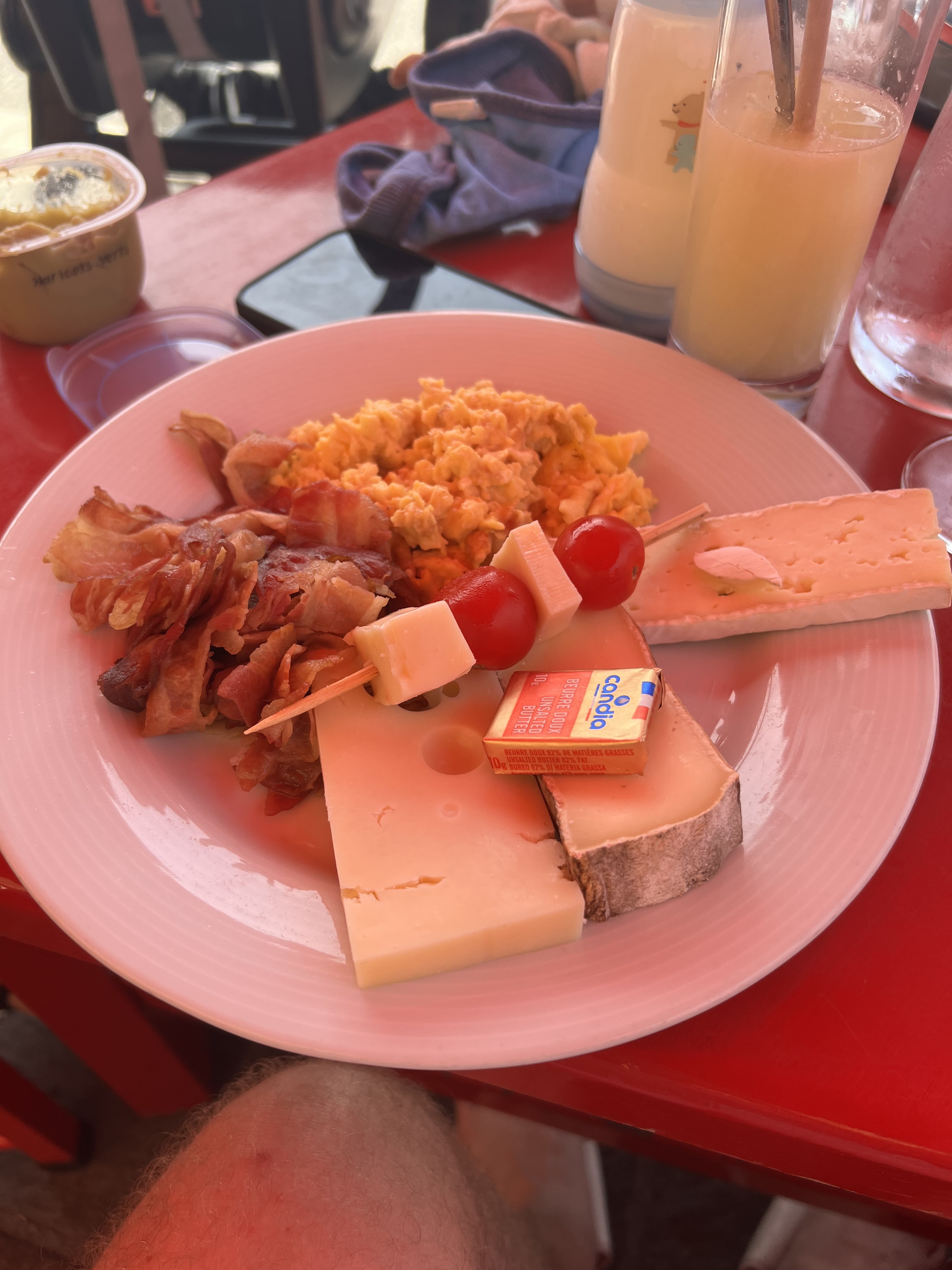 Nous avons en compagnie d’amis, pris le petit déjeuner dans ce bar/restaurant Prix correct et assiettes conséquentes (on pensait pas et donc on en a trop pris) Super sympa avec la vue C’est top 👍🏻