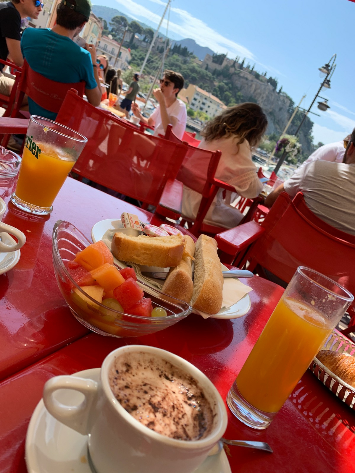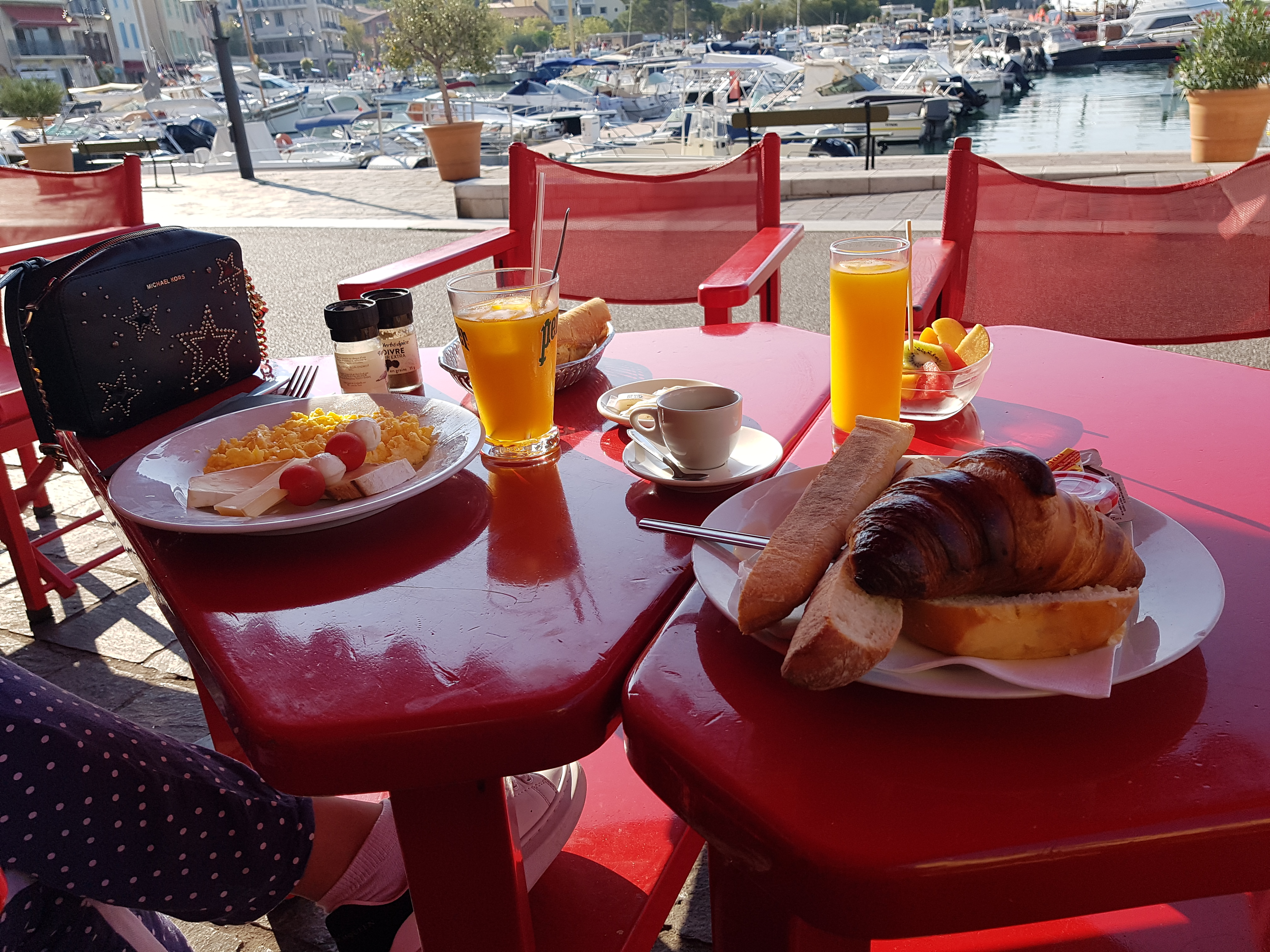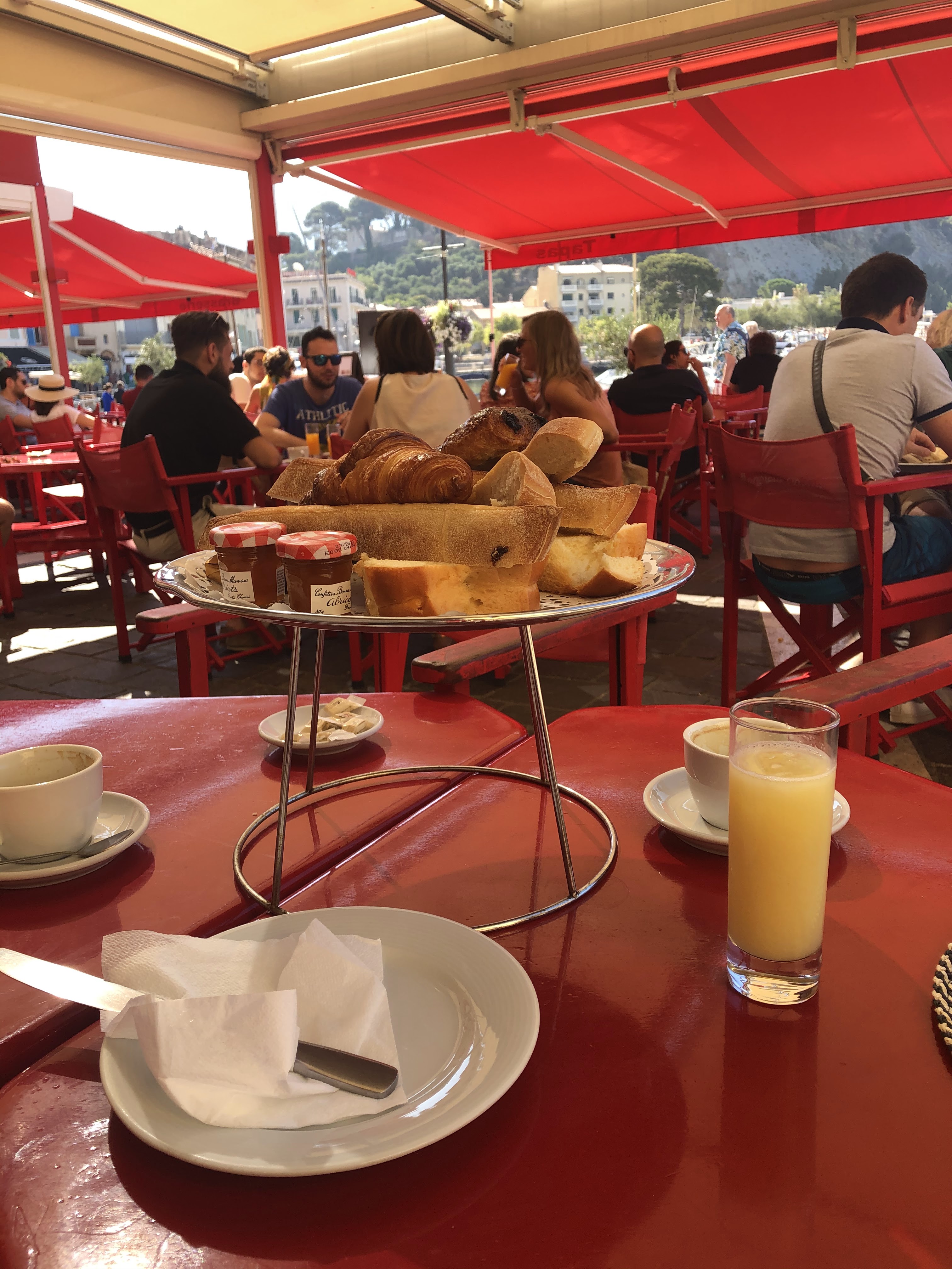 Petit déjeuner trop bon et très copieux face au magnifique port de Cassis