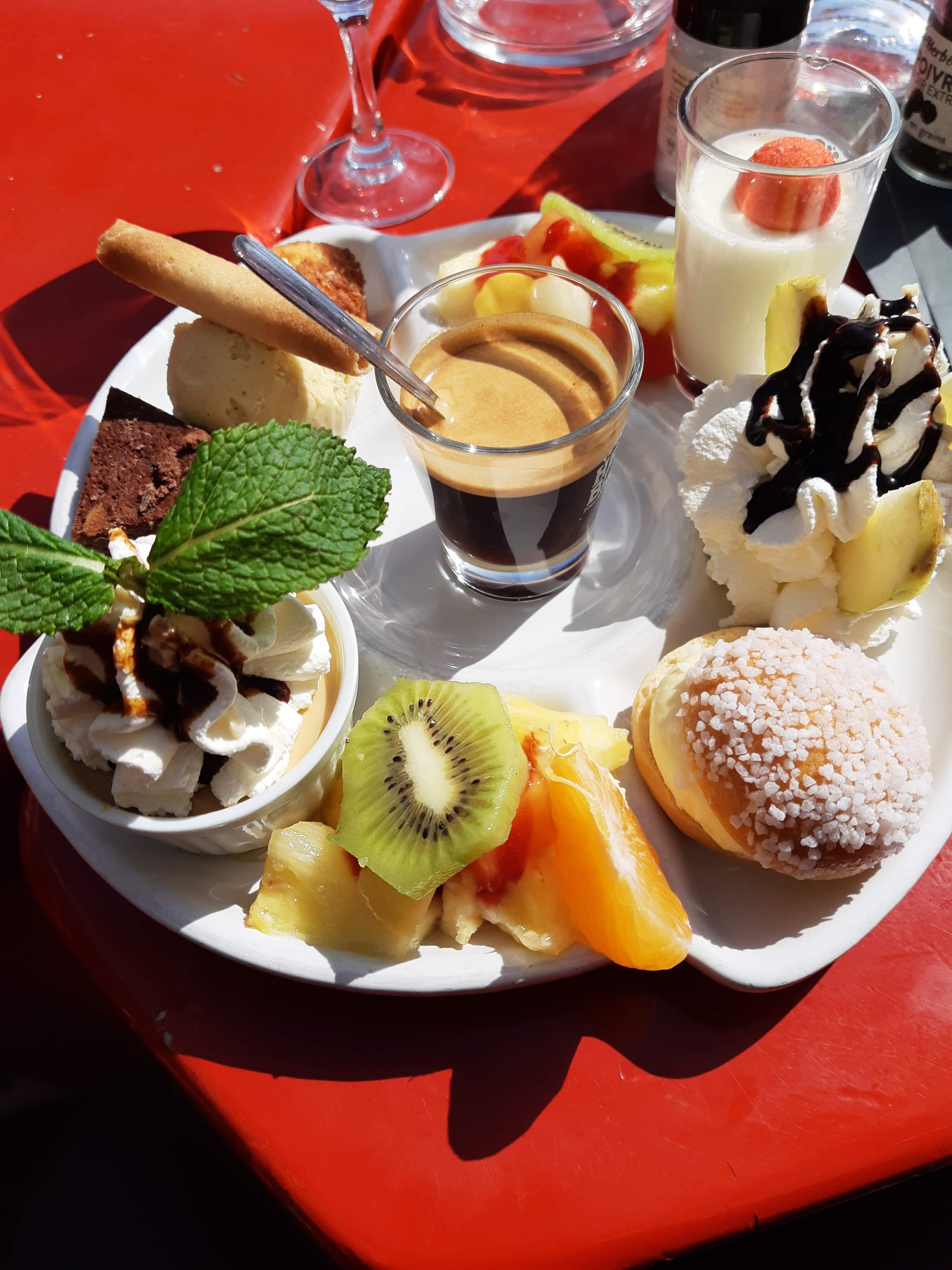Petit déjeuné face au port complet et garni pour moins de 14€. Nous avons pris la version sucrée, top