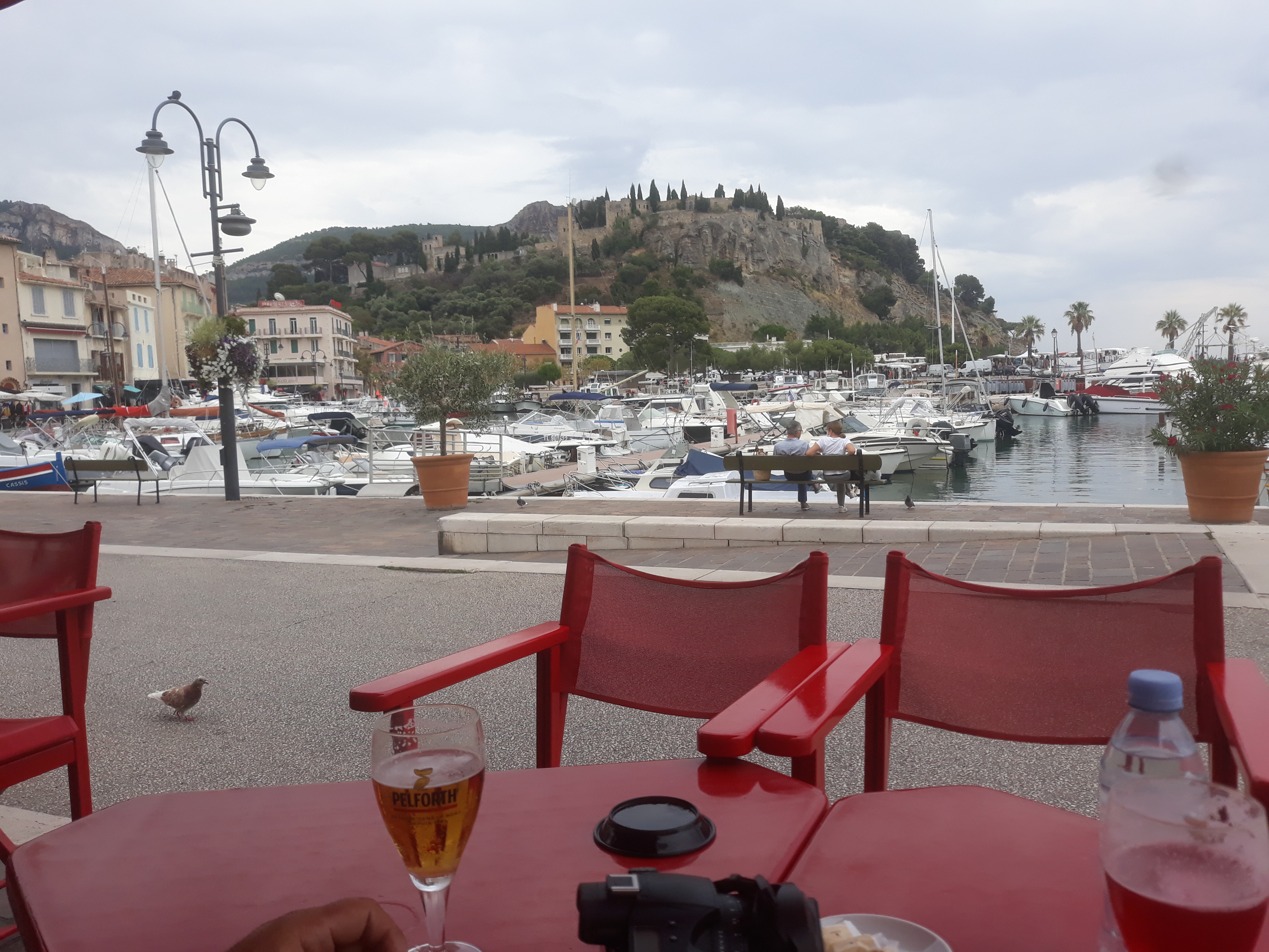 Brasserie face au port de cassis ms sans la foule..avec un patron au top.