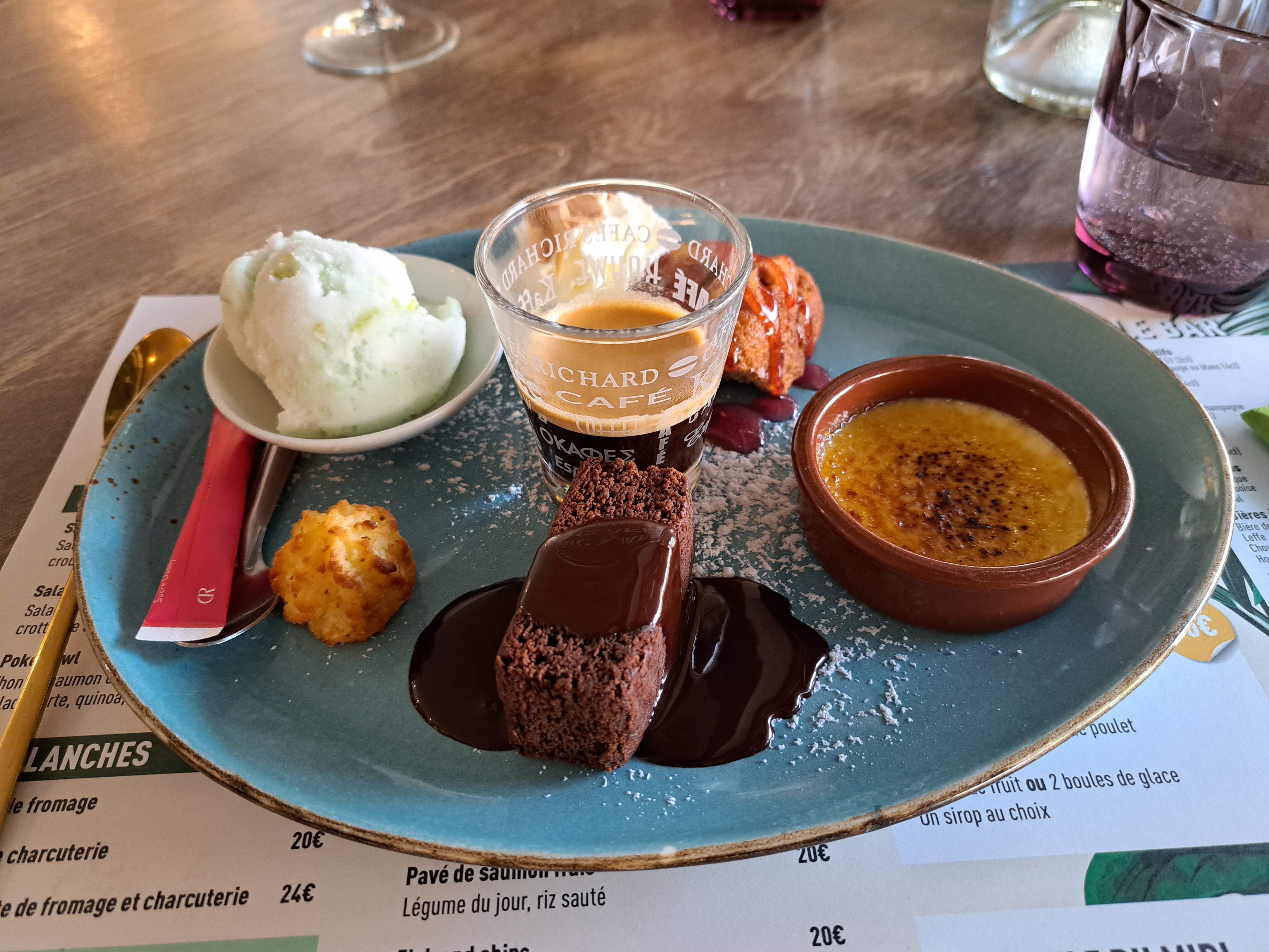 14 août avant concert. 😉Une belle découverte. Tout d abord l ambiance, un décors qui invite au voyage puis l accueil très agréable. Le repas très bon, poke bowl très copieux, entrecôte servie sur une planche en bois. Désert un regal.👍 Pour les adeptes du shopping vente de vêtements ça pousse à la consommation mais c'est trop bien.😁 A refaire très vite. Y sommes retournés, toujours aussi bien, très bon rapport qualité-prix, accueil rien à redire.