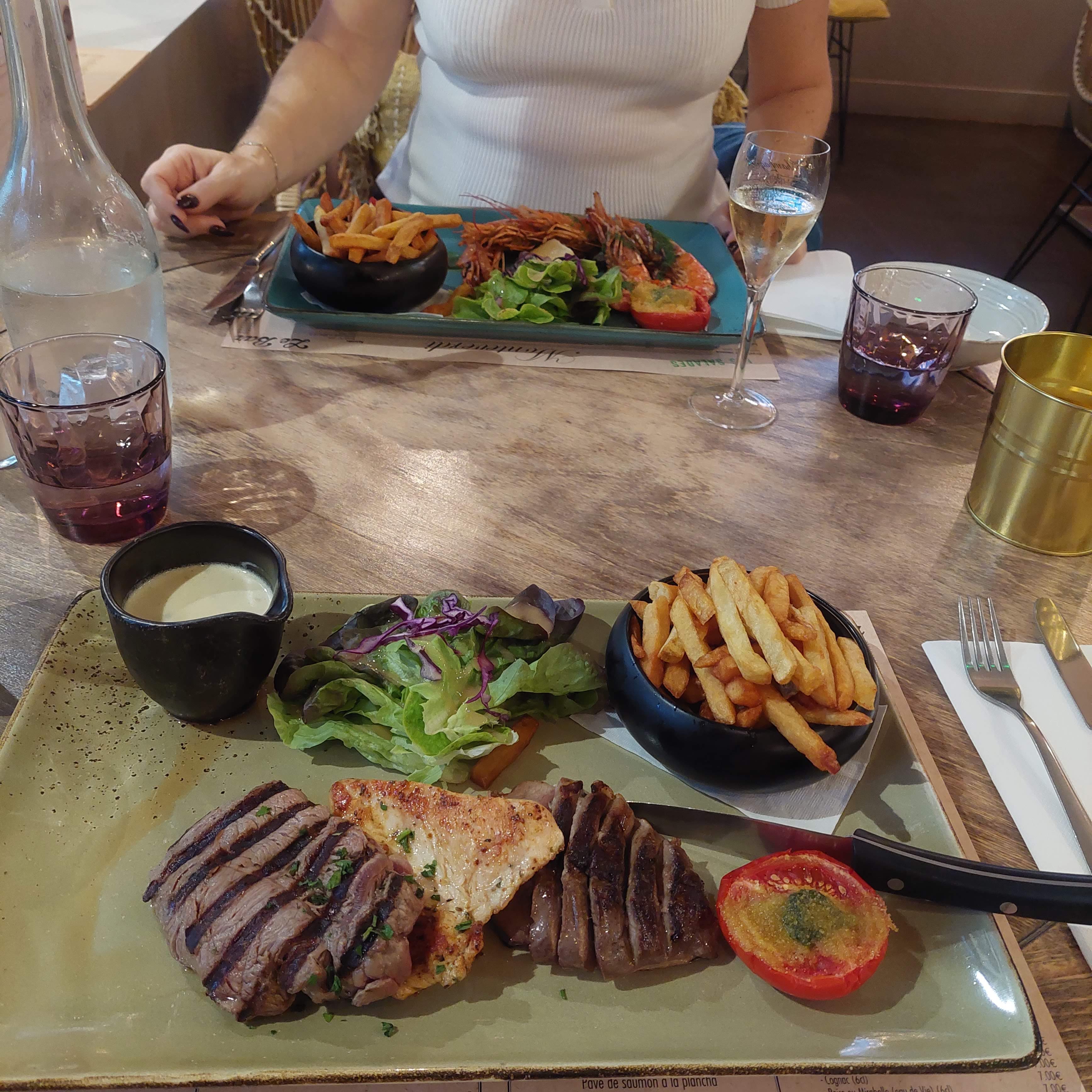 De retour après de longs mois de frustration à cause de cette satanée pandémie, nous avons encore été émerveillés. Ce 12 juin 2021, mon épouse et moi, connaissant la maison, avons commencé par 1 Mojito royal chacun, nous avons fait l'impasse sur l'entrée et nous avons commandé 2 parilladas de viandes (magret de canard + selle d'agneau + pavé de bœuf) accompagnés de frites maison, de légumes du jour et sauce au roquefort. Nous n'avons pas terminé... Mon épouse a calé pour le dessert et moi je me suis laissé tenter par un café gourmant. Hé oui, je suis grande gueule... Que dire? Ce fut super, une fois de plus. Merci aux cuisines, merci à Emilie la serveuse, merci à Christophe le serveur et merci à Laurence et Jérôme les propriétaires. Toujours le bon accueil, toujours le bon conseil et toujours le sourire; le tout pour un prix très raisonnable. Merci, merci, merci ! A très bientôt.