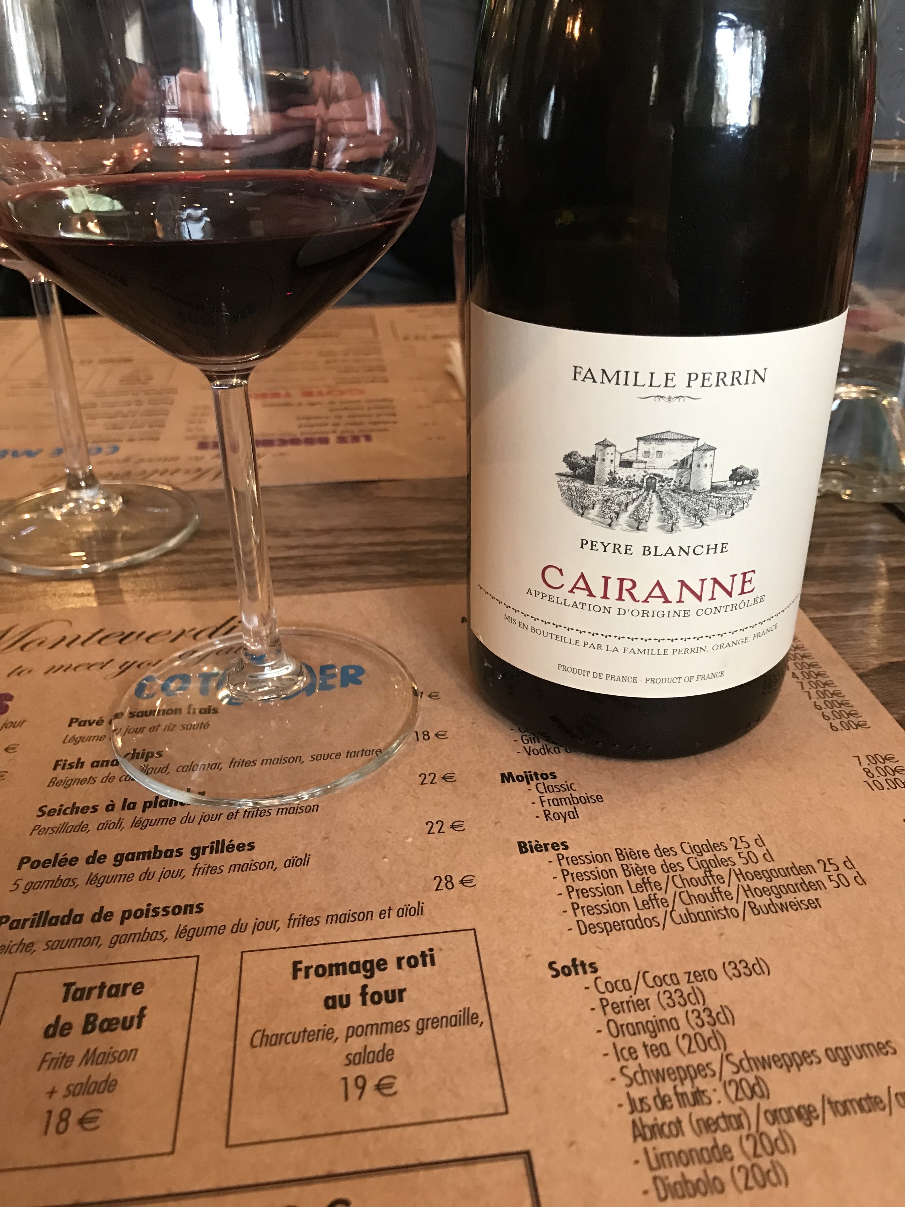 Cet endroit est tellement mignon, le service sympathique et la nourriture délicieuse. Il y avait le saumon et les crevettes et ils étaient tous les deux excellents (sauf les frites qui accompagnaient les crevettes). Vins locaux délicieux au verre très raisonnables autour de 6 euros.