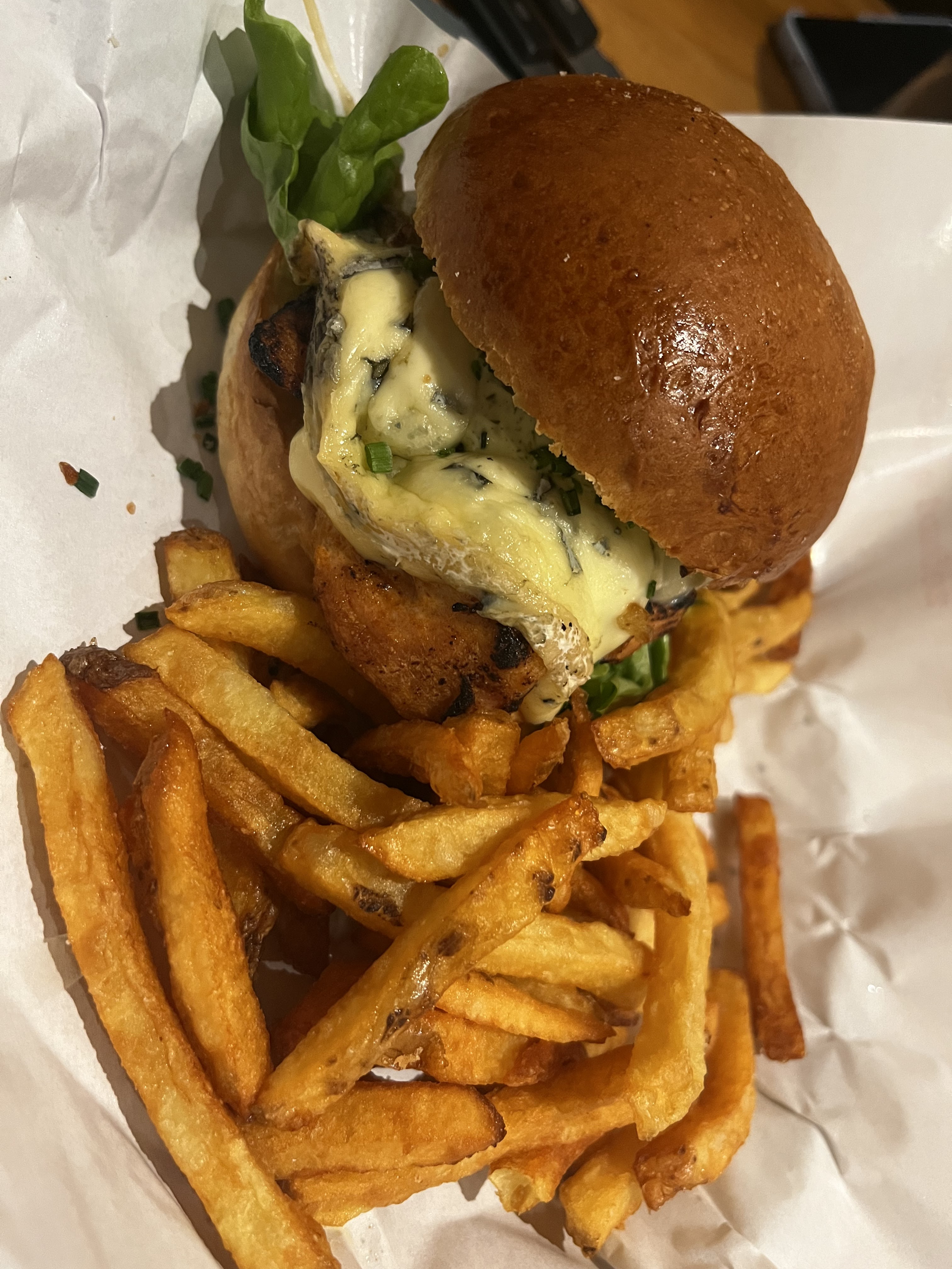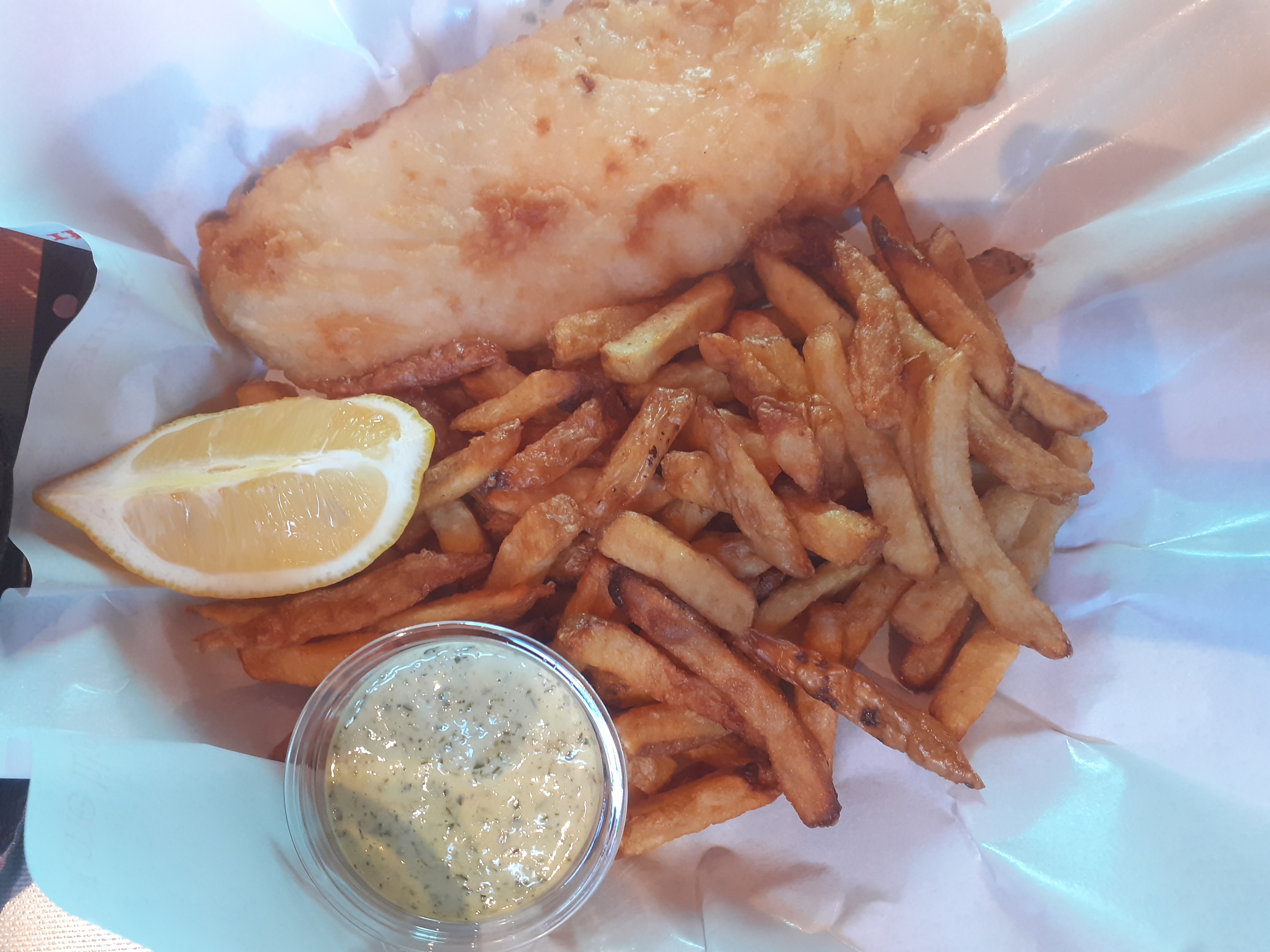 Déjeuner entre midi et deux. Prise en charge assez rapide. Bon accueil, le serveur est chaleureux et au petit soin. En revanche, j'ai pris un burger frites. Les frites étaient trop cuites et avaient me semble t il un goût de poisson. Cuites dans la même huile que le fish and chips? Le burger était très bon. Et l'ambiance est sympathique. Mais vraiment dommage pour les frites.