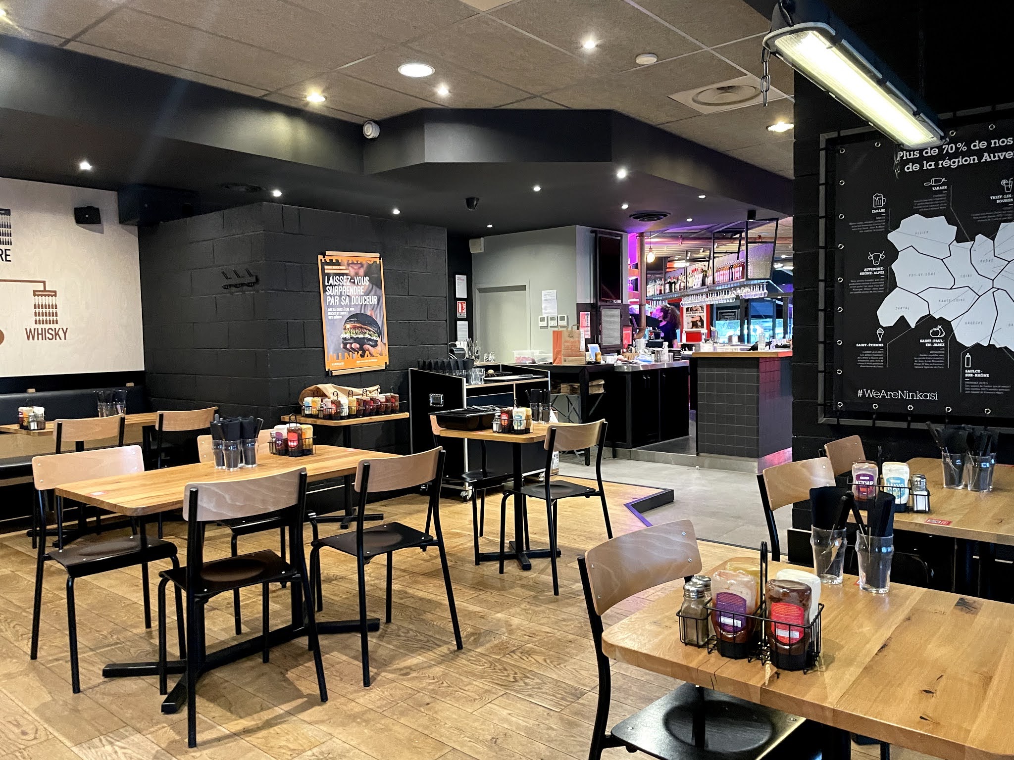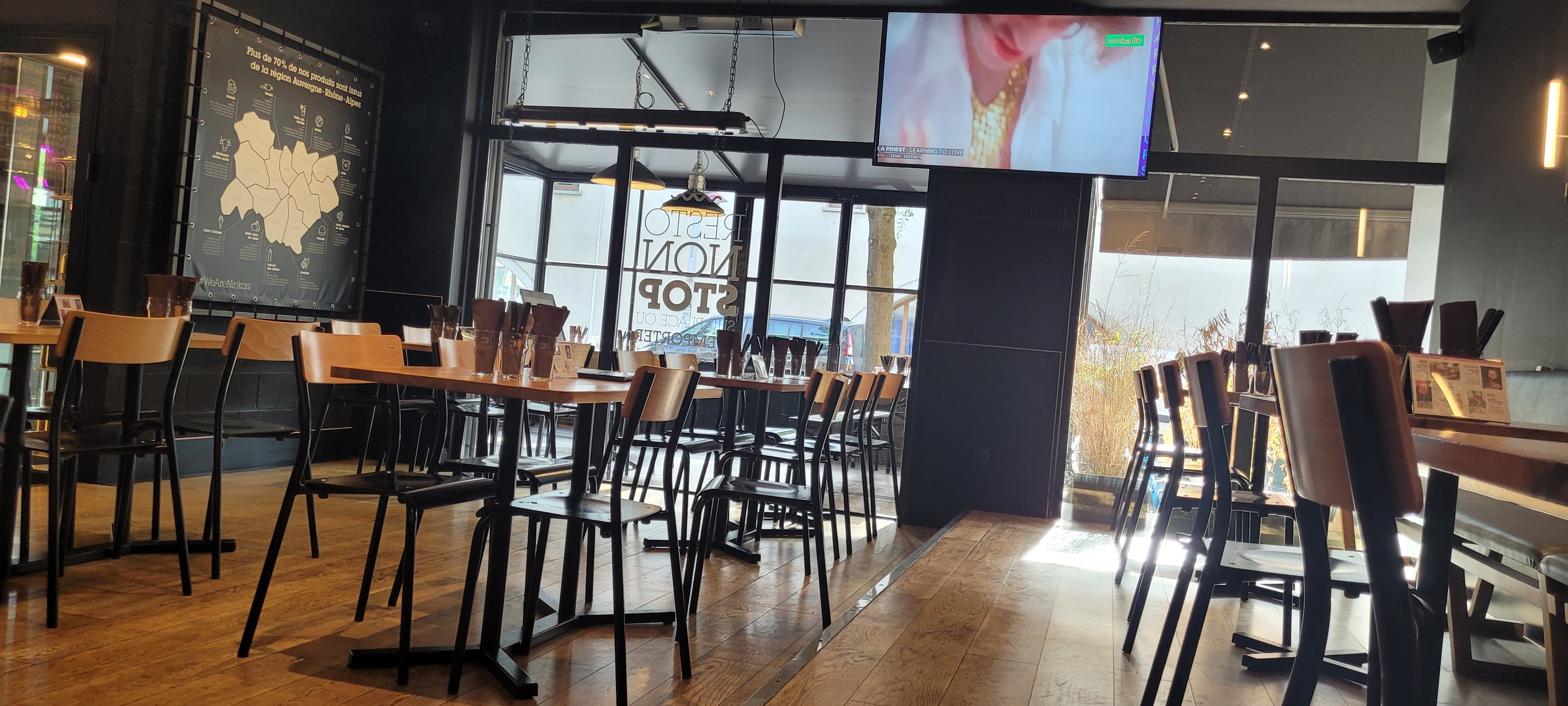 Léger manque de communication ? Nous passons à 19h30 afin de nous assurer que nous pourrons bien être servis après notre séance ciné, aux alentours de 22h. Aucun problème selon la personne qui nous reçoit Nous ne prenons pas de réservation, mais vous pourrez manger en salle ou en terrasse sans souci. Fin de séance à 21h55, nous nous rendons au Ninkasi comme prévu et patientons à l'entrée derrière plusieurs personnes. Un serveur nous demande de patienter ajoutant qu'un collègue va vous installer. Bons élèves, nous patientons donc une bonne dizaine de minutes, pour s'entendre dire Désolés, nous ne servons plus.... Il est dommage que l'information correcte n'ait pas été donnée lors de notre première demande mais nous avons ainsi pu découvrir un autre resto de l'autre côté du ciné, où l'accueil et la qualité des plats étaient au rendez-vous !