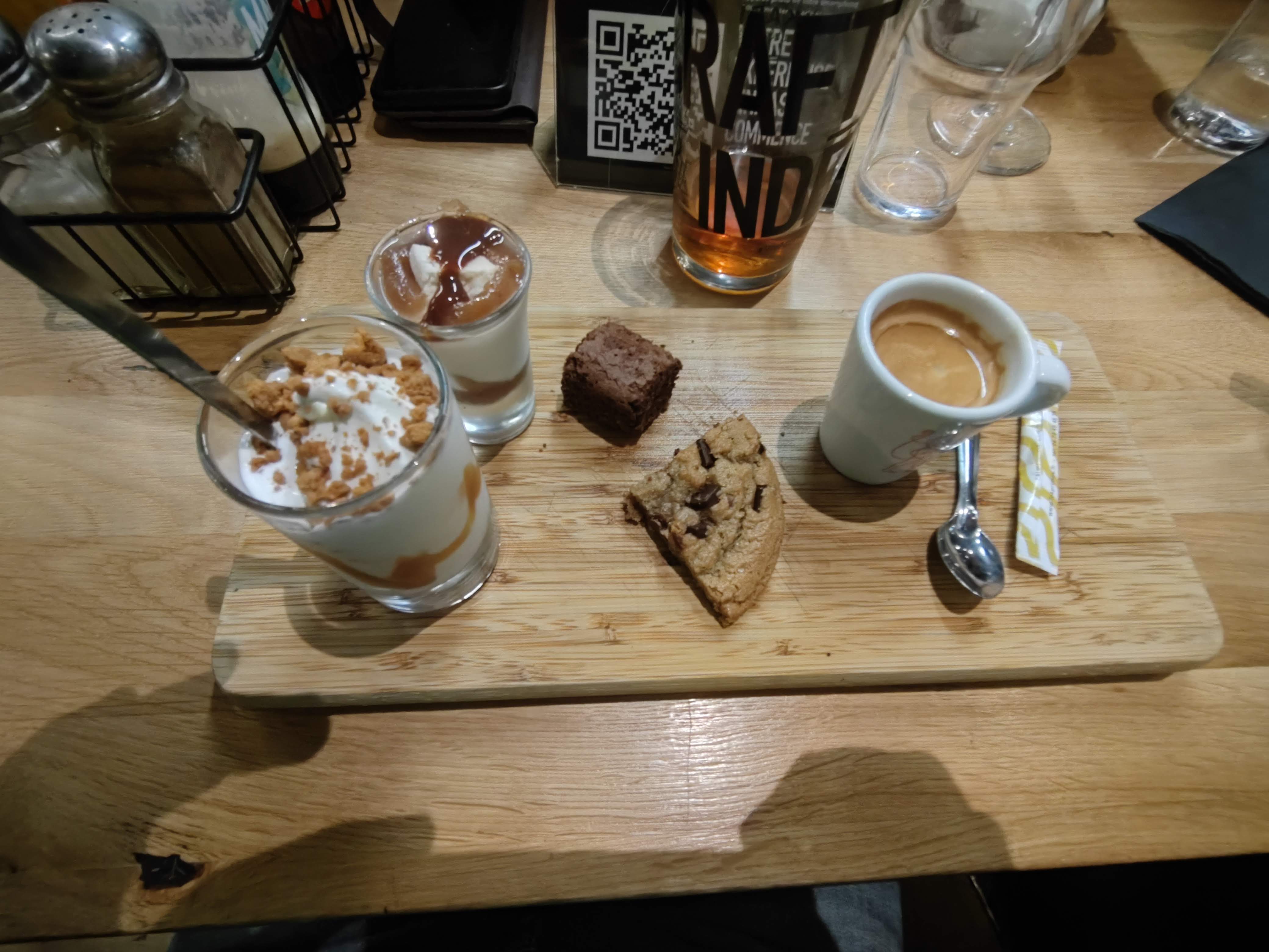 Burger très bon en revanche l’accompagnement de frites tièdes est décevant. Le café gourmand n’avait rien de gourmand « un quart de cookie, un brownie de la taille d un sucre et 2 petits verrines « dommage de finir mon repas là dessus. Les serveurs eux ont été accueillants et très aimables.