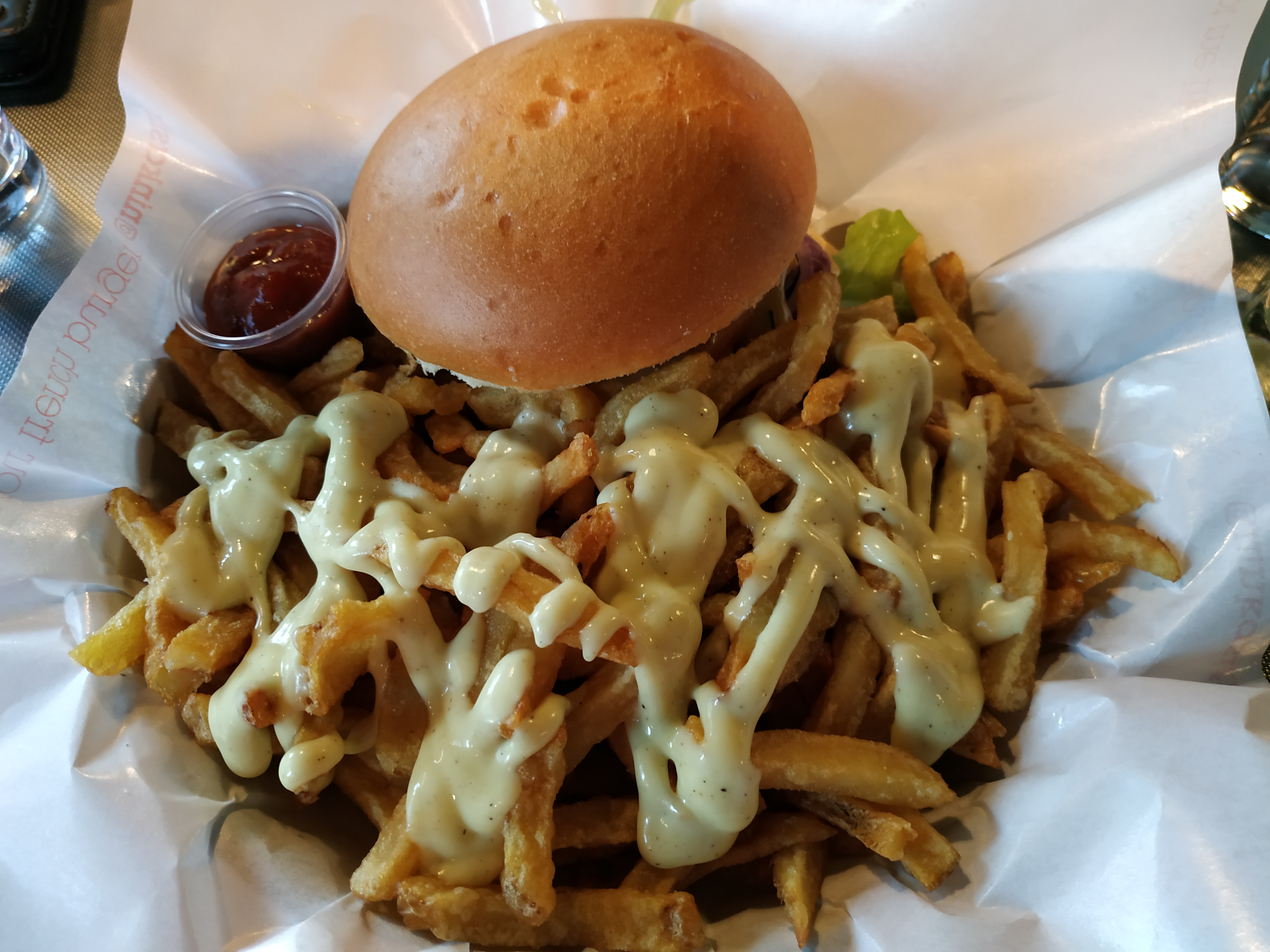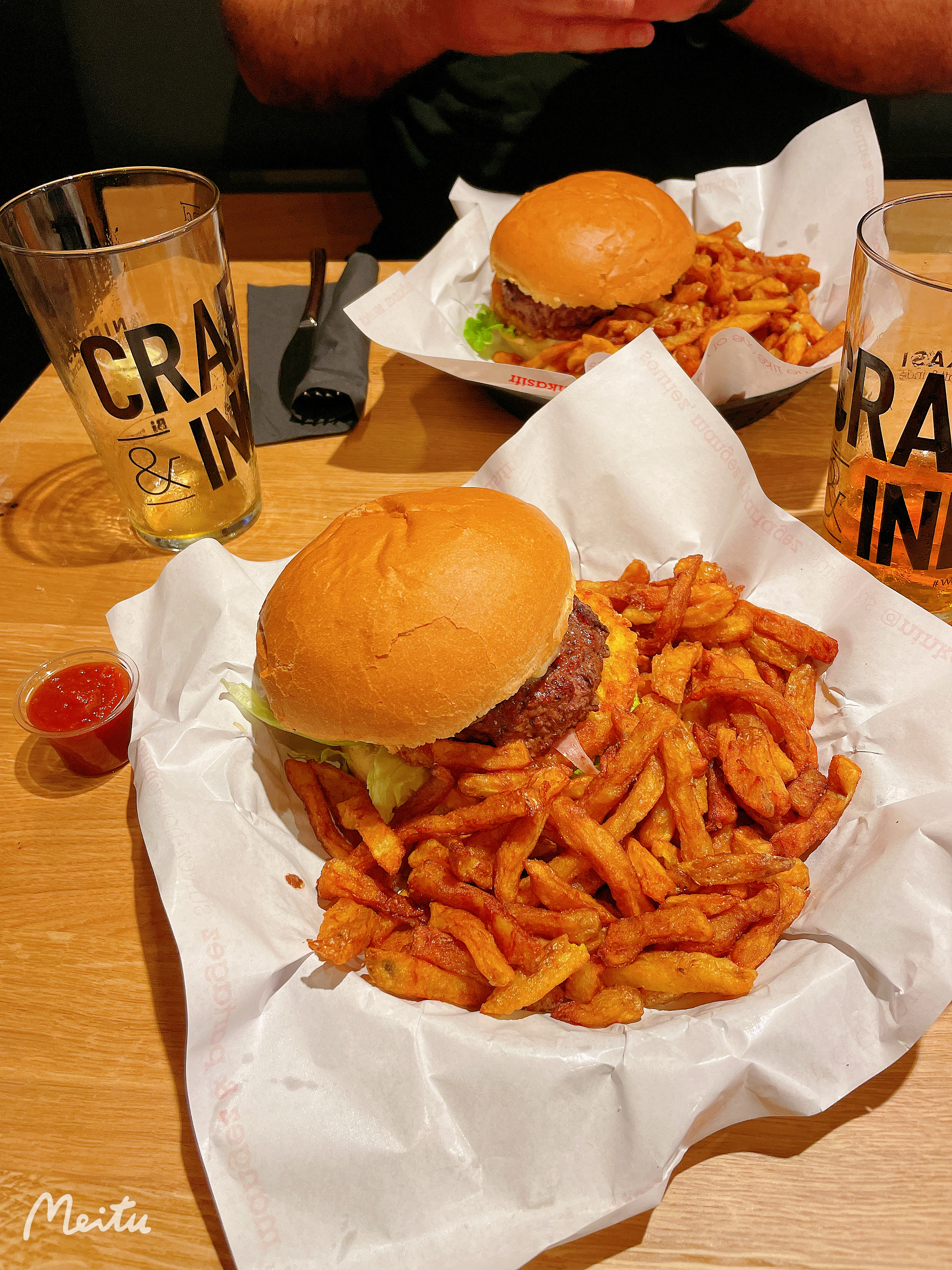 C’est ma première fois ici. En attentant les burgers, on boit de la bière comme apéritif. Ce que je vous recommande, c’est la bière triple, elle est un peu sucrée et acide. Quant aux burgers. J’ai choisi Snow Patrol, avec sauce ketchup magnifique fabrique par la restaurant.