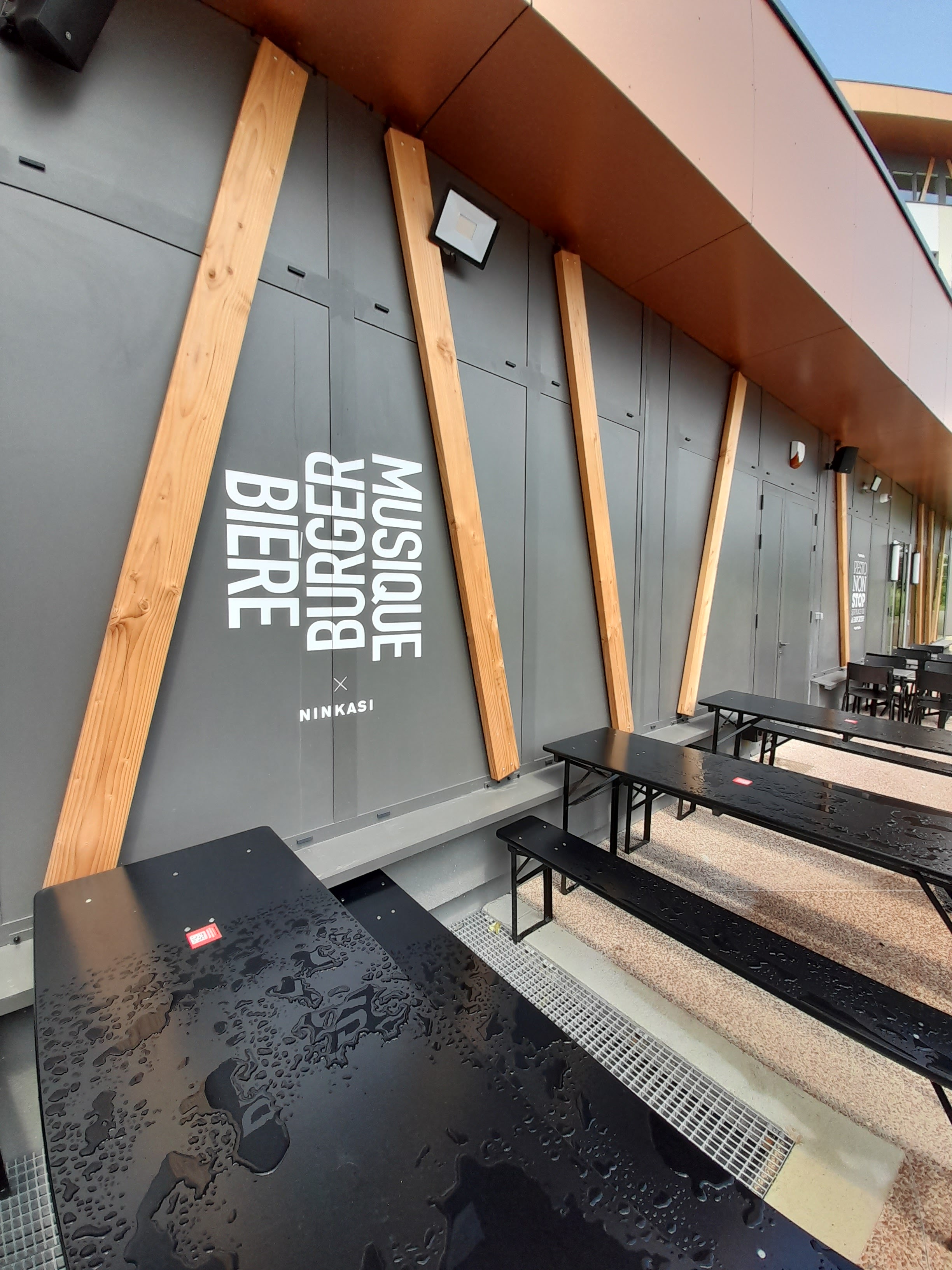 Le lieu est grand et la terrasse extérieure située du côté opposé au parking et à la route est très agréable lorsqu'il fait beau. Les bières et les burgers sont bons mais le service manque d'organisation (erreurs de calcul dans les notes, commande prise plusieurs fois...)