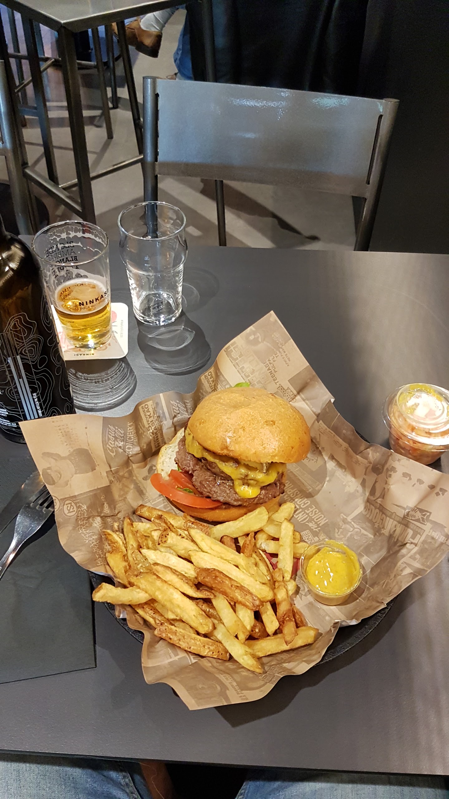 Servis rapidement, nous nous sommes regalés autant en burgers qu'en bière ou qu'en dessert. J'ai entendu beaucoup de mauvaises histoires sur les Ninkasi dont les serveurs sont ultra speed à la limite du vulgaire... Ce soir (un mercredi), rien de ça, un moment calme et convivial. J'ai apprécié et j'y reviendrai.