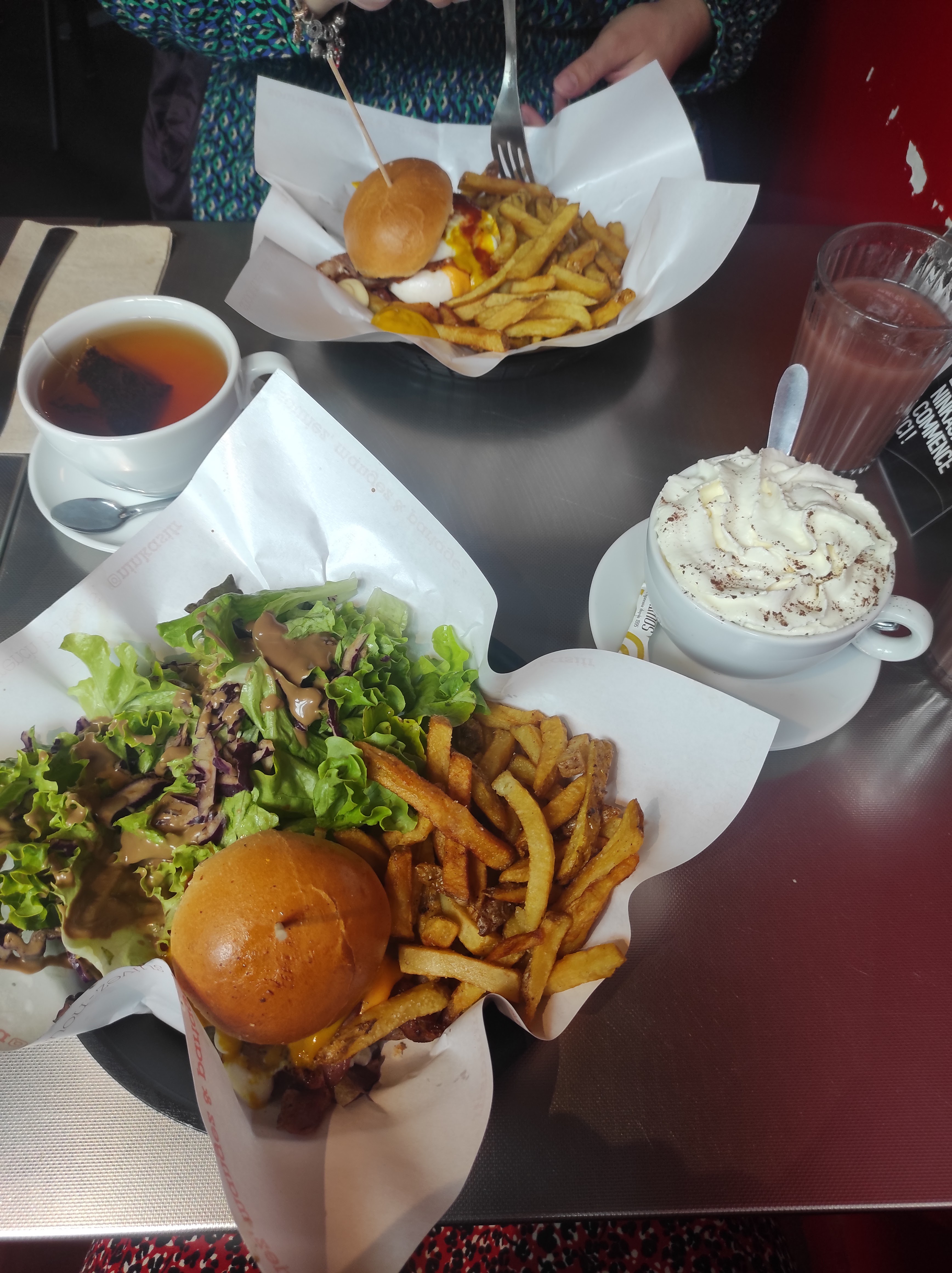 Très bons burgers et frites maison, accueil sympathique, en revanche dessert decevant: la glace était toute fondue en arrivant.