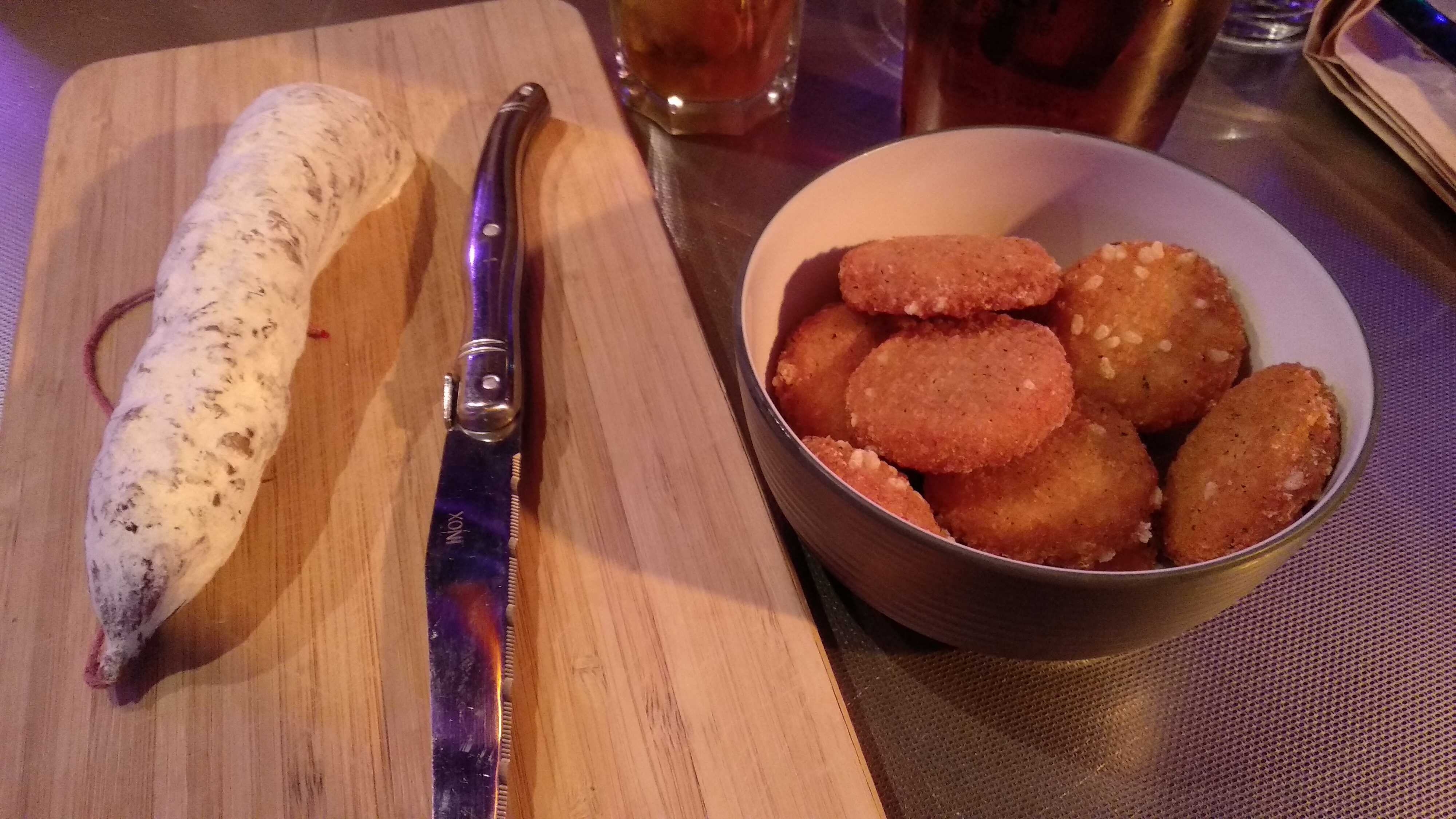 Venus entres amis pour manger un bout, La serveuse prend nos commandes pour boire et nous propose le cocktail du moment,un mojito wisky. Comme on connaît pas,on se laisse tenter. Bien déçu de boire de l'eau aromatisé au whisky,si j'avais su dès le départ,j'aurai prit une bière.nous avons été un peu dégoutés quand on a eu la planche apéro mixte(fromage et charcuterie) arriver et vu la quantité. 16.50 pour 3 bouts de fromages et pas mieux en charcuterie. Je trouve ça cher payé,en sachant que d'autres établissements en font et bien mieux fournis. En prenant la commande des plats chauds,la moitié de ce qu'on voulait n'était pas disponible parce que la carte n'avait pas été remise à jour,la serveuse aurait pu le préciser dès le départ,ça aurait été plus simple. Ayant eu un problème au niveau de sa réception de livraison,on nous dit que les burgers seront accompagnés avec de la salade et un peu de frites. Désolé mais je ne paie pas 16.50 un burger pour avoir 3 bouts de frites avec. Finalement nous ne sommes pas restés et avons décidé de partir. Ou c'était malheureusement une soirée sans où il va falloir se remettre en question rapidement si vous ne voulez pas que les clients fuient cet établissement.