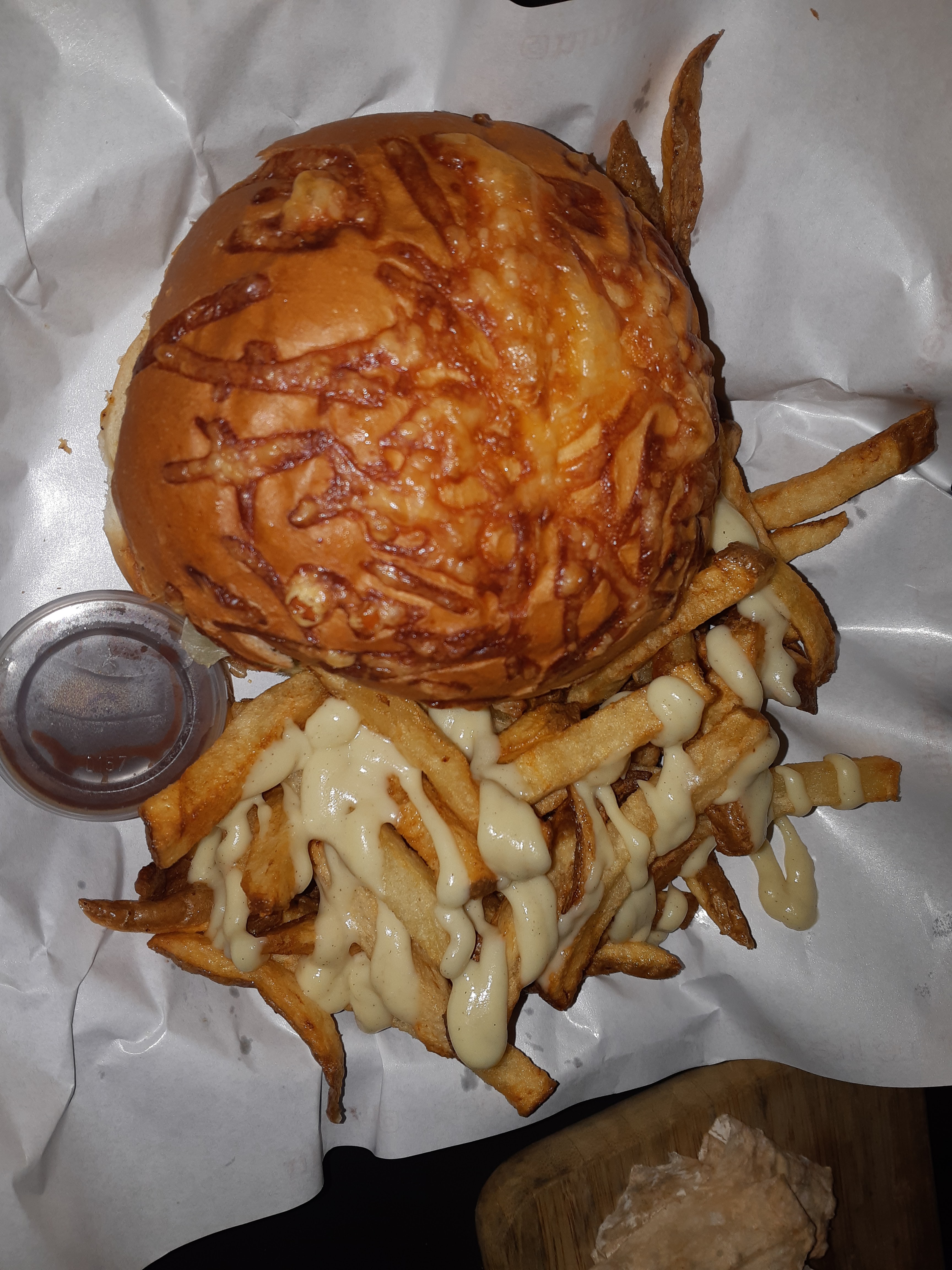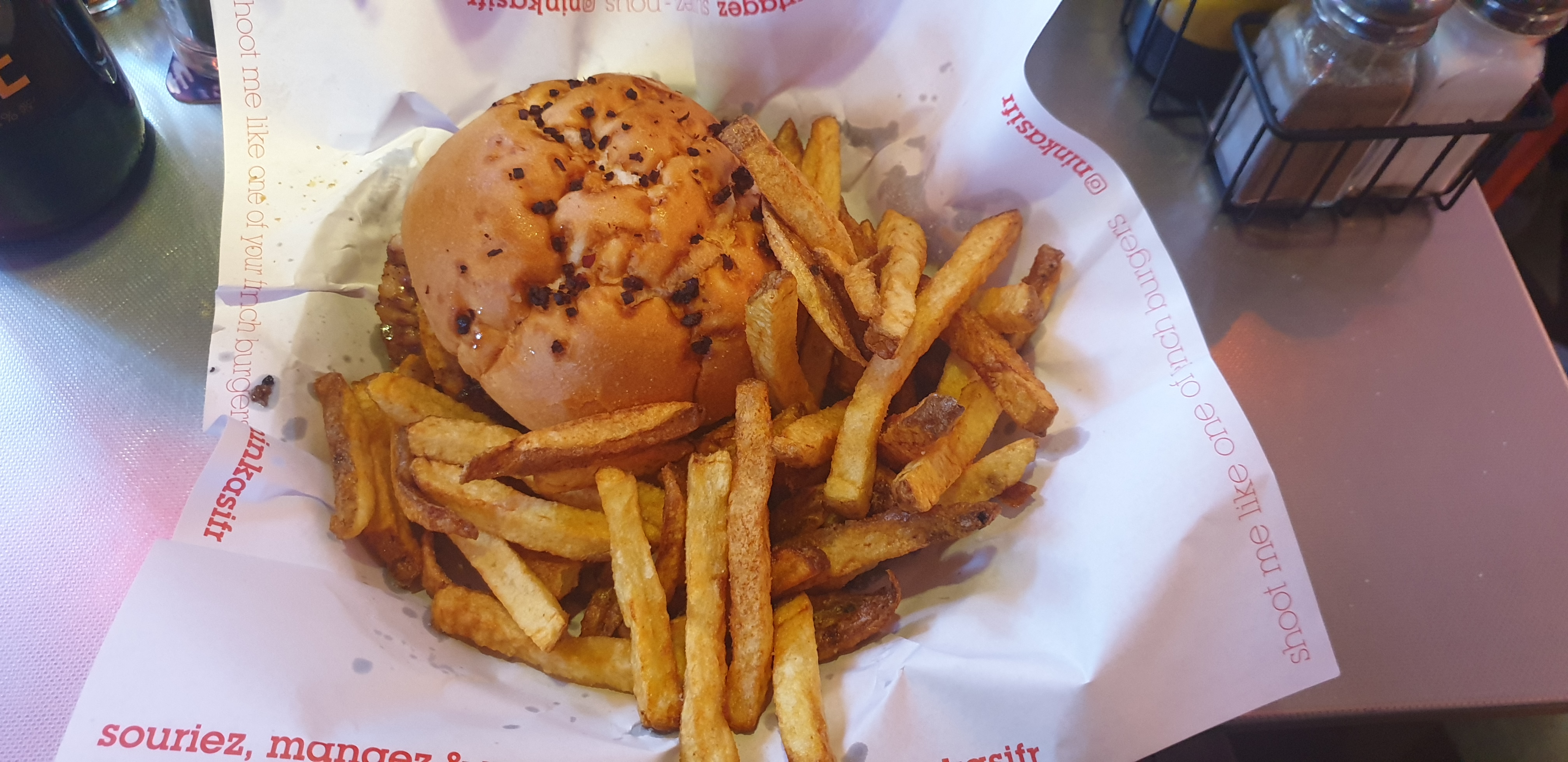 Lieu au top Personnel au top souriant, pro, efficace. Prix plutot dans la norme. Burger veggie j'ai adoré alors que je ne suis pas du tout végétarienne, mes amis aussi ont adoré leurs burgers (surtout le black&white). La biere à l'hybiscus très légère et delicieuse. Petit point negatif: la sauce fromage sur le frire. Supplement de 1,50€ qui ne vaut pas du tout son prix.. pas assez a mon gout et pas assez de saveur. (Voir photo) Mais mise a part ça on s'est régalé avec les burgers simples et sans prétention.