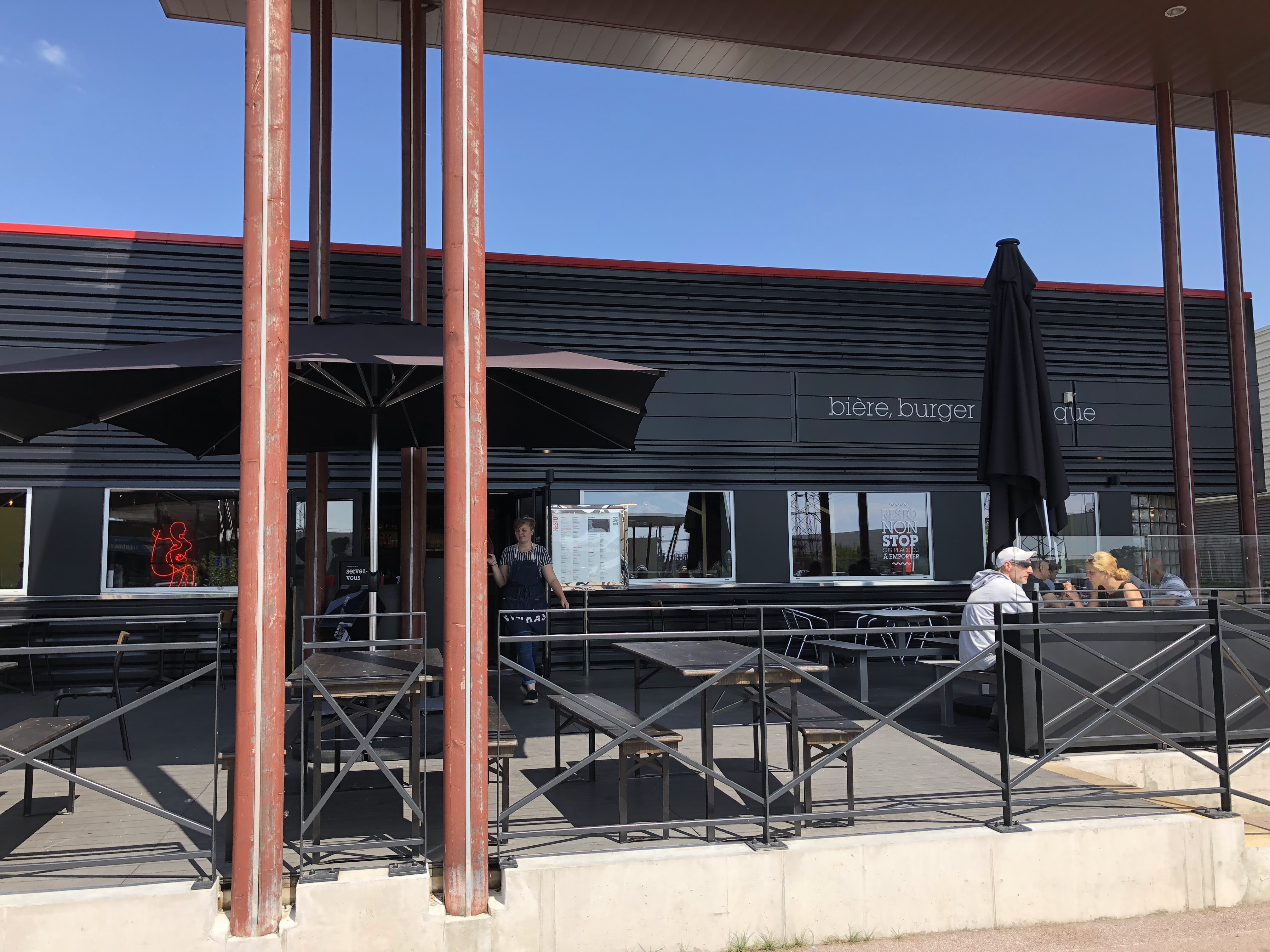 C'est un lieu sympa. Dommage que les hamburgers manque un peu de goût. Les frites sont pas mal grasse. Les bières en bouteille ninkasi sont très bonnes par contre les pressions bof ( chacun ses goûts ) Il est vrai que le service est long. Et la pause clope devant les clients bof bof sachant que le service est un peu longuet. Sinon ambiance sympa.