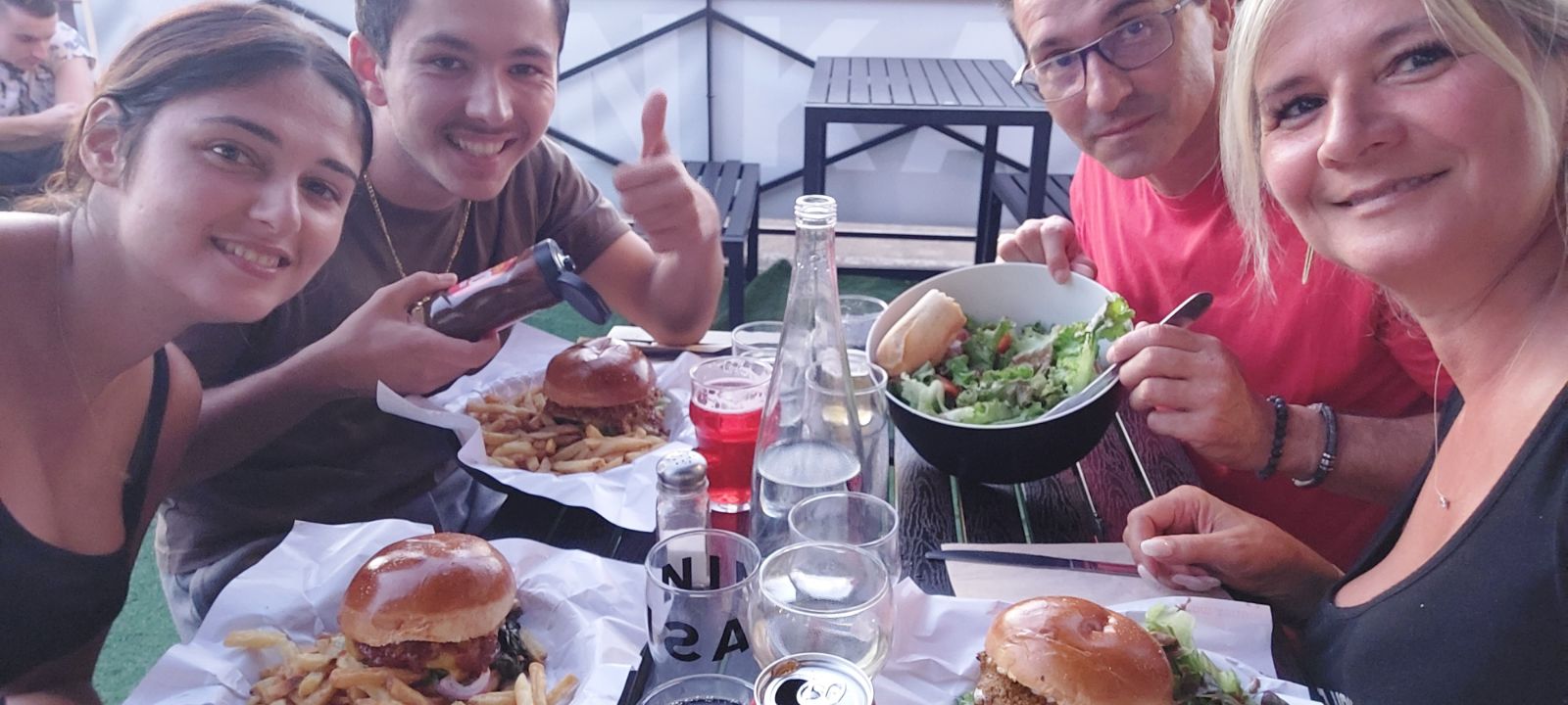Venu manger en famille. Les burgers était bon. Nous étions positionnés en terrasse donc repas agréable au soleil. Petit bémol les sauces avec les frites si le récipient était plus gros ça serait bien après je n ai pas demander pour en avoir un autre. Par contre ce que j ai trouver inadmissible c est que une serveuse et après un serveur se permettent de prendre leur pose cigarette à la vue des client sur leur totem en terrasse. Je pense que derrière le restaurant serait mieux. C était la première fois donc mon ressenti est mitigé.