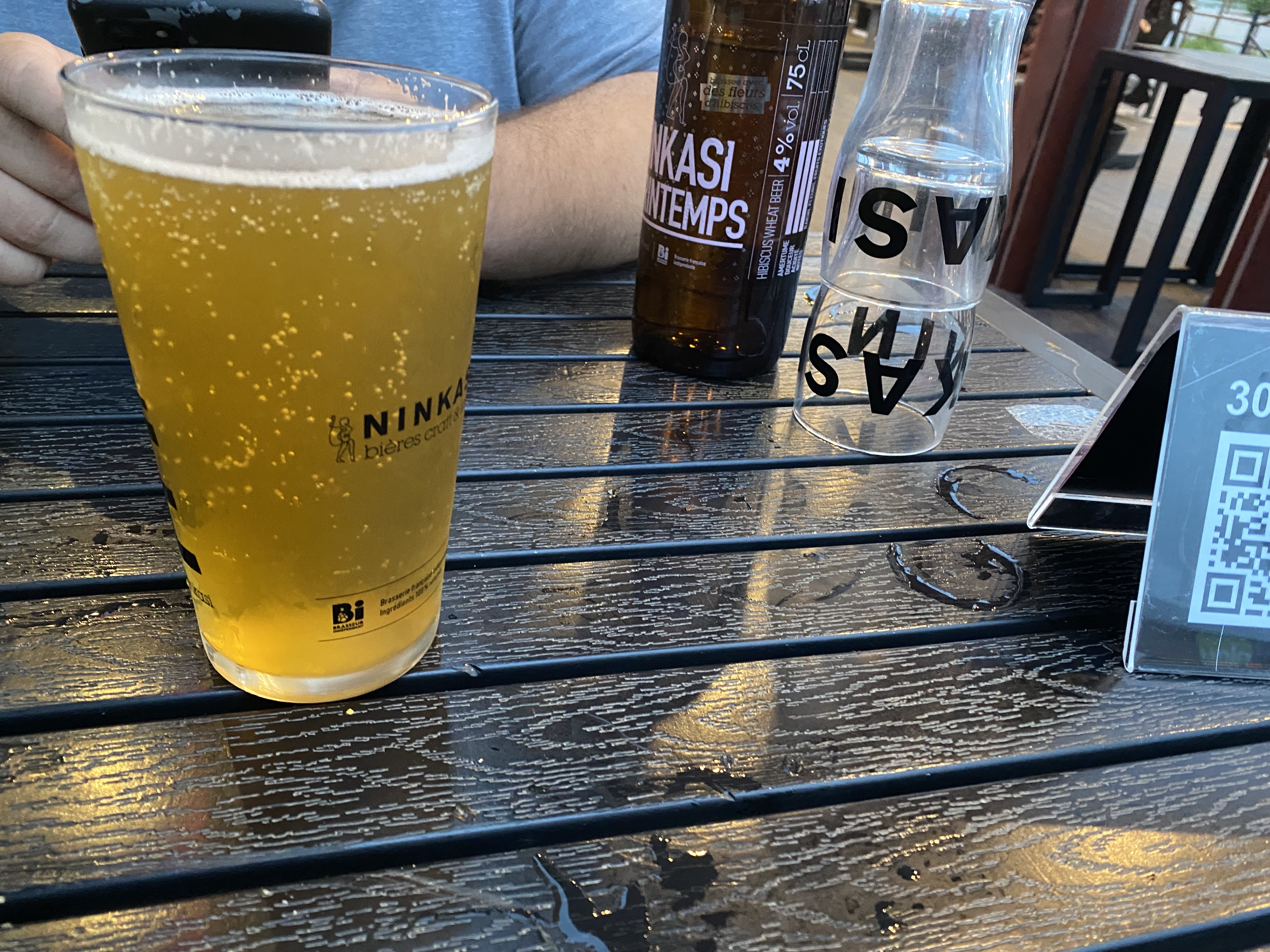 Un ninkasi bien sympa. Avec une petite terrasse. Des serveurs/serveuses sympas aussi. La bière du ninka est toujours aussi bonne. En revanche la sauce BBQ, elle n'a pas du tout le goût d'une sauce bbq ! Je ne suis pas un fan. De retour. Serveur super sympa. Ambiance really nice. Le cidre local est différent des cidres bretons. C'est plus similaires aux cidres anglais.