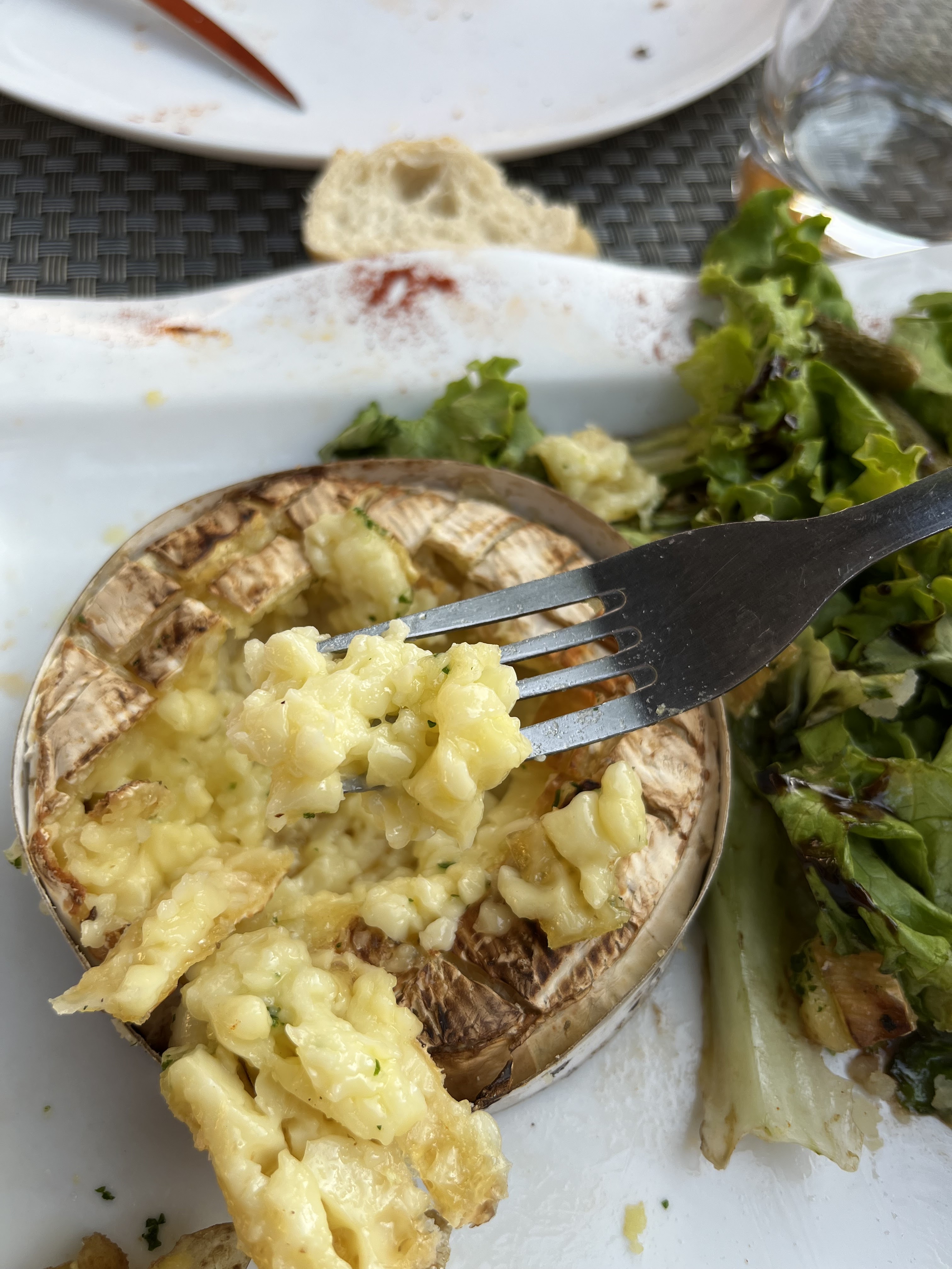 Très mauvaise expérience pour ma part. Je ne recommanderai pas ce restaurant. J’aurais du m’en douter en voyant que c’était vide ! Il n’y avait presque personne. Pas étonnant. J’ai commandé un camembert rôti au four, comme tout camembert, je m’attends à quelque chose d’onctueux, comme je fais chez moi par exemple ! Très mauvaise surprise, camembert gélatineux et sans aucun goût, des grumeaux (Photo) 🤢 J’ai payé un plat 18€ pour manger : 2 patates, 2 tranches de rosettes, 1 tranche de jambon cuit, 2 tranches de jambon cru, salade. Je n’ai pas pu manger le camembert qui était clairement immangeable. Aucun geste du patron. C’est inacceptable, surtout pour ce prix !! Qui rate un camembert !!? Personne ! Ah si, ce restaurant ! Serveur très sympa, on le remercie particulièrement. Service rapide (il n’y avait pas grand monde) Même si nous sentons que l’ambiance n’est pas extraordinaire. Mais je reste sur ma faim. Nous n’avons pas pris de dessert car l’expérience n’a pas été concluante. À éviter !!!