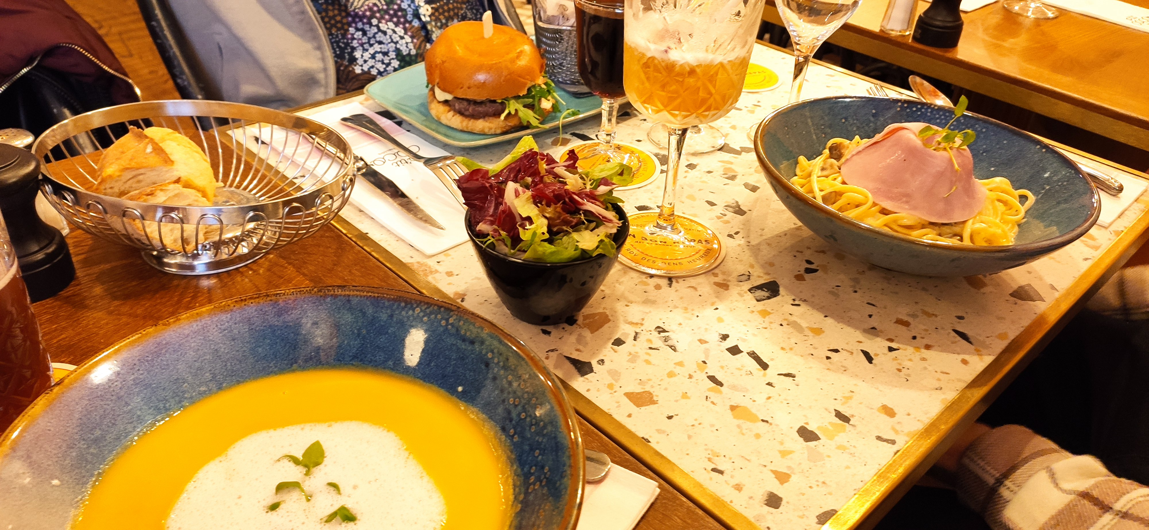 Prise de commande incroyablement longue puis lorsqu’enfin on obtient les plats après 1h10 d’attente en tout, il en manque encore les accompagnements qu’il faut encore attendre puis réclamer 😩😩. Ce n’est pas possible pour des pauses déjeuner. Carte un peu chère mais plats corrects, déco très sympa. Dommage