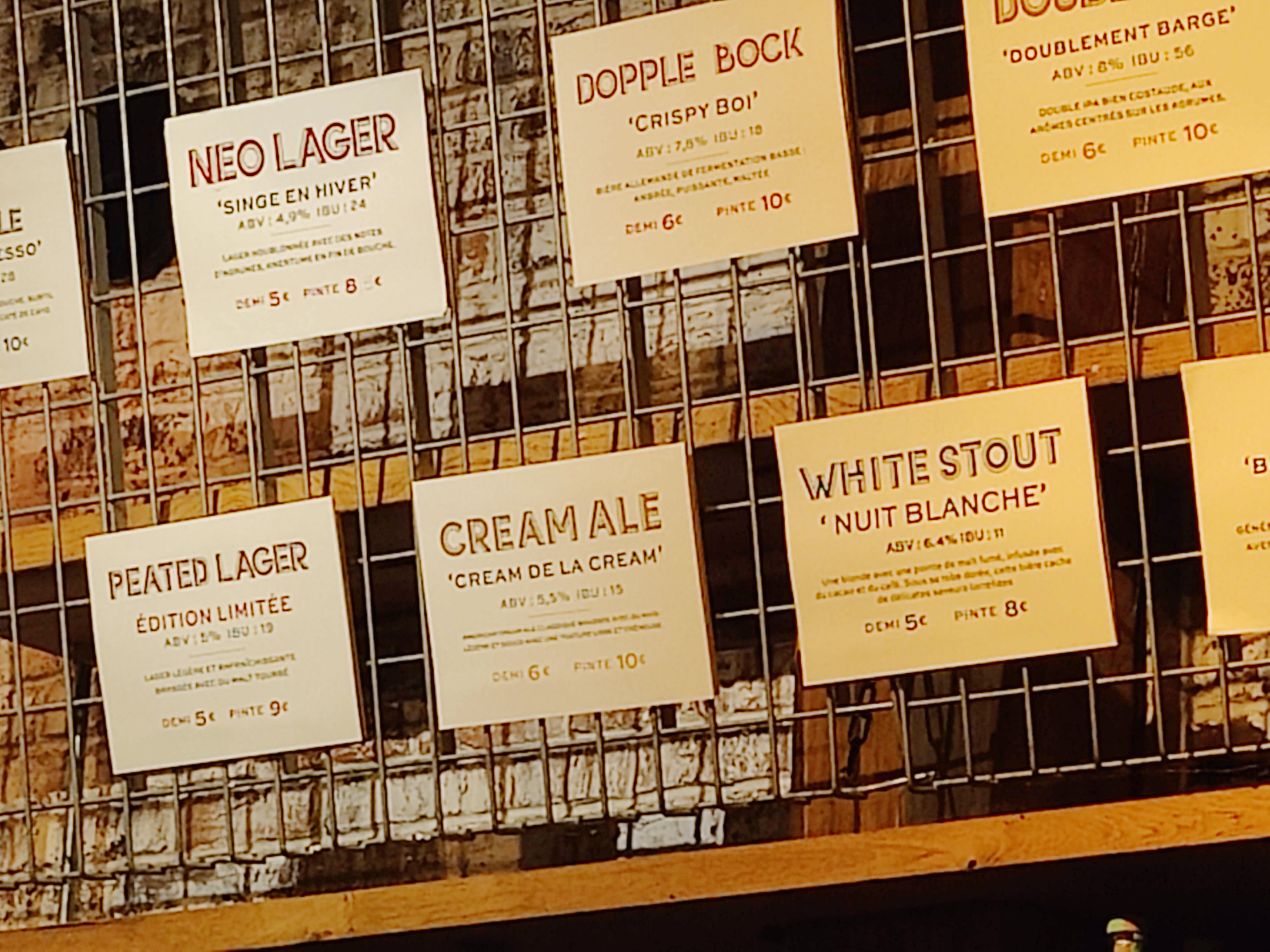Si vous aimez la bière ce lieu est fait pour vous, elles sont brassés sur place, l’installation est au fond du café . Et que dire de l’emplacement qui est exceptionnel , le service est sommaire, comme dans les pubs anglais mais j’imagine que ça nous permet d’avoir la pinte de bière moins chères!