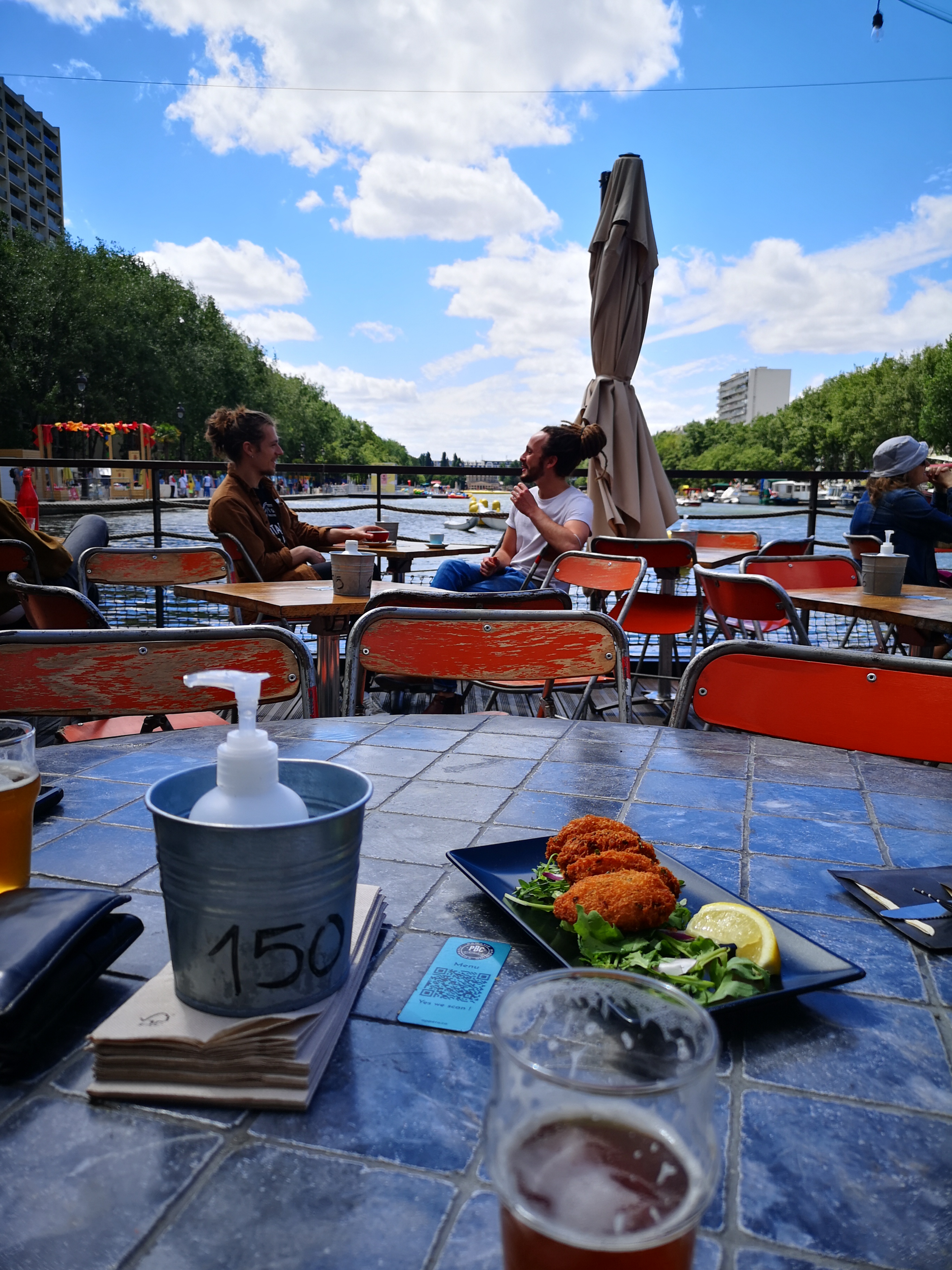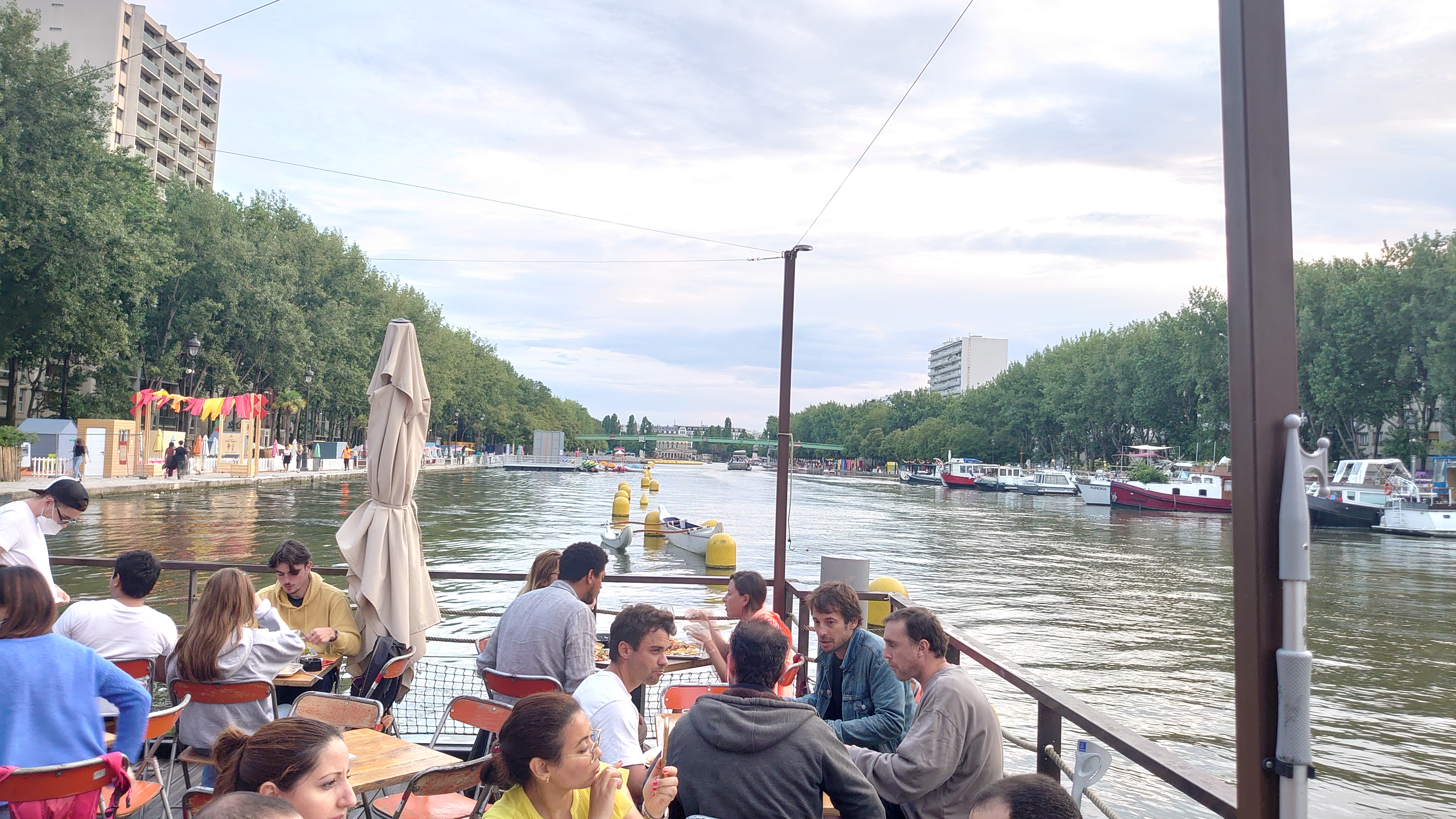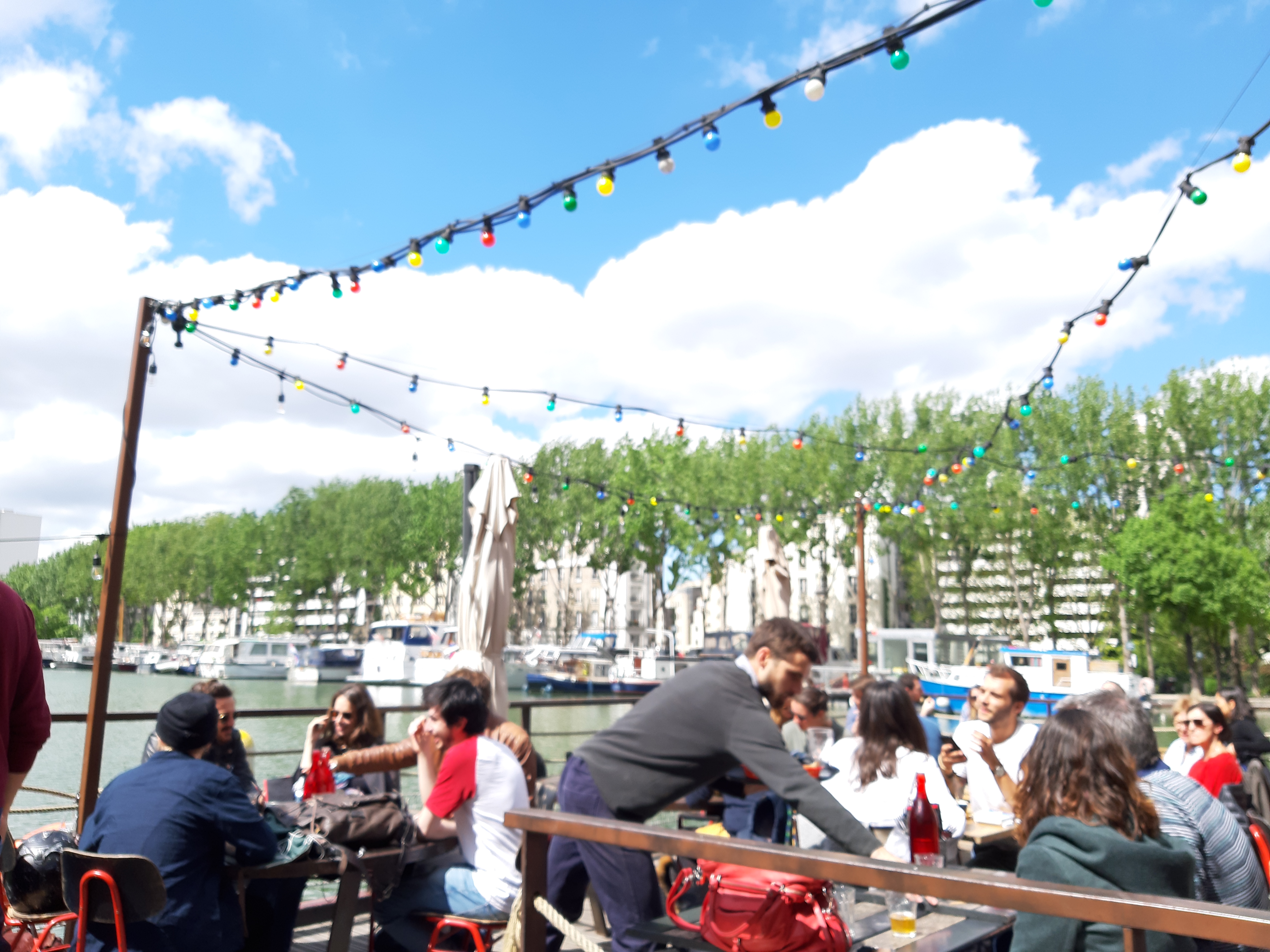 Terrasse sur le bassin de la Villette, carte originale qui satisfait petits et grands, service parfait et sympathique malgré l’affluence