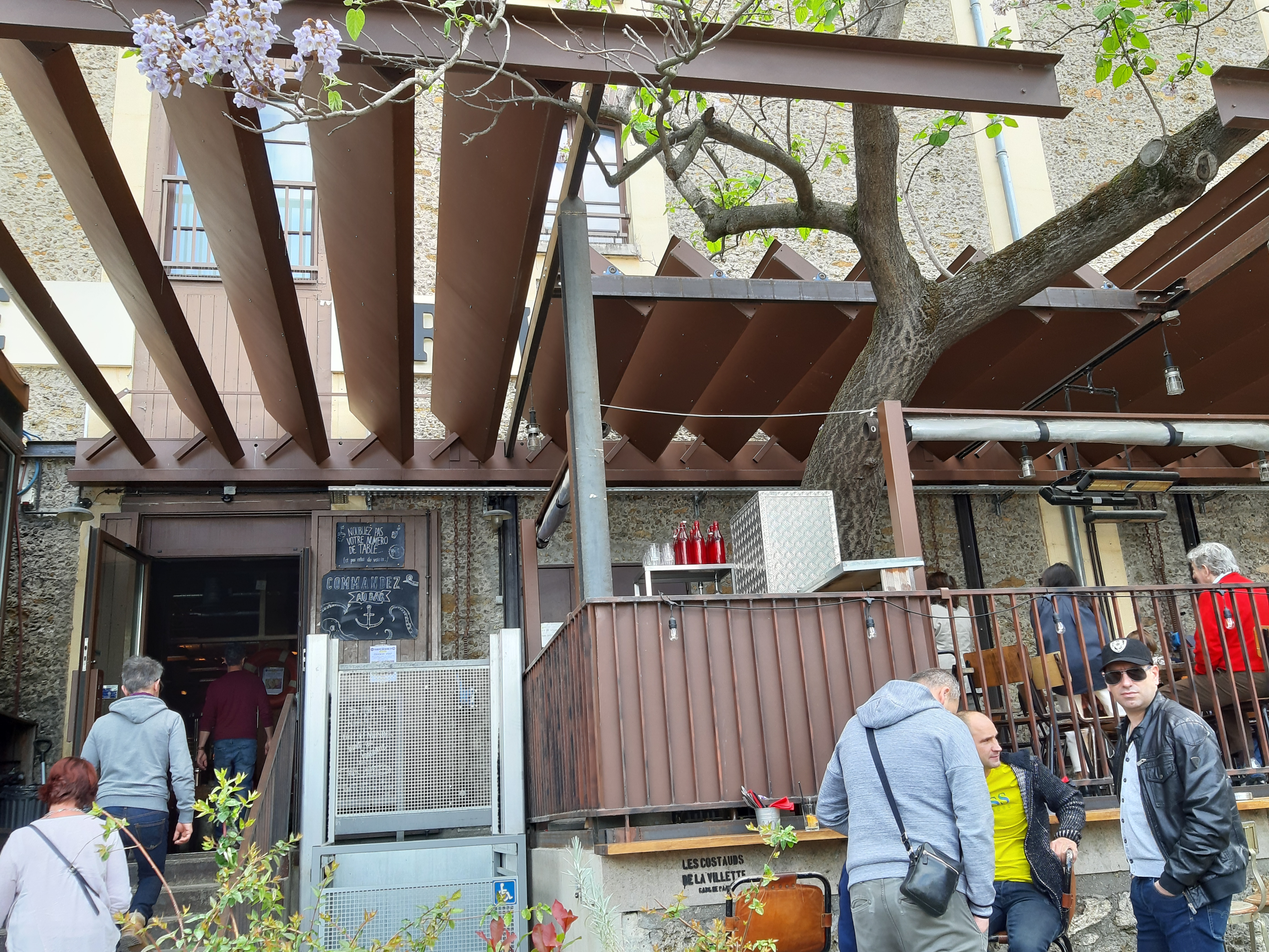 Un lieu bien placé près du canal de l'Ourcq MAIS la nourriture laisse vraiment à désirer. Les frittes étaient froides, le poulet croustillant cramé par la friture, les sauces fades. L'emplacement ne fait pas tout.