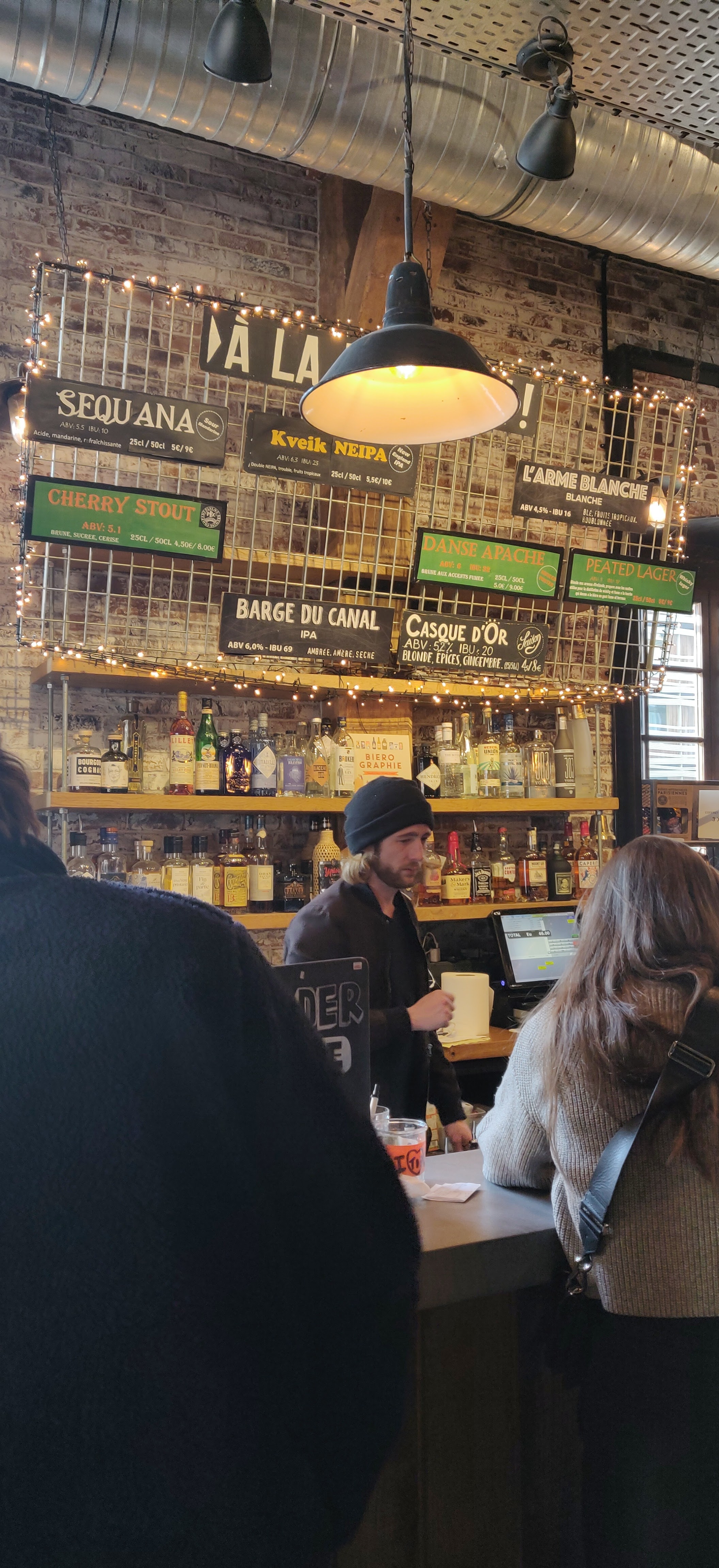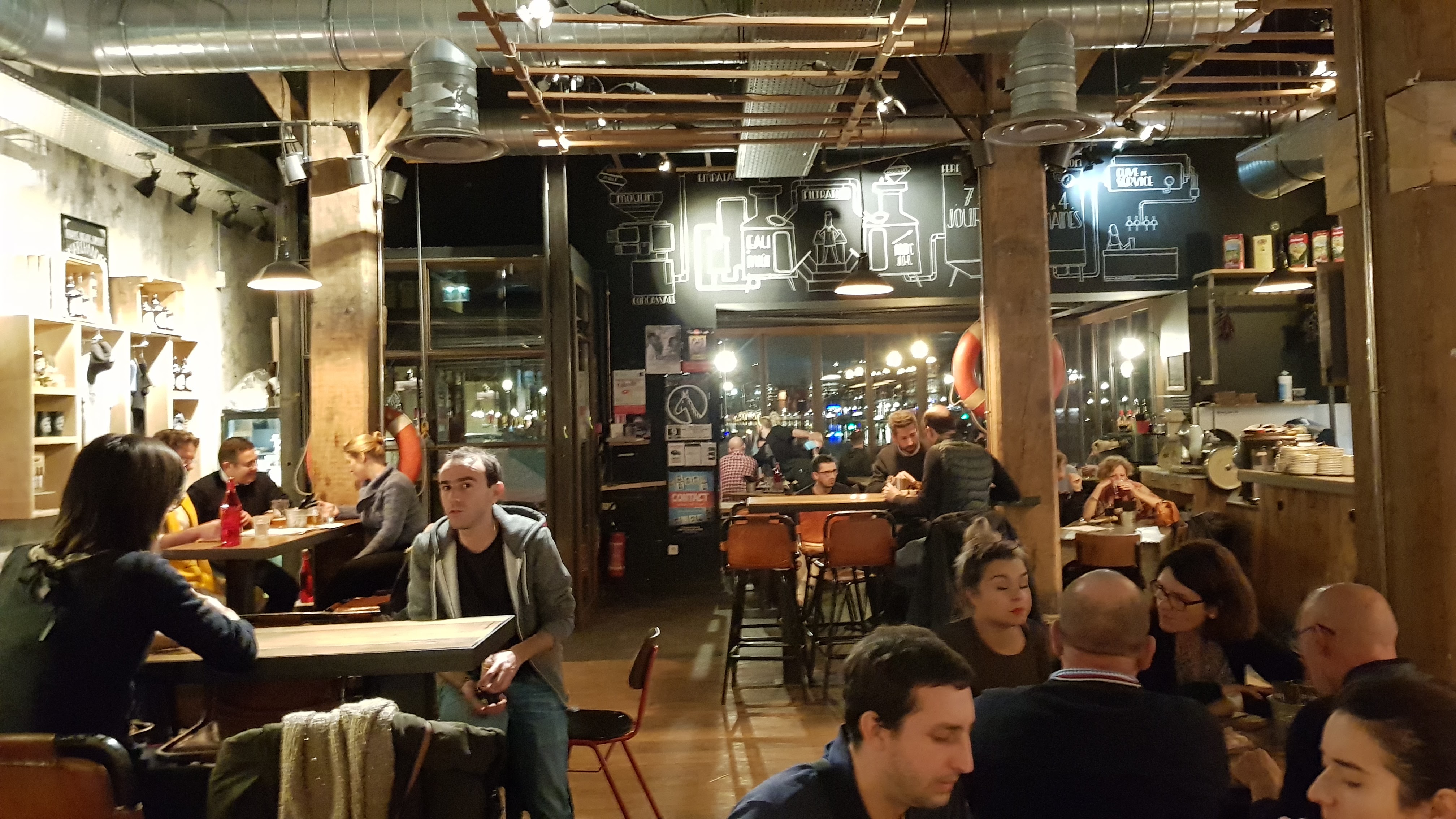 Le grand point fort de ce restaurant est cette vue imprenable sur le canal et les quais, un plus indéniable les jours de beaux temps. Si le service est quasi inexistant (pub, vous devez vous-même aller commander et chercher vos plats) le personnel est sympathique et plutôt tourné vers les touristes non francophones. Vous pourrez y entendre de beaux accents. Souvent bondé, il vaut mieux avoir un plan de secours, heureusement il n'en manque pas dans le secteur. La rançon du succès ! La nourriture y est en revanche un peu plus banale : c'est pas mal, pas de problème là-dessus, et les prix sont raisonnables. L'endroit donne simplement envie que ce soit excellent. Un bon endroit en revanche pour les amateurs d'IPA qui y trouveront des bières artisanales à leur goût.