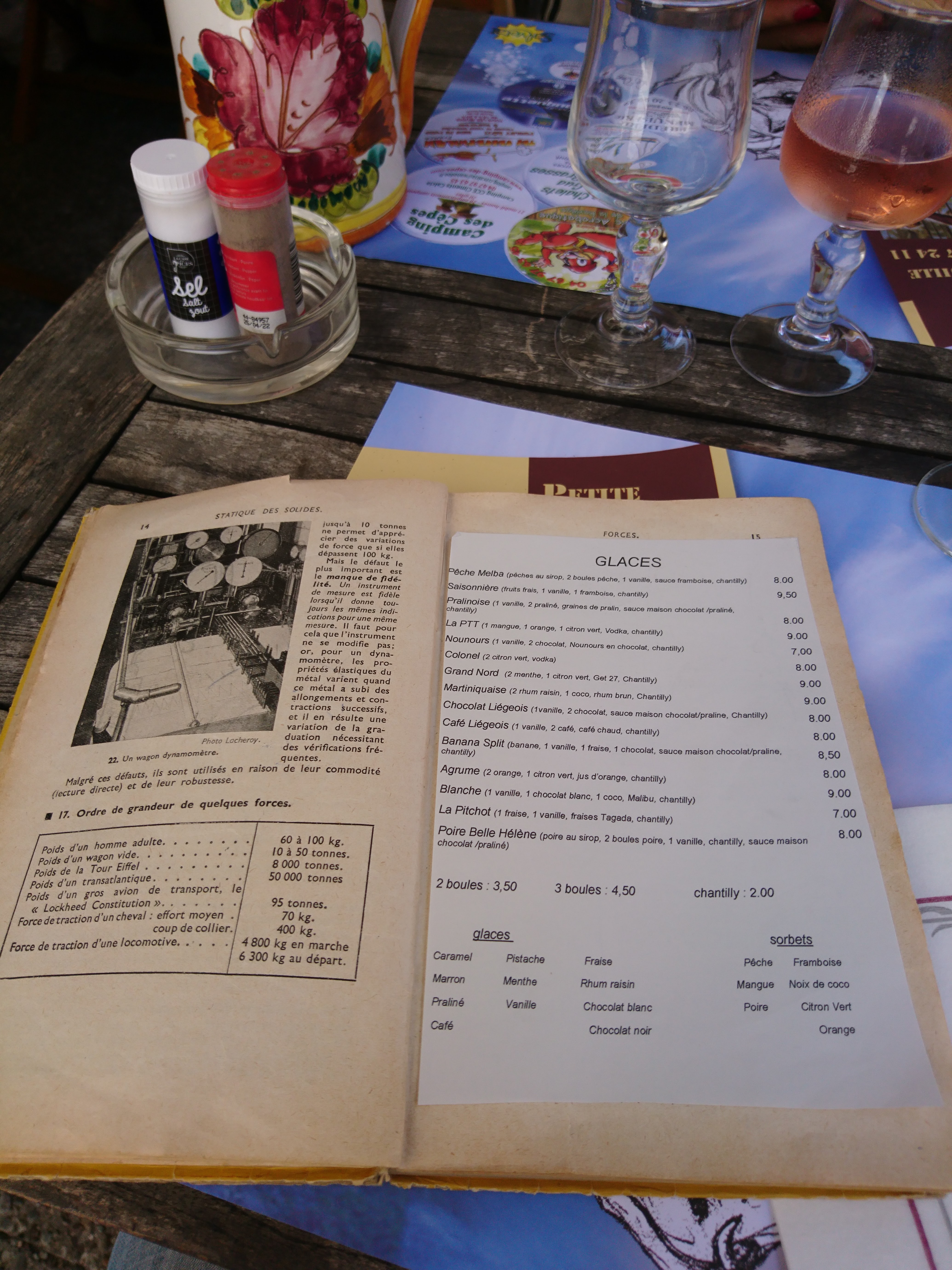 Sorbet, très très bon. En glace uniquement 7 sorbets en boule. Pas de crêpes, pas d'autres glace disponible. Un choix d'alcool énorme par contre.