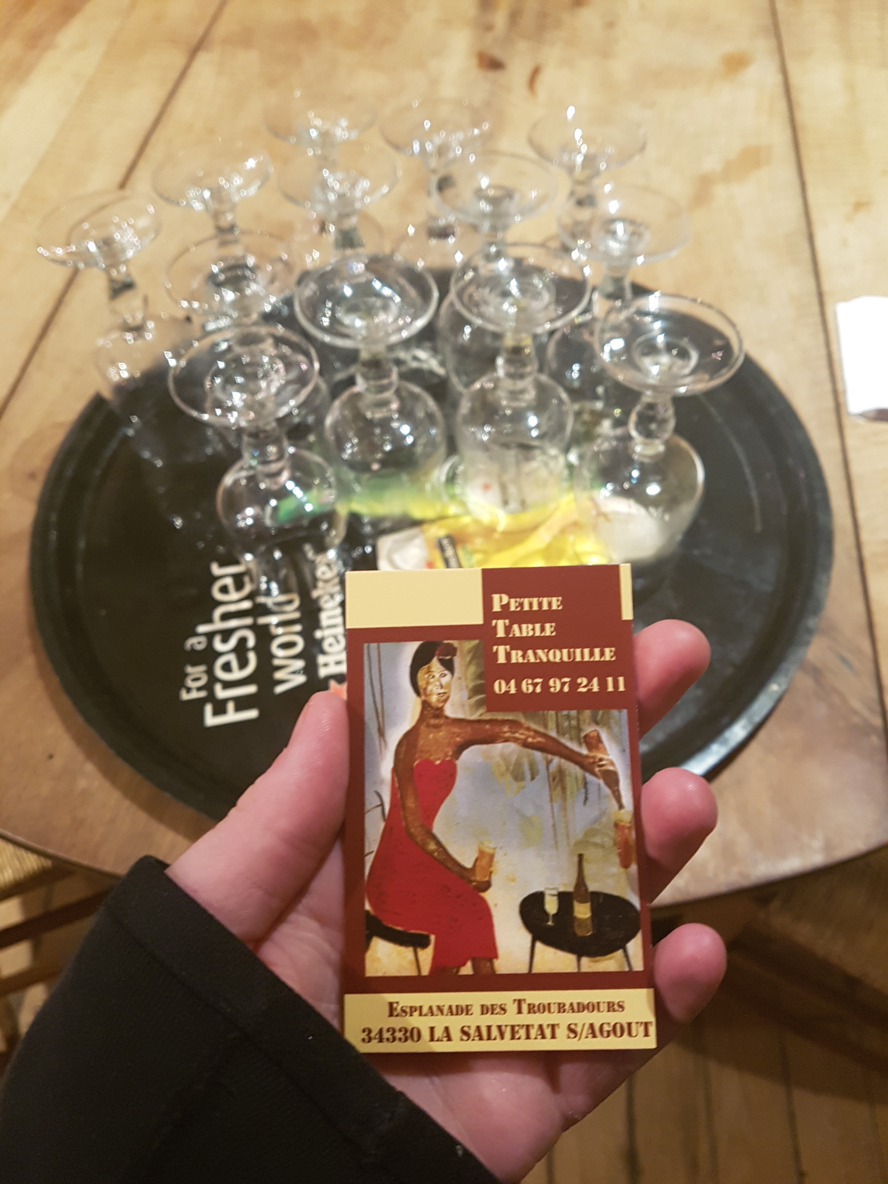 Se perdre à Salvetat et tomber par hasard sur la Petite Table Tranquille. À un mot près on sombrait dans le vieux cliché. Vous comprendrez sur place en découvrant le passé du bâtiment. Faites simple: prenez une salade et une assiette de fromages. Un petit verre de Minervois et hop! l'affaire est faite. Et non, il n'y a pas d'erreur sur la note. Ce n'est pas cher...