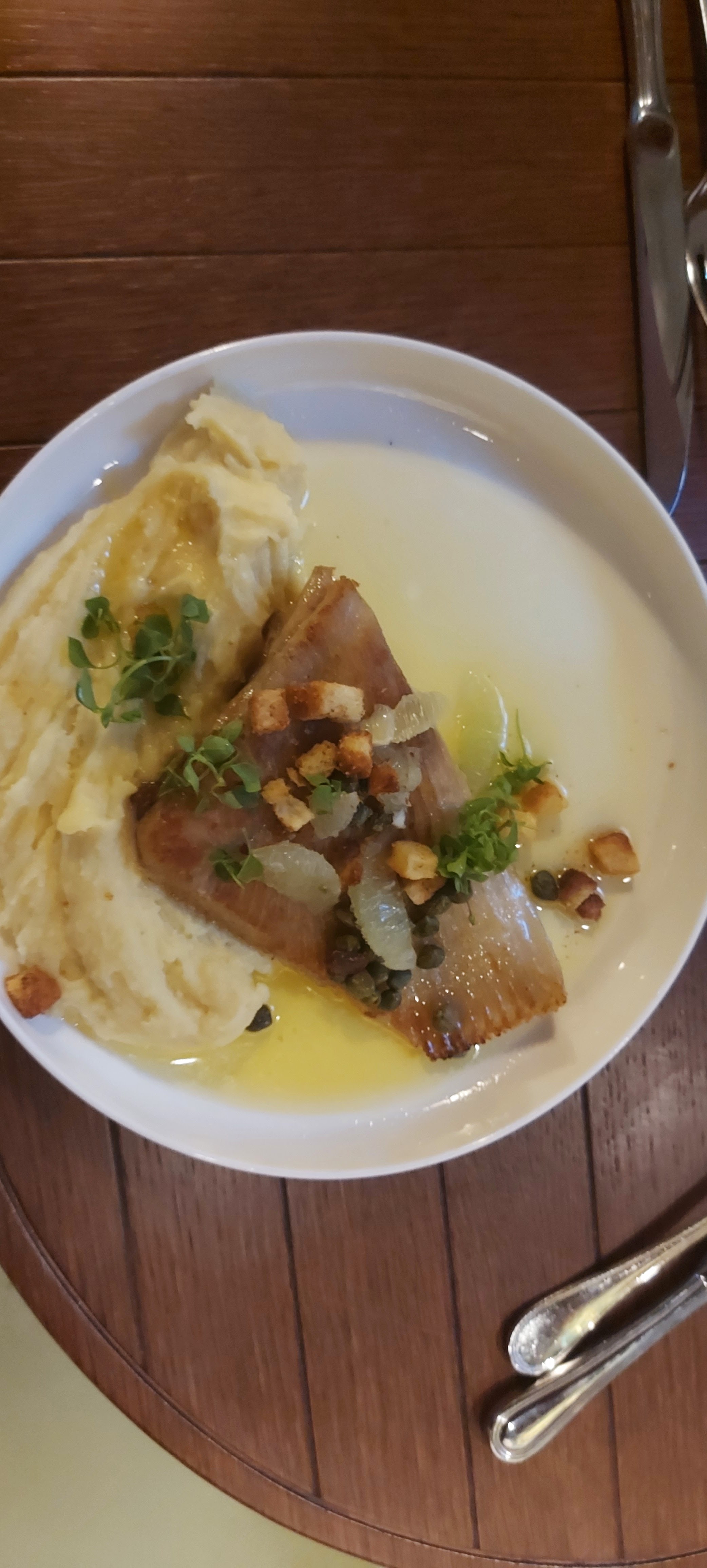 L’endroit est magnifiquement décoré. Bravo à l’archi ! Côté cuisine, le poulpe rôti était délicieux. Trop peu de ´lobster’ dans l’entrée lobster mimosa mais œufs mimosa bien faits. Le fish & chips est à l’aiglefin, un peu sec. Et en dessert, les profiteroles étaient délicieuses meme si un peu plus de choux en proportion aurait le bienvenue. Je reviendrai !