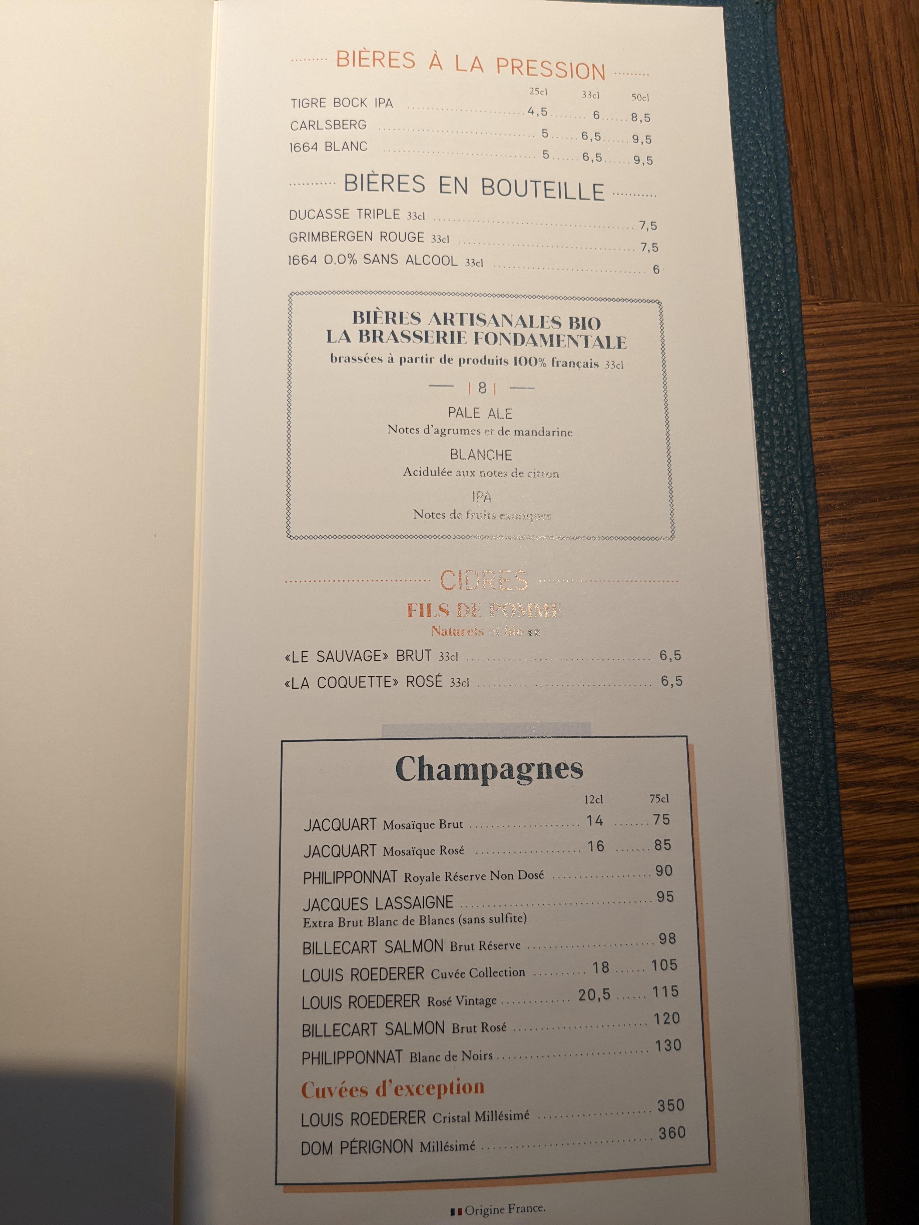 Payer plus de 100€ pour 2 (plat boisson dessert) pour : Cadre très agréable. Aile de raie sans saveur, mais 29€ le plat, cela peut se comprendre. Cocktail fade. Service au début très pressé, à la limite de l’impolitesse puis …… plus personne. Les plats arrivent après presque 30 min. Les boissons pour l’apéritif ?… pendant que nous dégustions nos plats. La carafe d’eau ? Au bout de 3 fois que nous ayons demandé. Nos plats terminés, nous souhaitons passer au dessert. Il fallut prêt de 20 min pour réussir à interpeller le serveur. Nous avons commandé des glaces PVH x BACHIR, excellentes, mais pour le prix autant aller chez BACHIR directement, aucune valeur ajoutée.