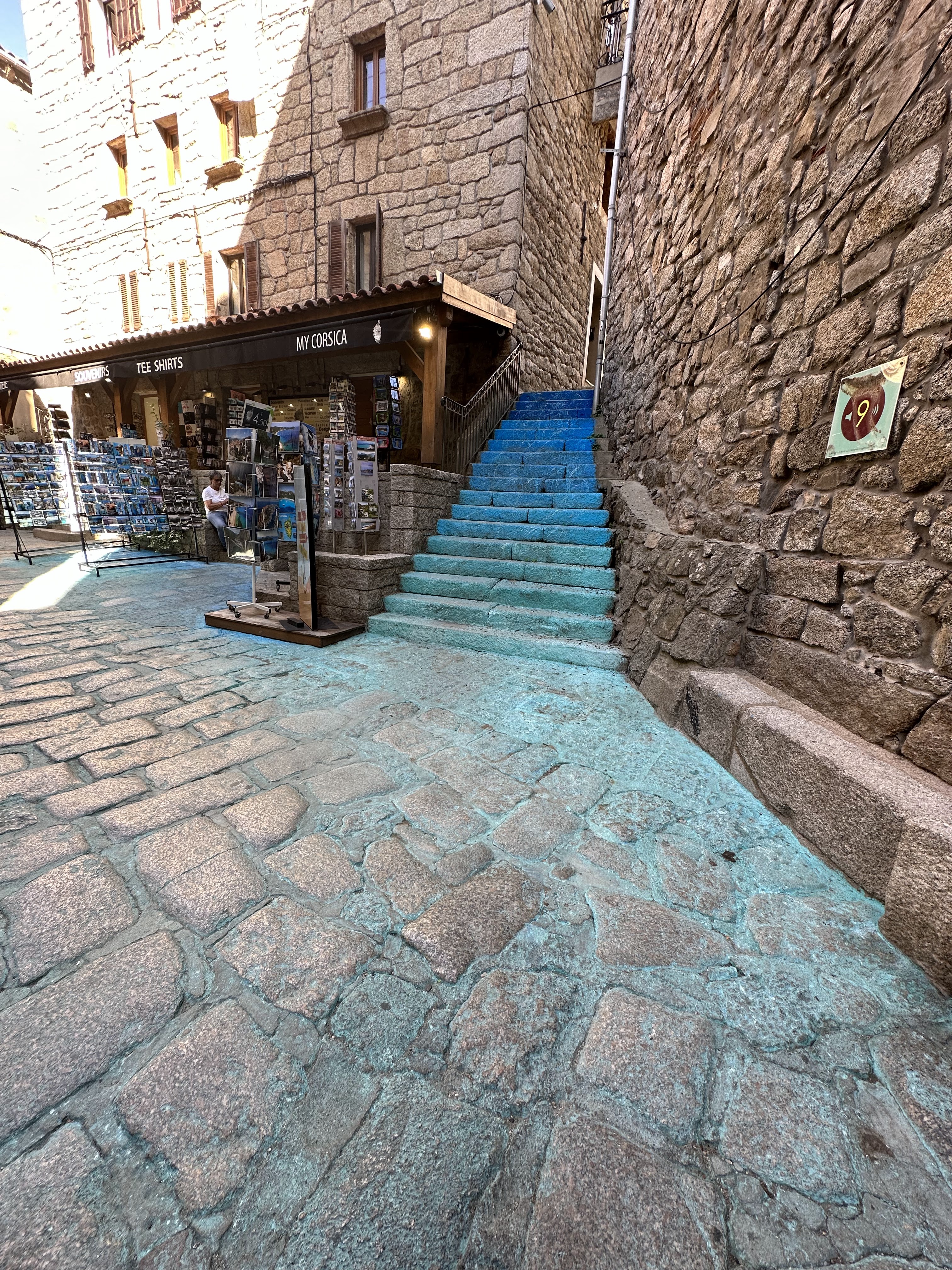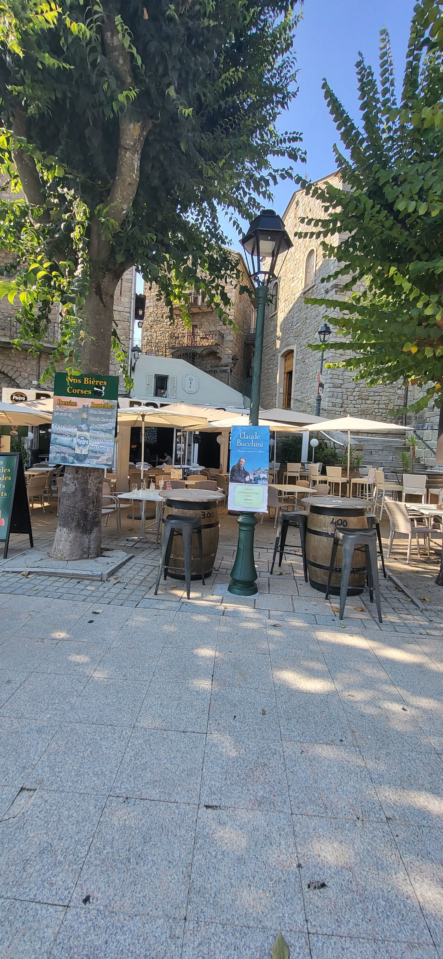 Bar bien situé, sur la place principale de Sartène, au pied de l'hôtel de ville. Les cloches sonnent au dessus de nos têtes, les enfants jouent sur la place, on palpe l'ambiance de La plus Corse des ville Corse !