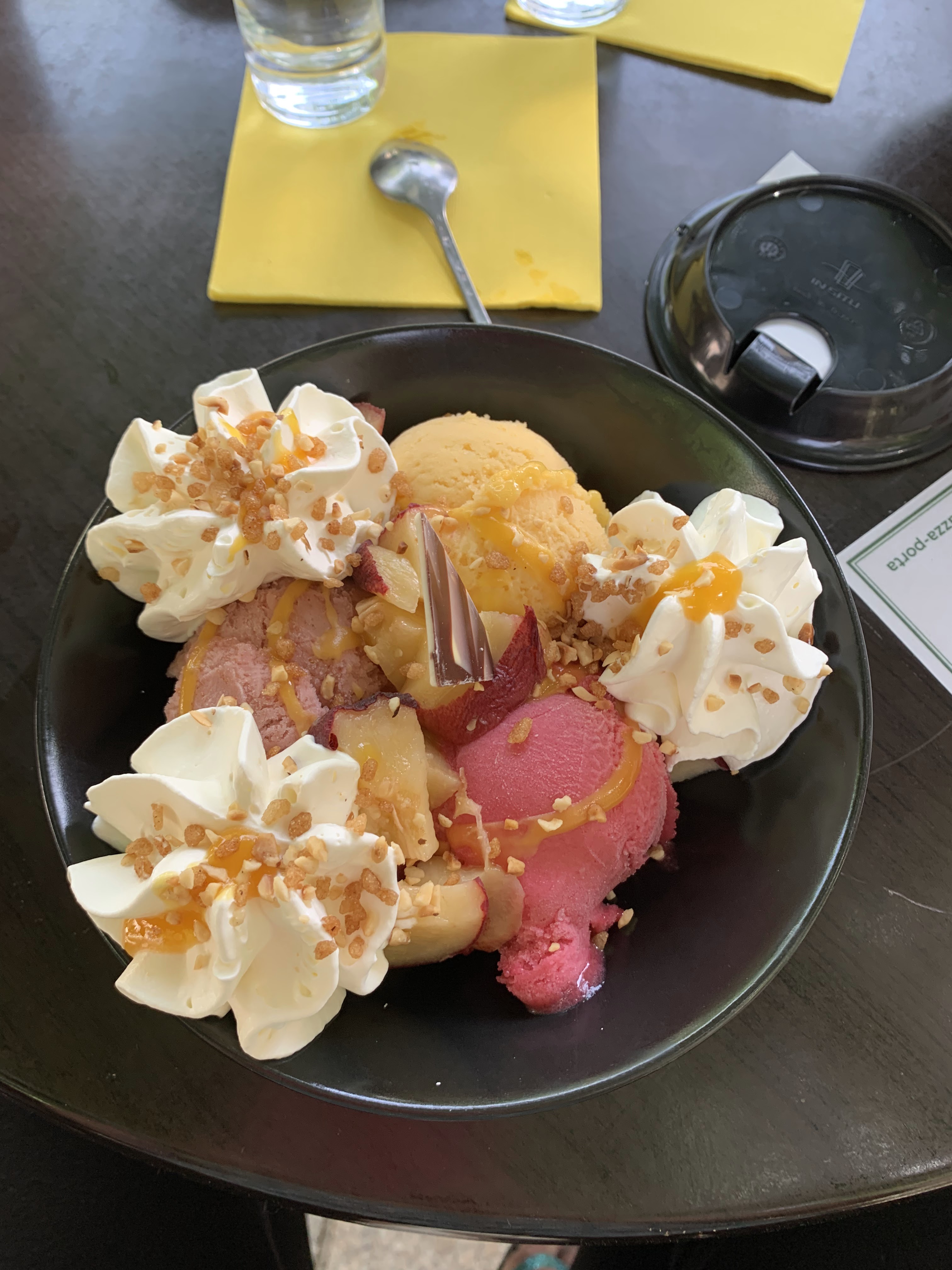 Agréablement servi pour manger deux glaces extrêmement bonnes et copieuses (une rossa aux fruits rouge et une exotique)! Encore merci