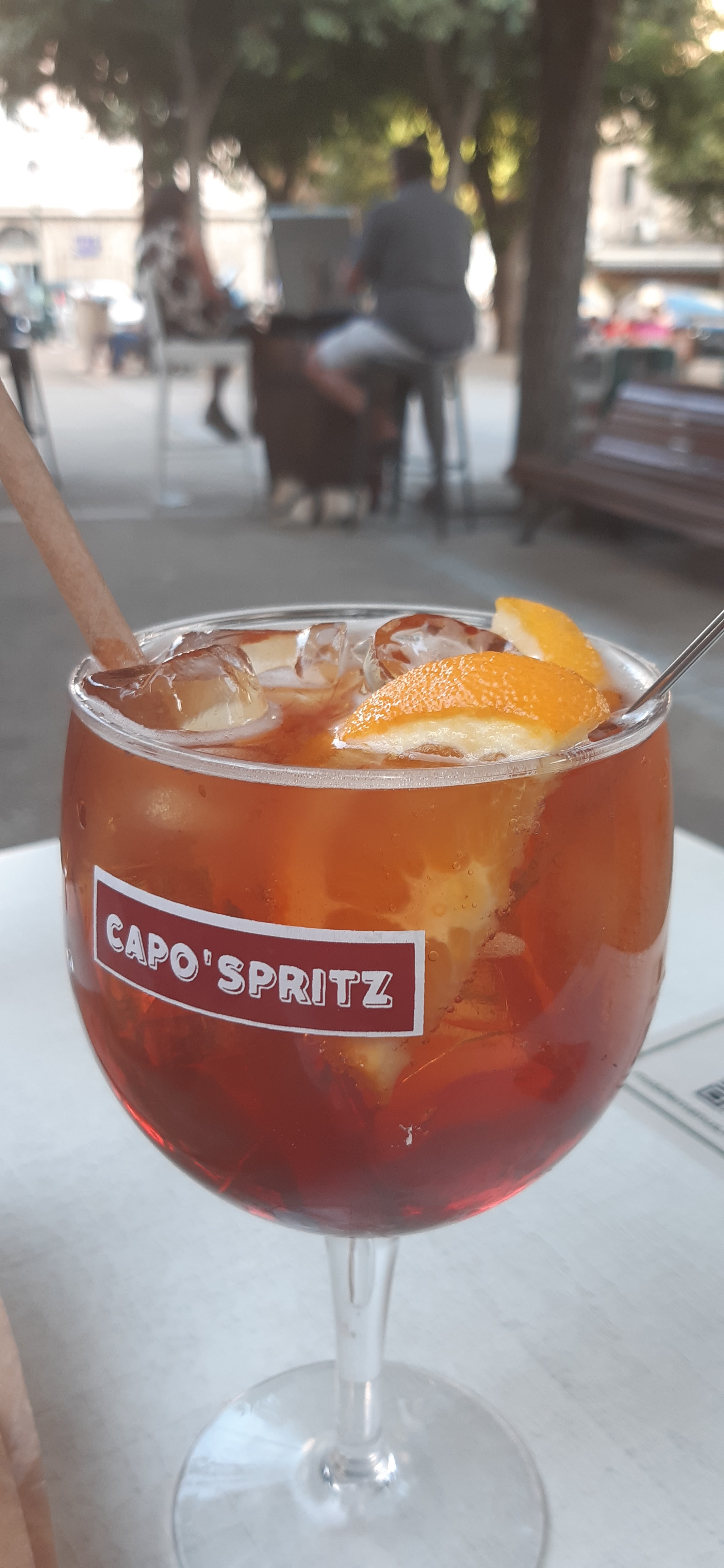 J ai voulu un Spritz... le Capo spritz m a été proposé... différent plus alcoolisé mais d un goût agréable. 8,5€ quand les 2 bars de la même place font le vrai Spritz à 7€ à vous de choisir