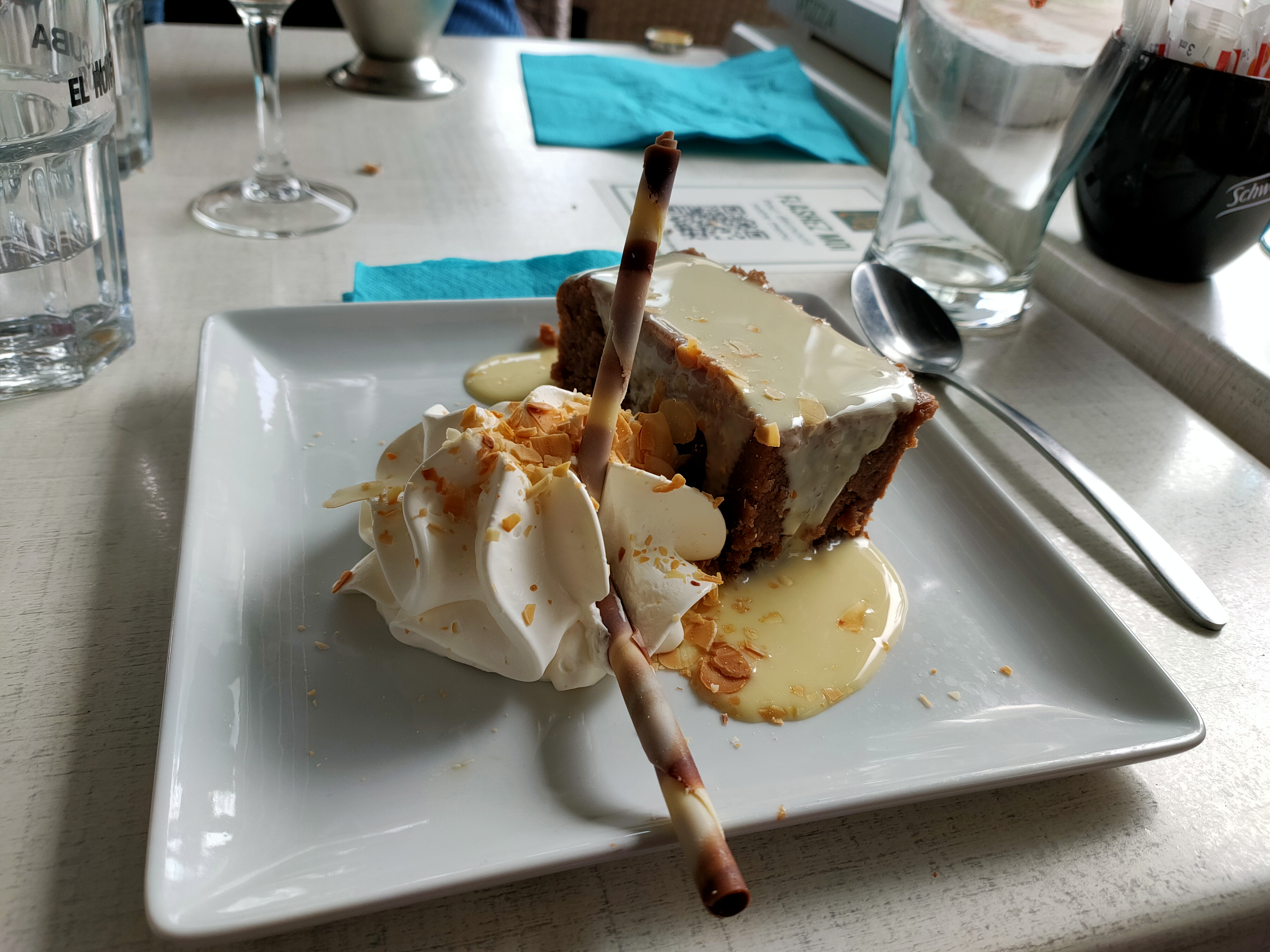 Service rapide et efficace, salade basique mais néanmoins appréciable, le moelleux à la châtaigne était très très bon, la terrasse est grande et agréable, donne sur la place centrale