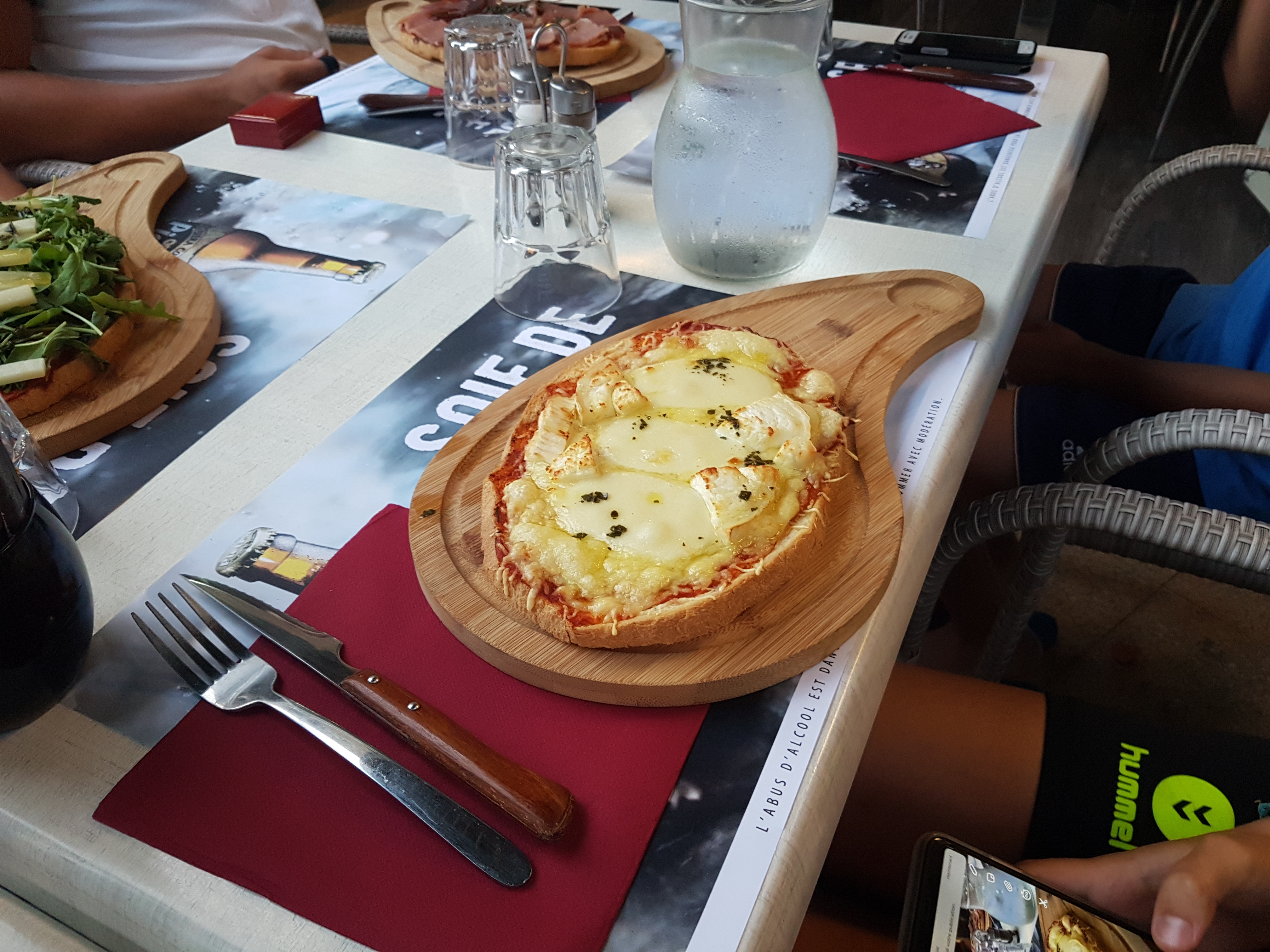 Dîner en famille ; accueil fort agréable du serveur; nous avons pris la suggestion du jour (tartare de saumon) qui était excellente et de même pour les pizzas prises par nos enfants.