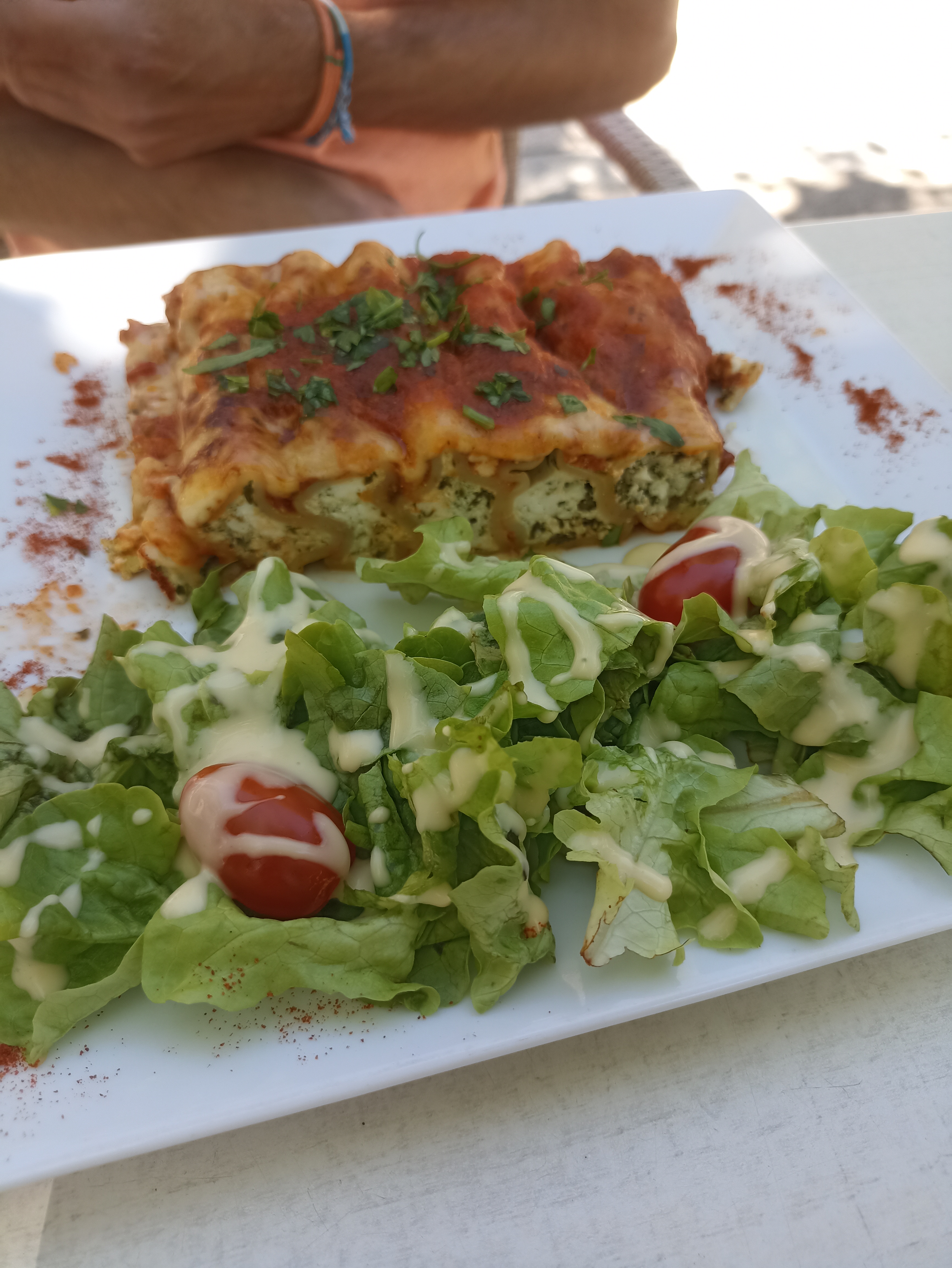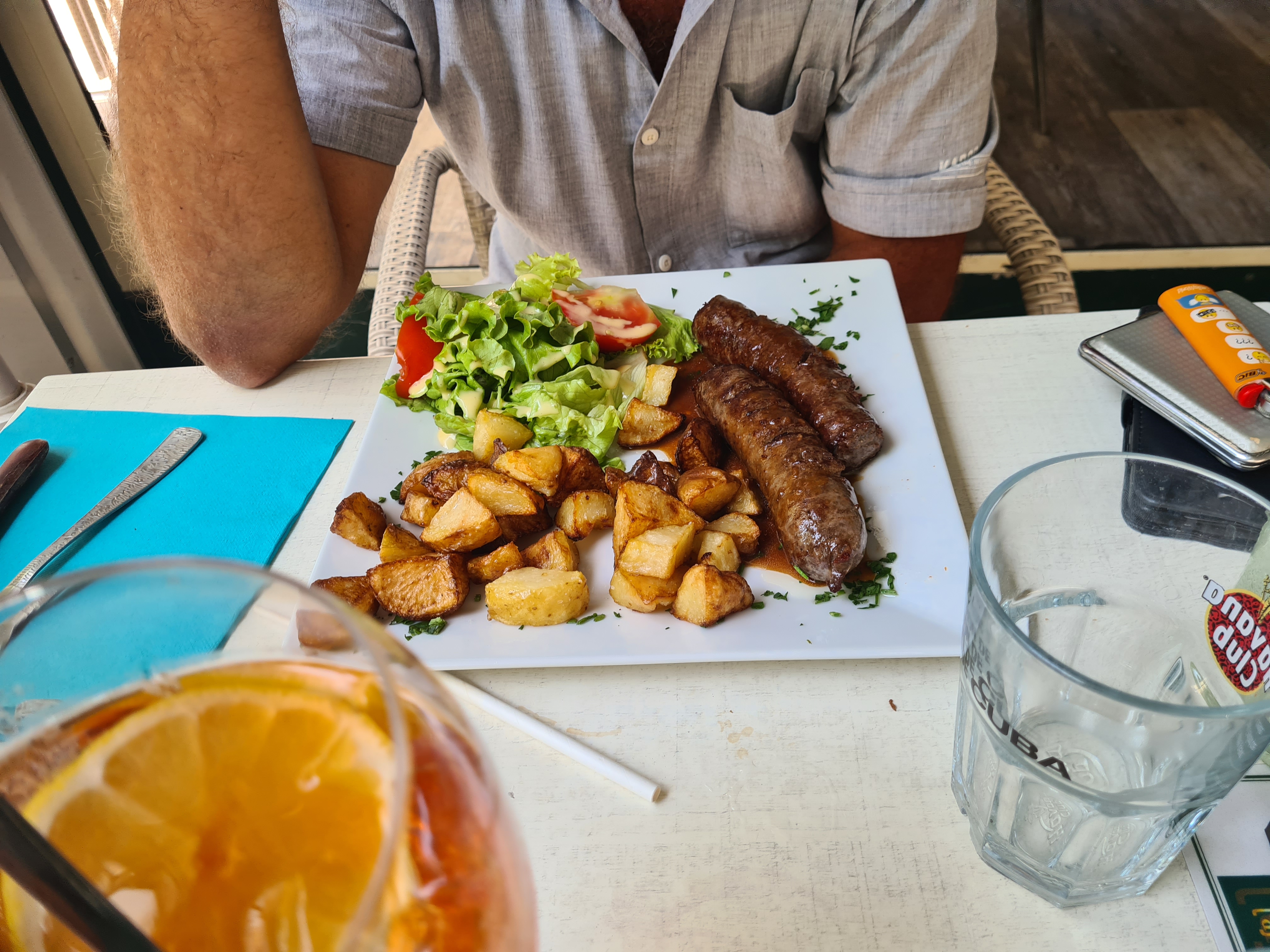 Pour un repas sur le pouce un désastre. Les tomates sont vertes ,l'huile d'olive aigre et de piètre qualité. La saucisse de veau n'est pas cuite et la sauce servie avec déplorable.seul point positif les 2 serveuses rencontrées sont agréable. Adresse à éviter