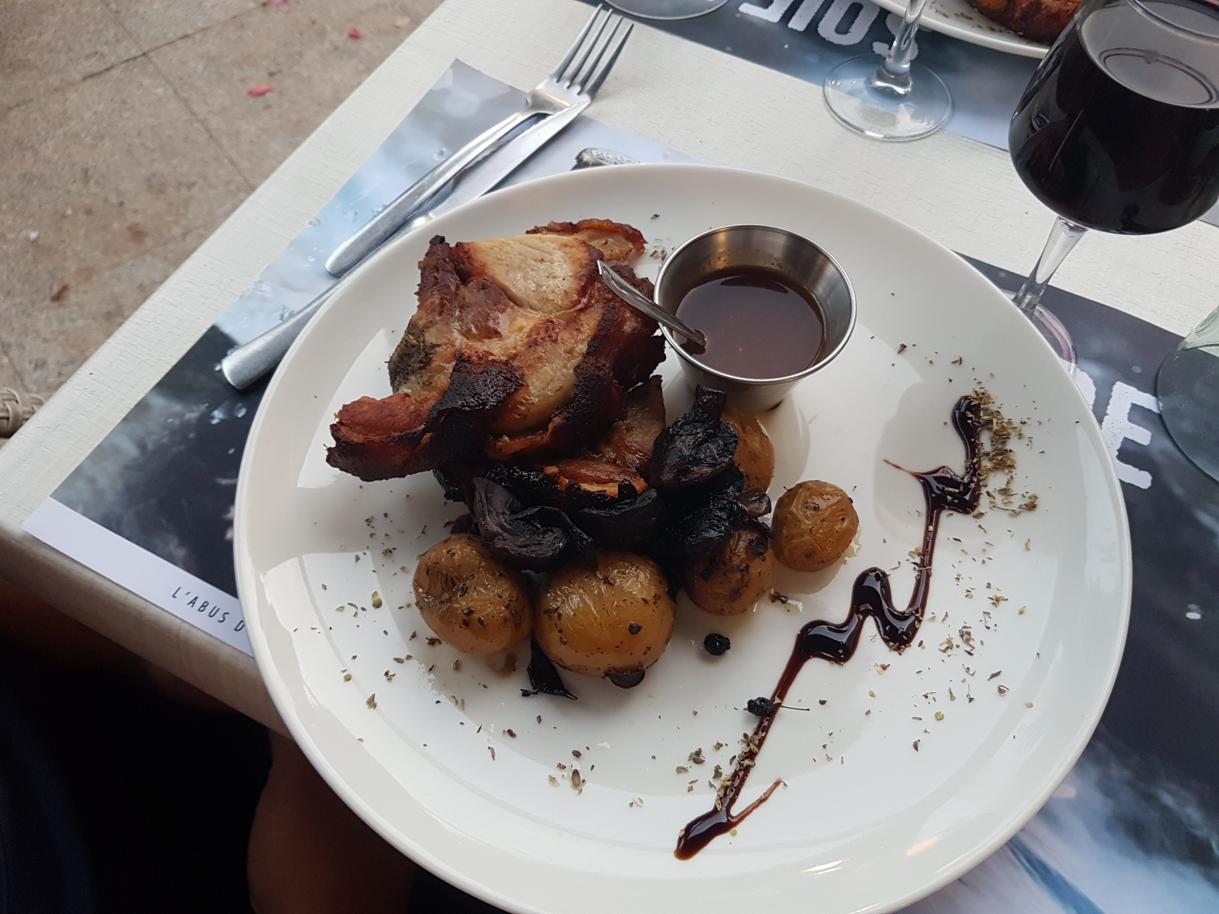 Un cabri constitué d'une cage thoracique des os et de la peau sans pattes ni cou :( Pour 25€ quand même ...... Bon vin, c'est vrai ...et bien placé sur la place, c'est vrai .... Ça fait pas tout pour le rapport qualité/prix :(