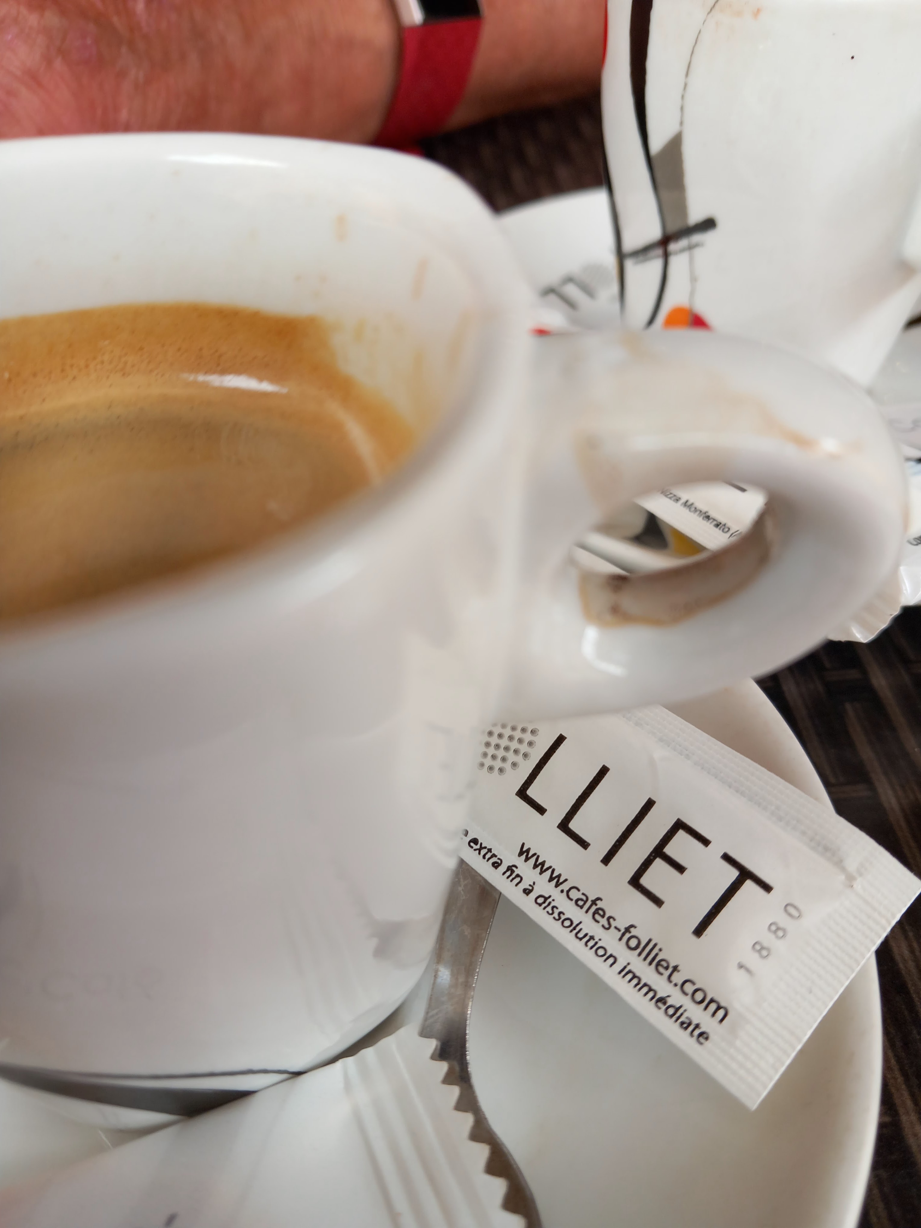 nourriture -bien- mais les 2 assiettes très ebrechees, idem coupe du tiramisu, et tasse à café carrément sale avec noirceur incrustée ! les textes de Loi sont clairs: La vaisselle ébréchée est à retirer du service ... et les tasses lavées entre chaque utilisateur ... oups !!