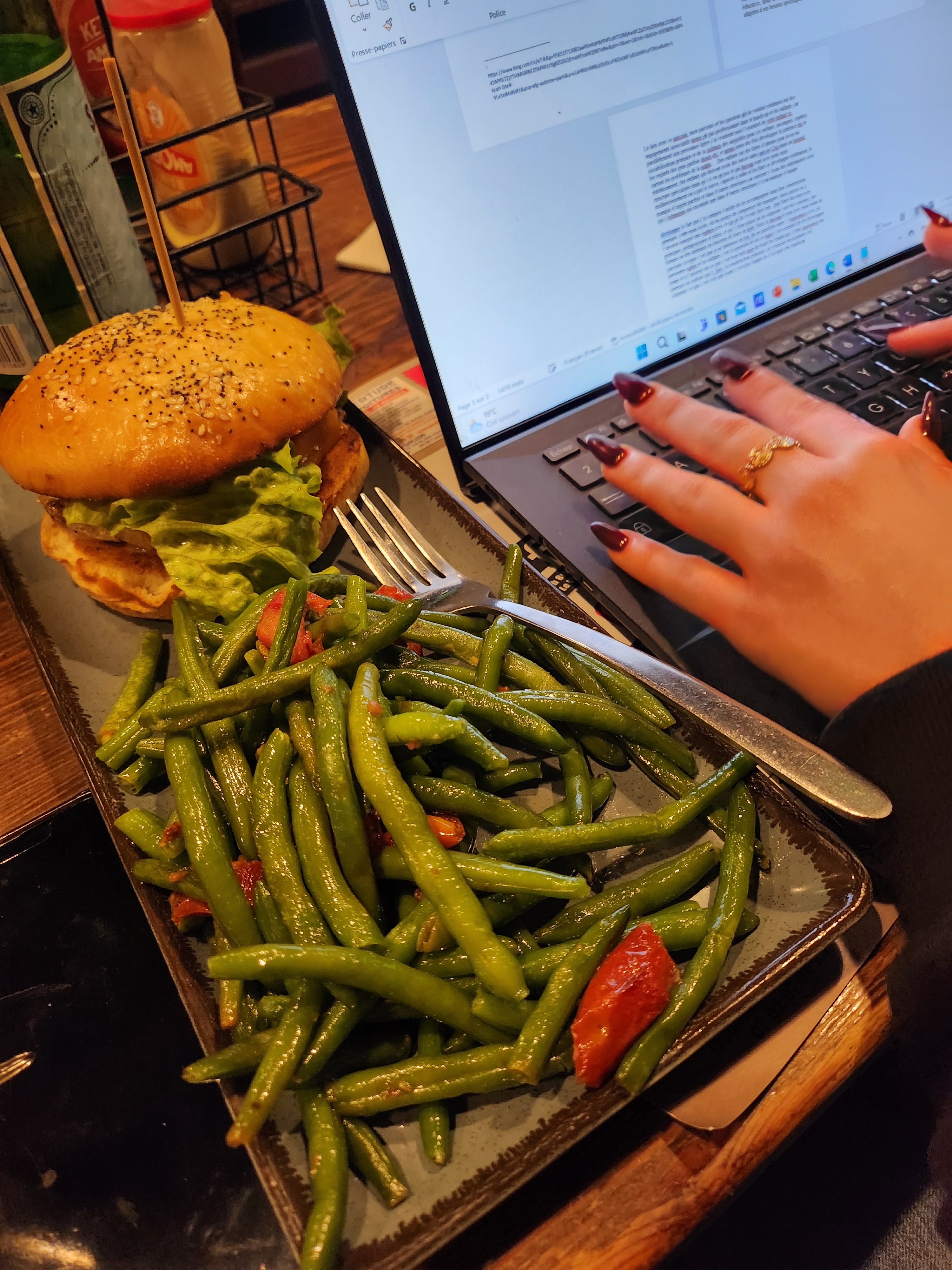 Bonne nourriture surtout le sérieux avec le plat de salade 🥗 et de haricots verts