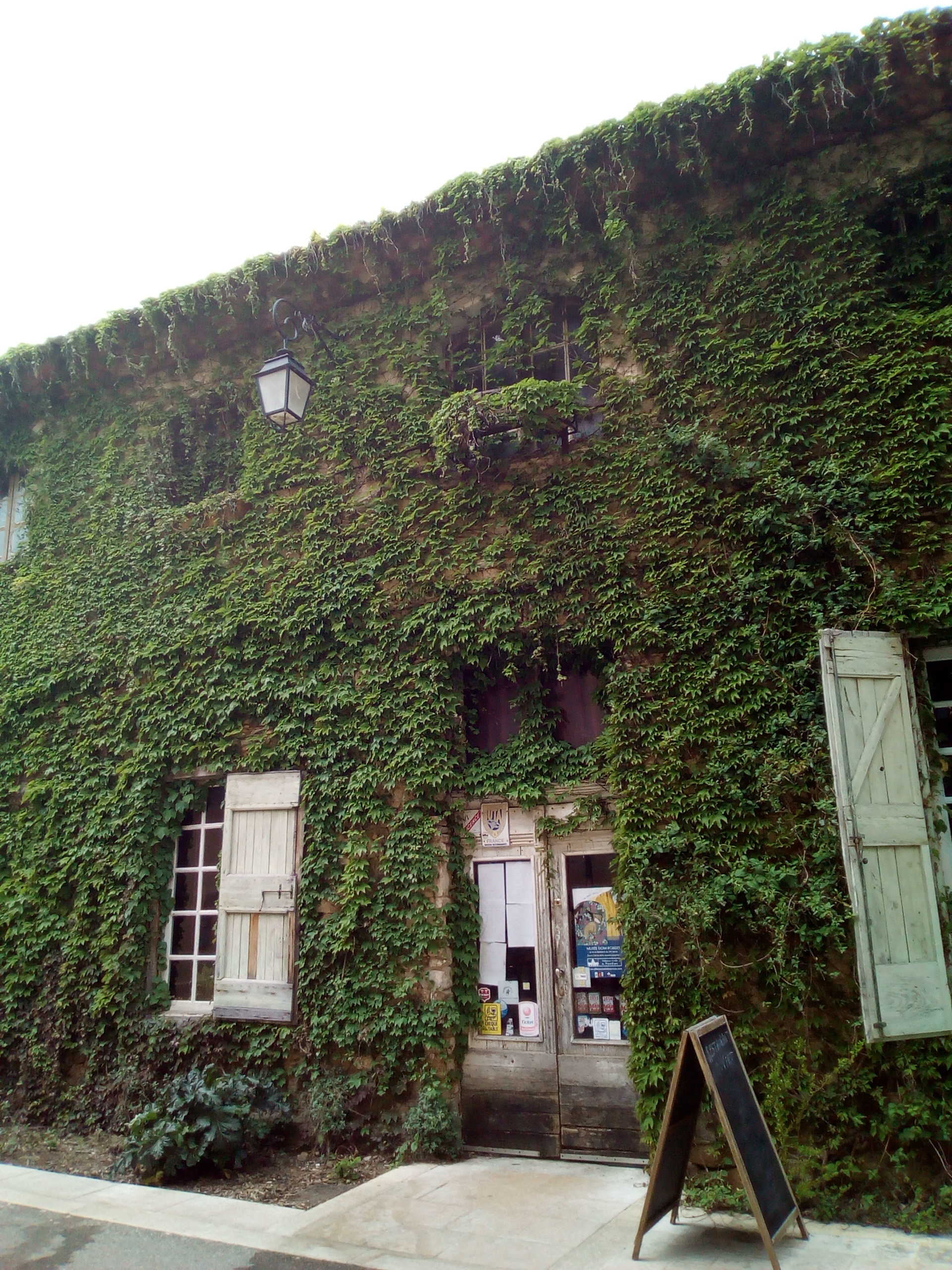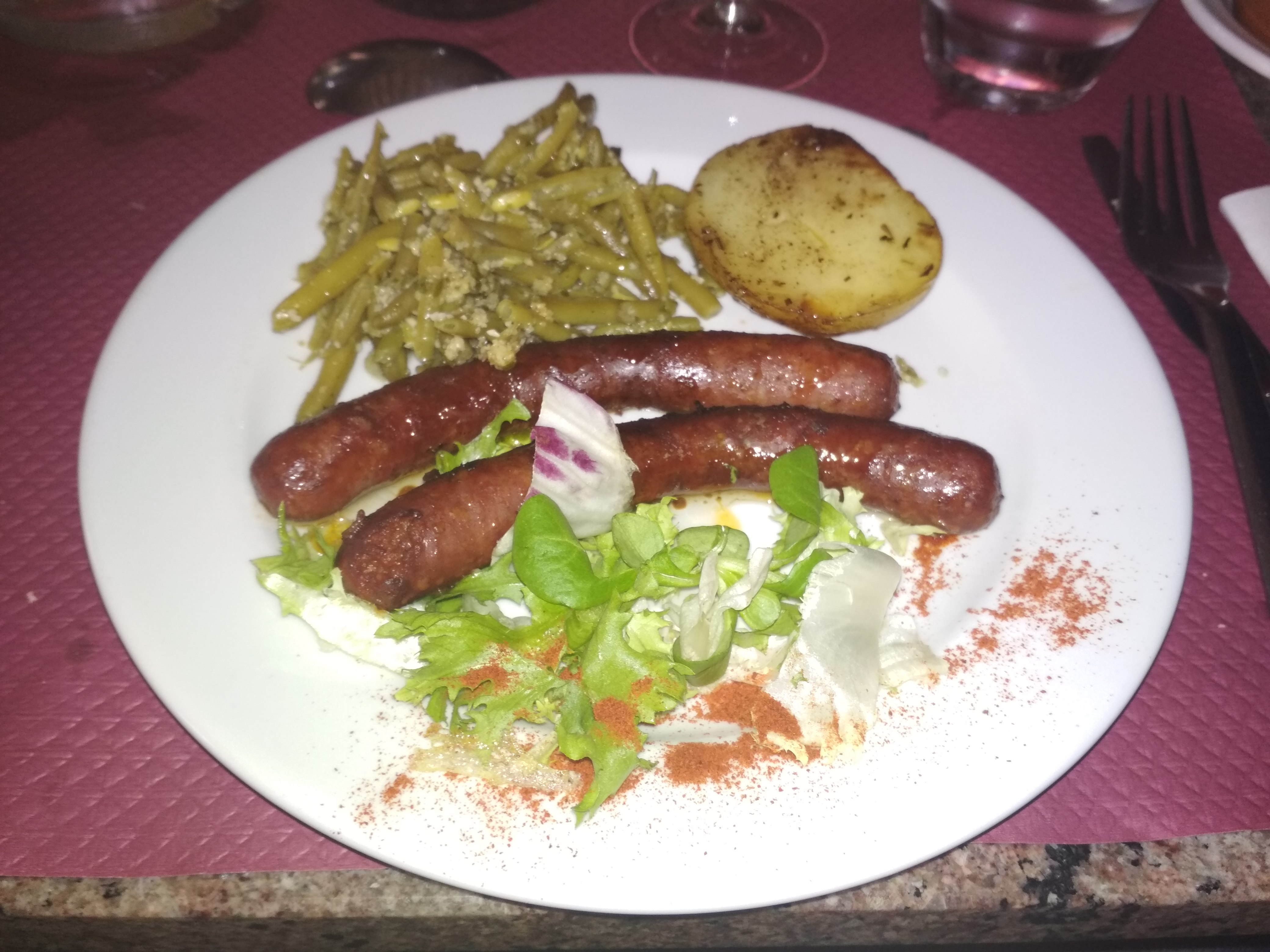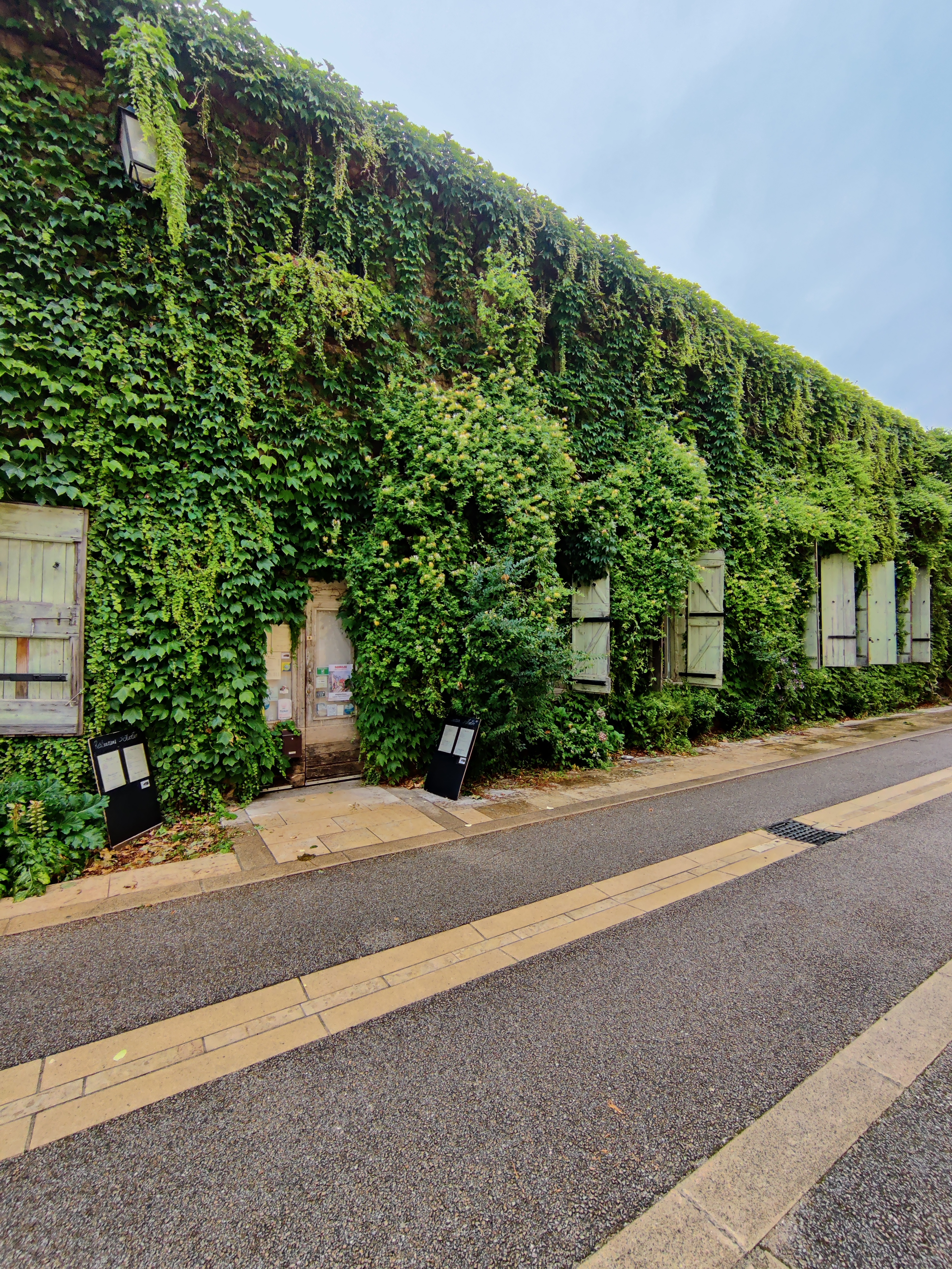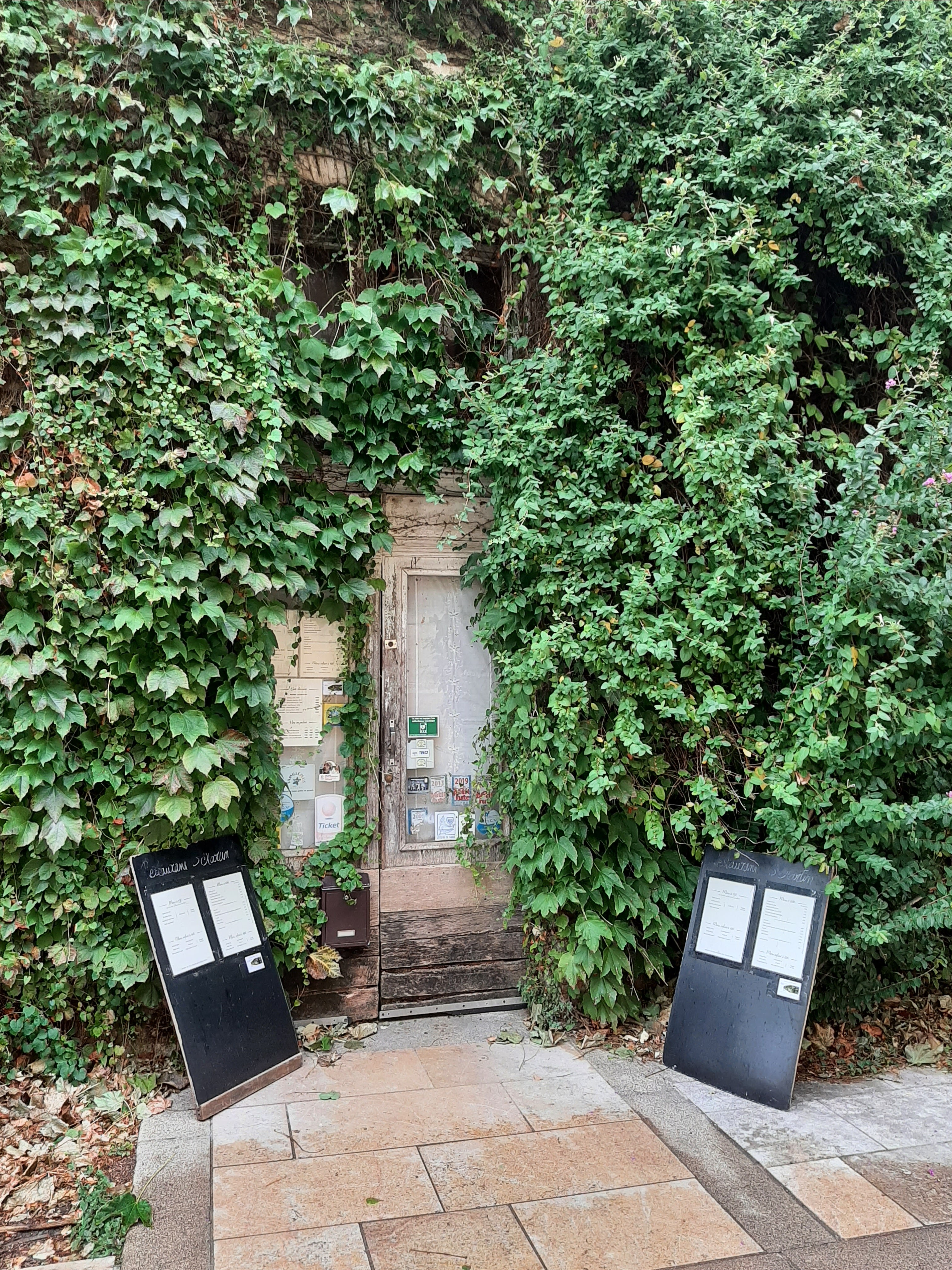 Oyé oyé bonne gens, ne le cherchez plus, vous êtes arrivé. Votre destination gourmande est bien cachée derrière ce rideau végétal. Pour pénétrer dans se lieu atypique, lisez bien l'instruction sur la porte... tirez (et non pas poussez...). Menu à 28€, assiette de charcuterie bien garnie, fresinat (ragout de porc) vraiment délicieux et mousse au chocolat, la vraie de vraie. Pas de celle que malheureusement on trouve presque partout à base chimique ou avec de la chantilly. Non celle là c'est une vraie mousse au chocolat.