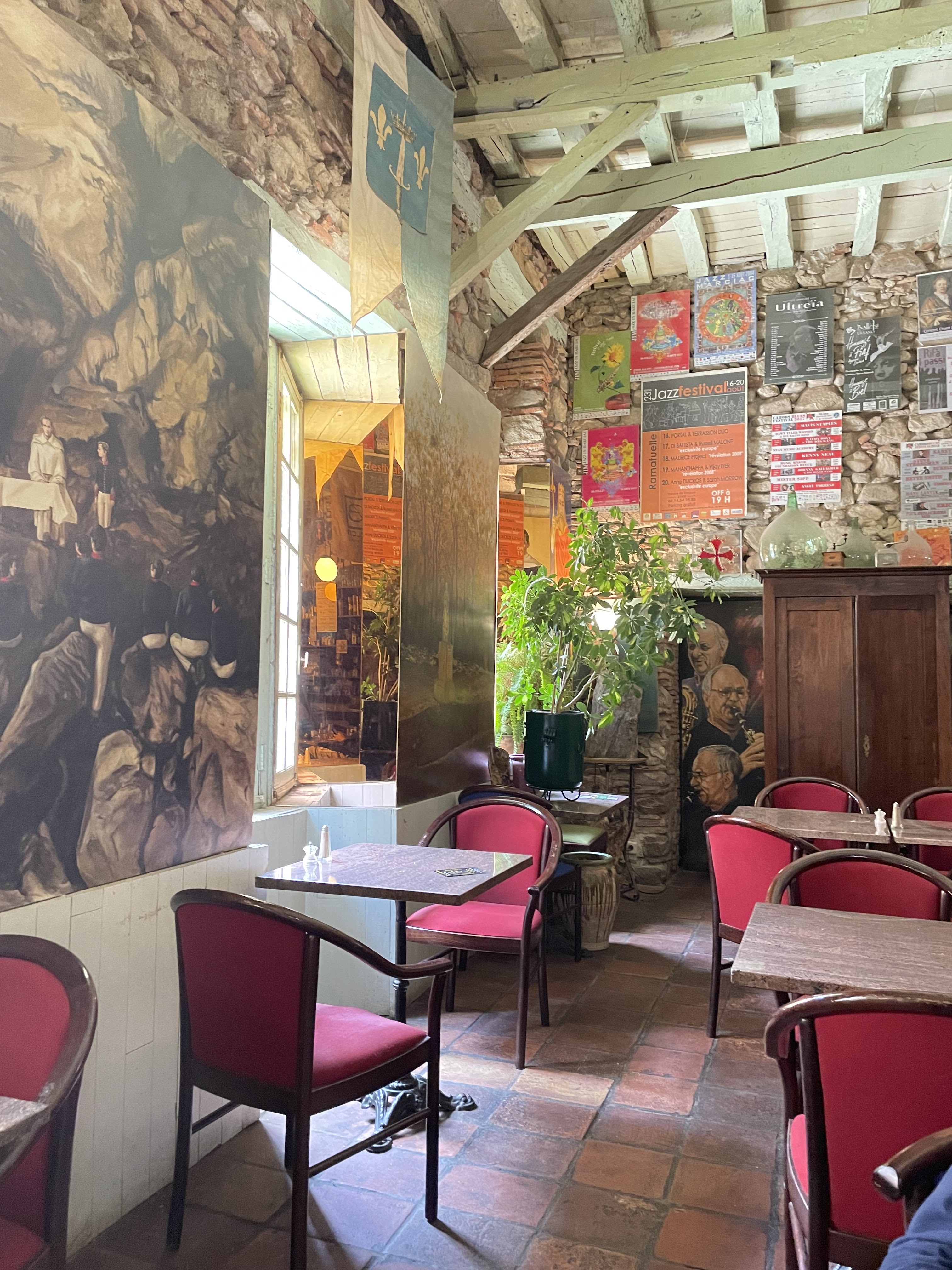 Jazz. Médiéval. Chaleureux. Accueil très sympathique et sans rond de jambes. Cuisine locale, simple, typique servie copieusement. Rue pour y accéder à pied sympa. Grand parking en dehors de la ville. Un restaurant avec une âme, une vraie.