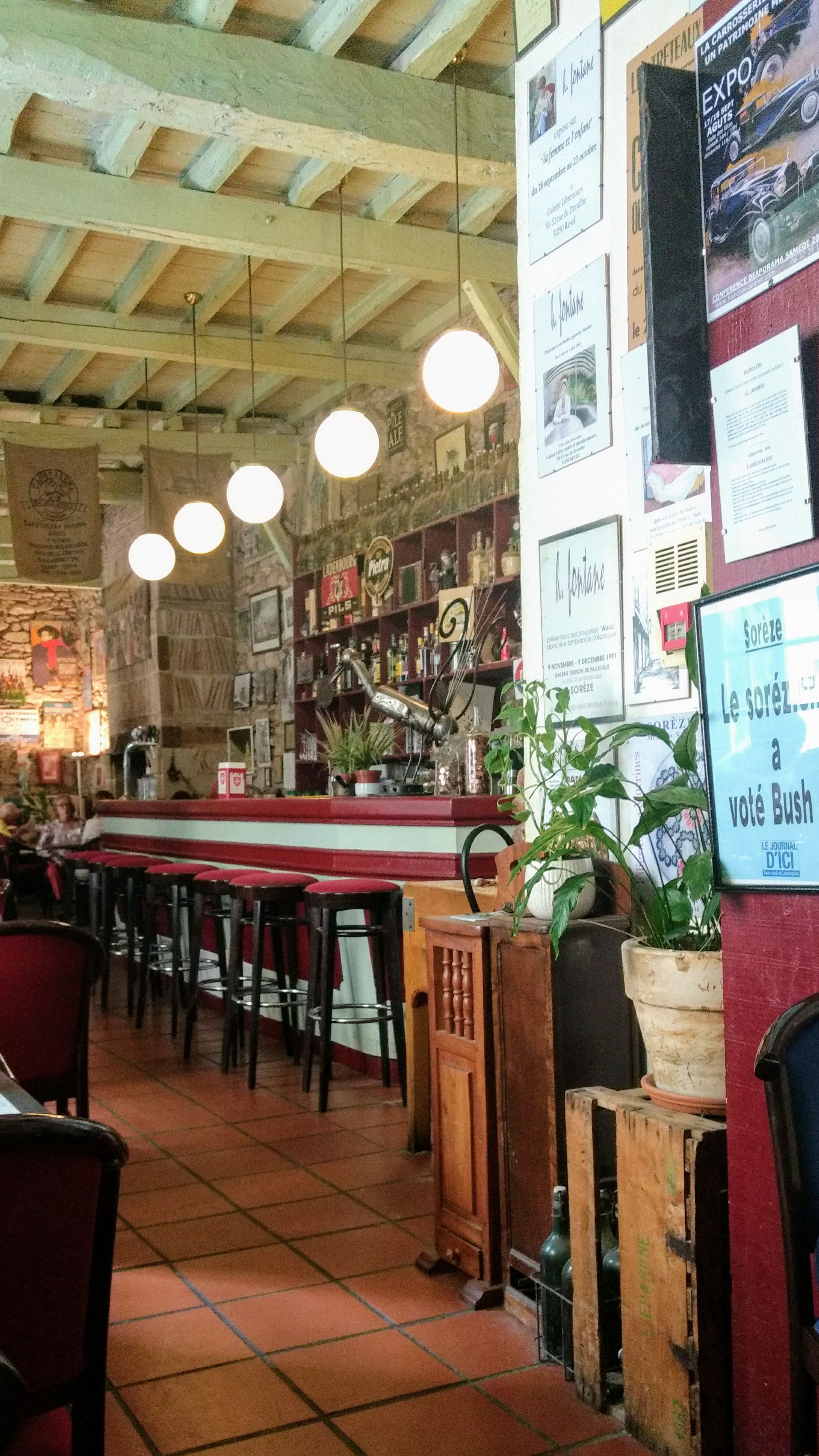 Par où commencer... Le lieu déjà. Au beau milieu de Soreze dans une petite rue. Une façade cachée de Lière. On tire la porte et là c est magique. Une ancienne bâtisse ornée d une déco mêlant ancien, kitch et peintures. Cela semble chargé mais hypnotique à la fois...j adore ! N attendez pas les derniers tubes à la mode, le fond musical jazzy et années 20 vous fera faire un bond dans le temps où on savait faire autre chose que de l auto-tune! Le service est parfait, rapide et les plats sont bons. Entrée, plat, dessert, café et 1/4 de vin pour 12€ ou en formule à 16€. Pour le prix, le chat de la maison qui est très bien élevé viendra vérifier si quelques gratouilles lui sont réservées... J 'y retournerai...