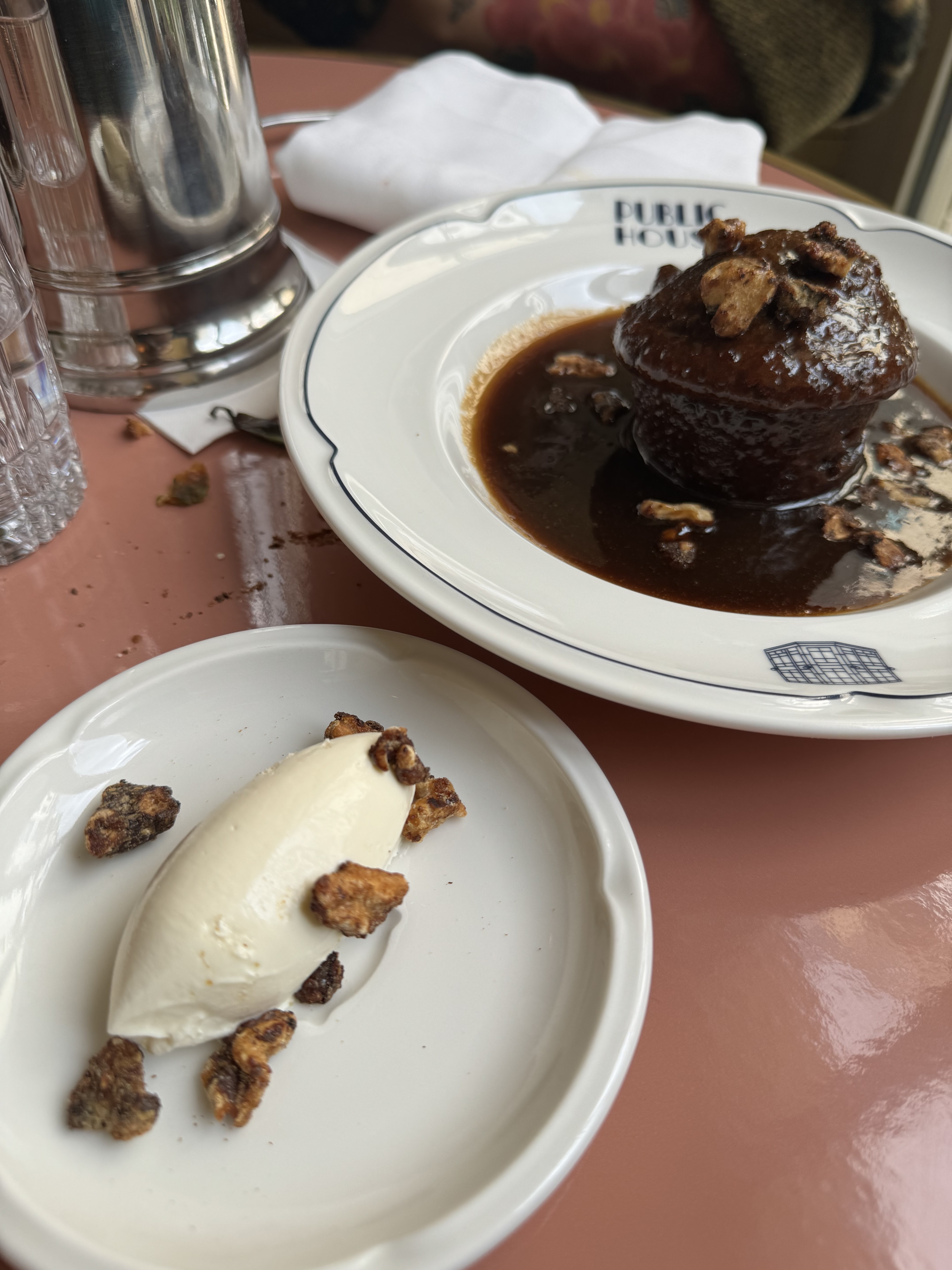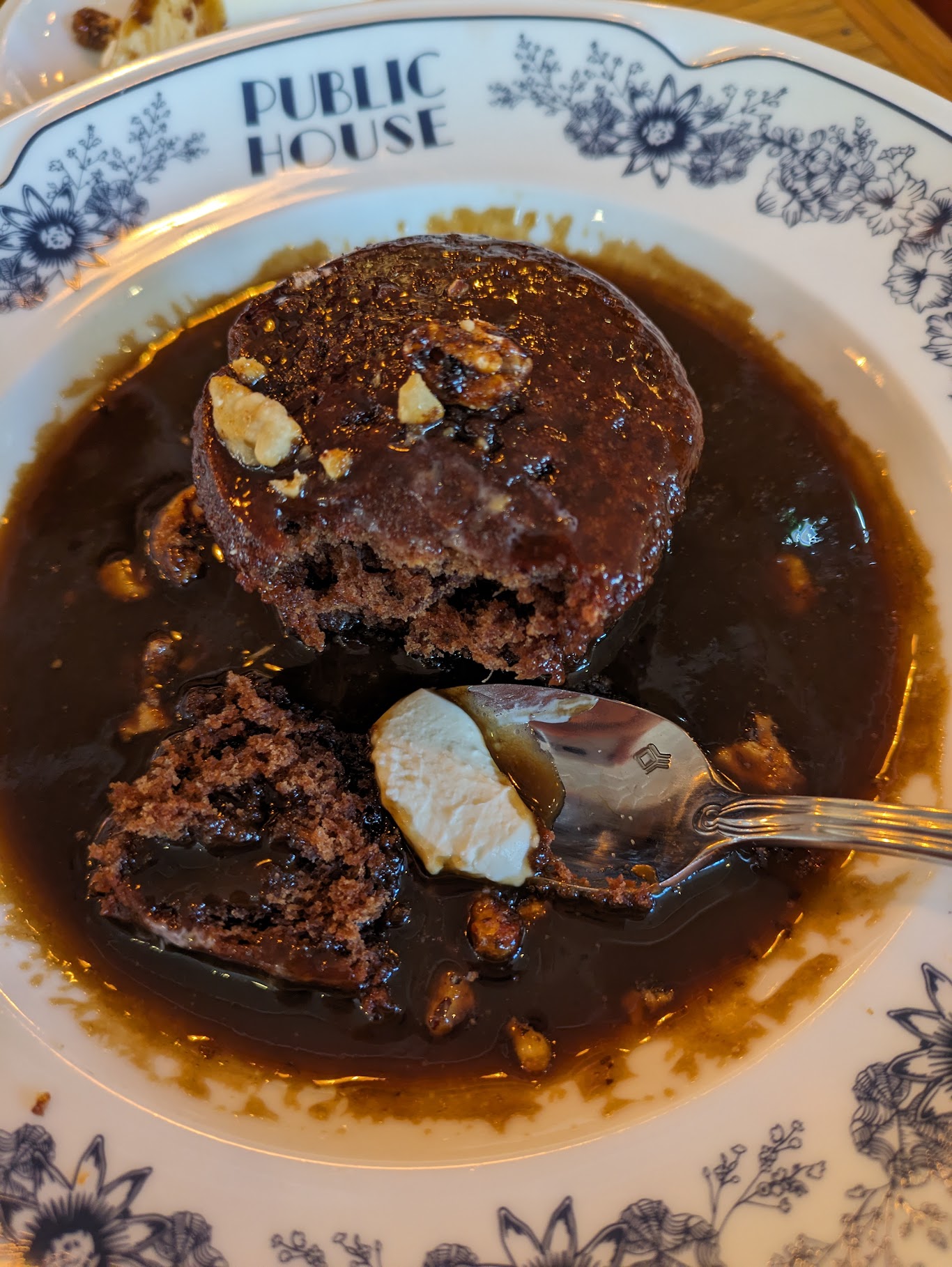 J'avais vraiment hâte de venir ici car j'adore les pubs et la cuisine des pubs. L'ambiance est vraiment agréable, lumineuse et conviviale. Le personnel a été très chaleureux lors de l'accueil. J'ai commandé la tarte au cheddar et pommes de terre daudphinoises qui avait l'air très appétissante mais qui était plutôt fade. Le pain était excellent. Cela faisait longtemps que je n'étais pas allée à Londres et j'ai été ravie de voir le sticky toffee pudding sur le menu. Il était très bien présenté. Hélas, la texture ressemblait plus à un gâteau qu'à un pudding et même si la sauce n'était pas mauvaise, le dessert était finalement décevant. Lorsque l'addition est arrivée, on m'a surfacturé un vin que je n'avais pas commandé. La correction nécessaire a été faite mais il semble que même si l'endroit n'était pas plein, le personnel était plutôt désorganisé et ne semblait pas savoir ce qu'il vendait/servait. Je souhaite vraiment que ce restaurant réussisse. Malheureusement, d'après mon expérience d'aujourd'hui, je dois dire que le Public House est assez décevant.