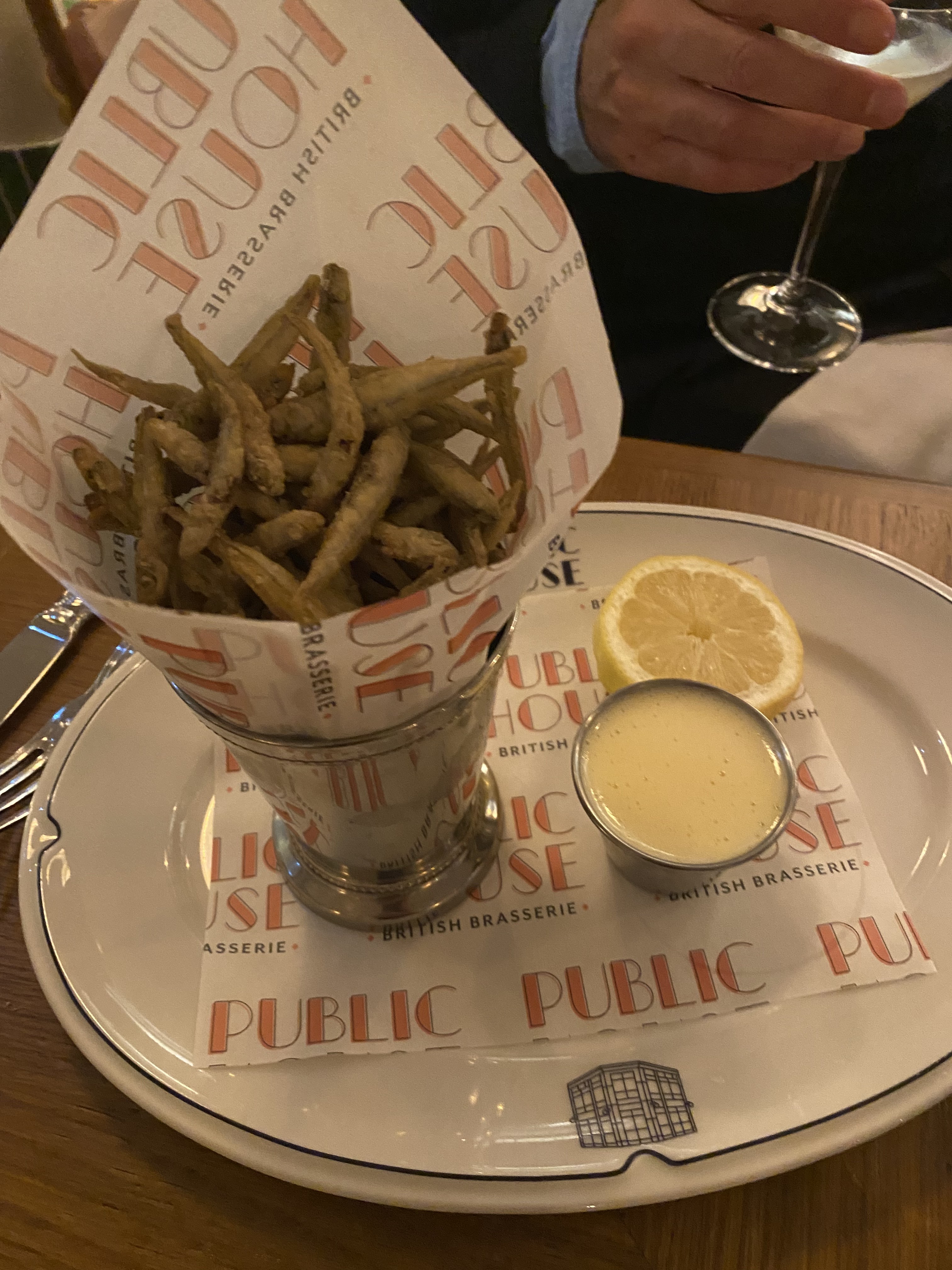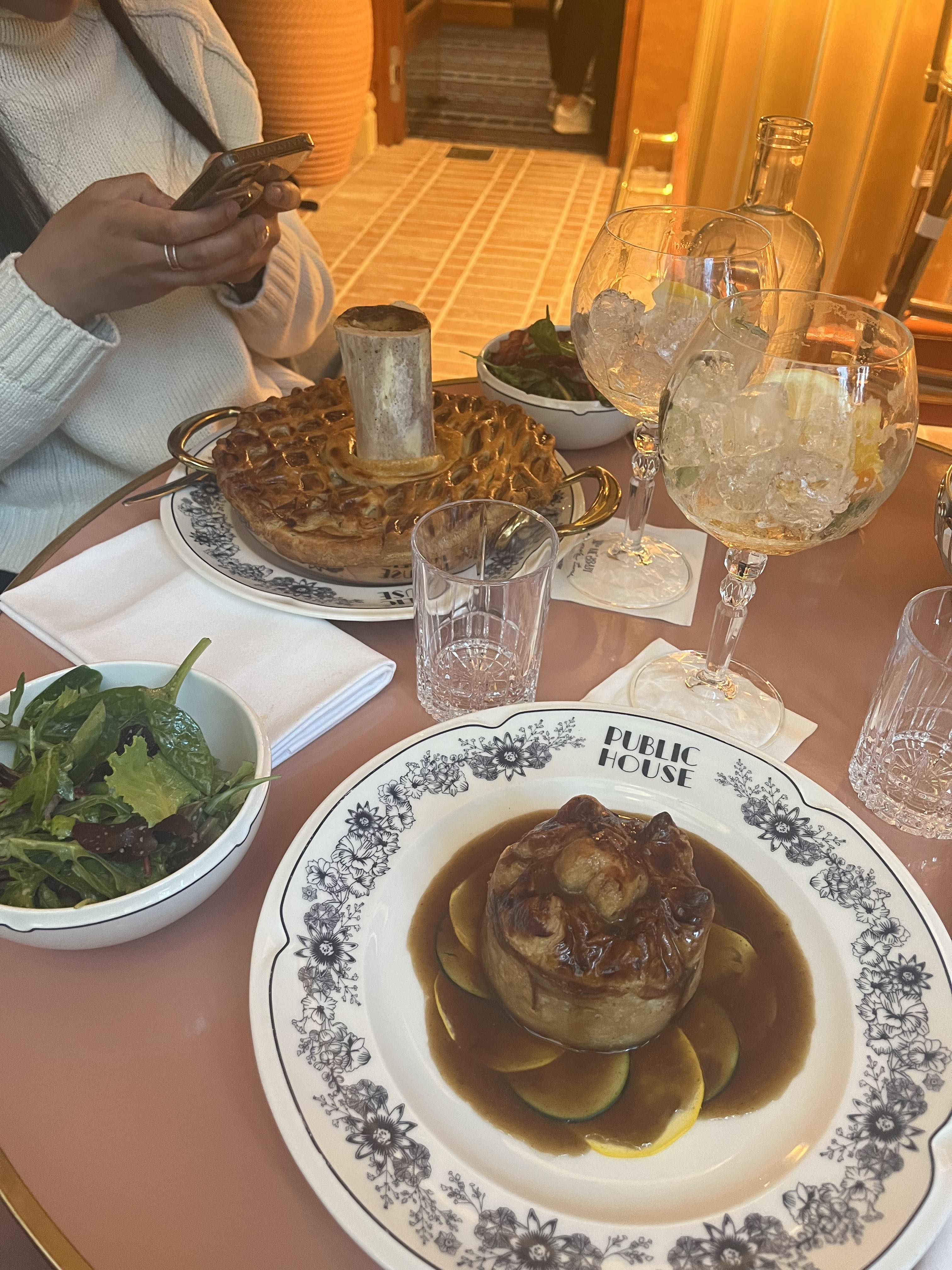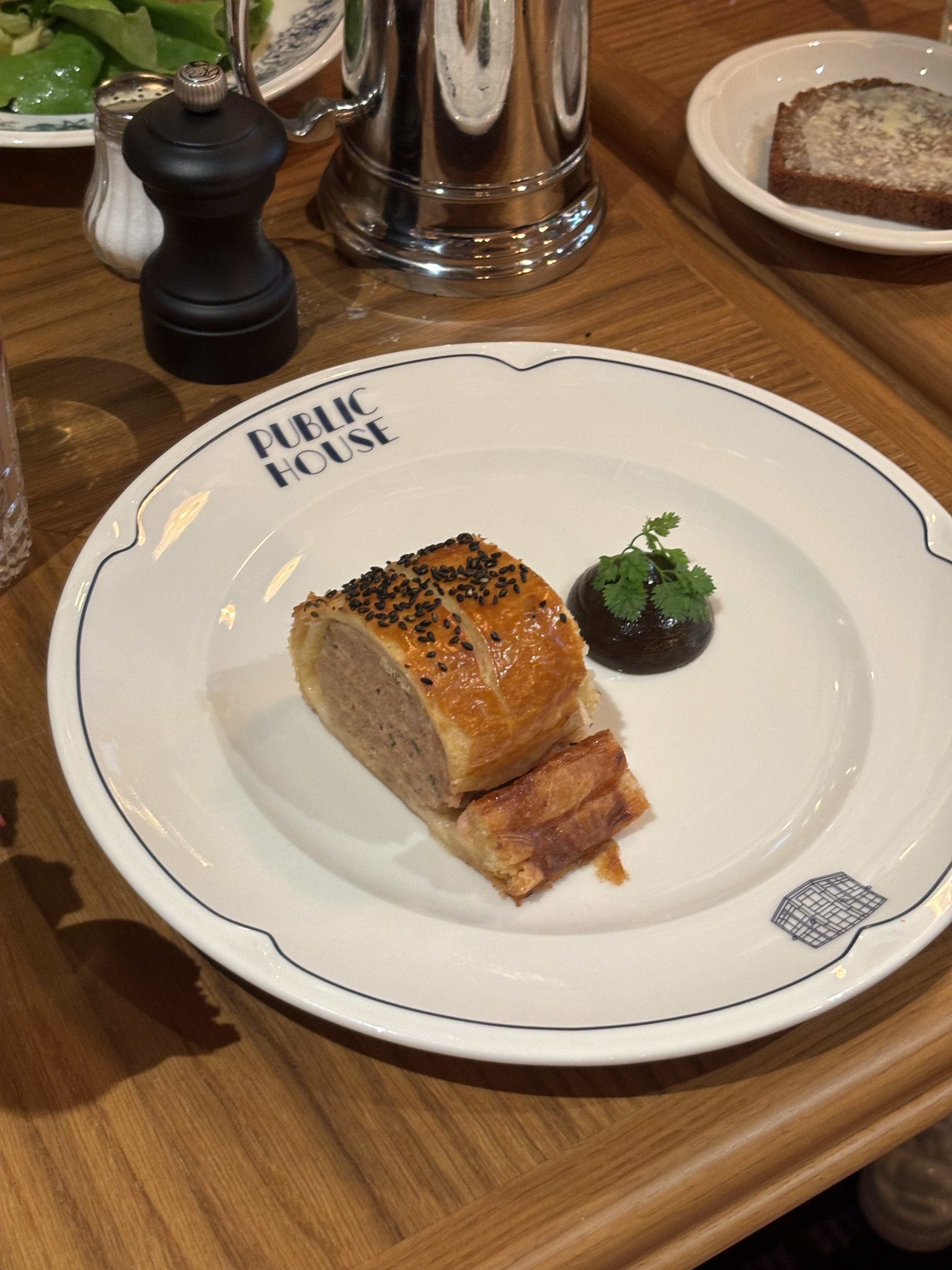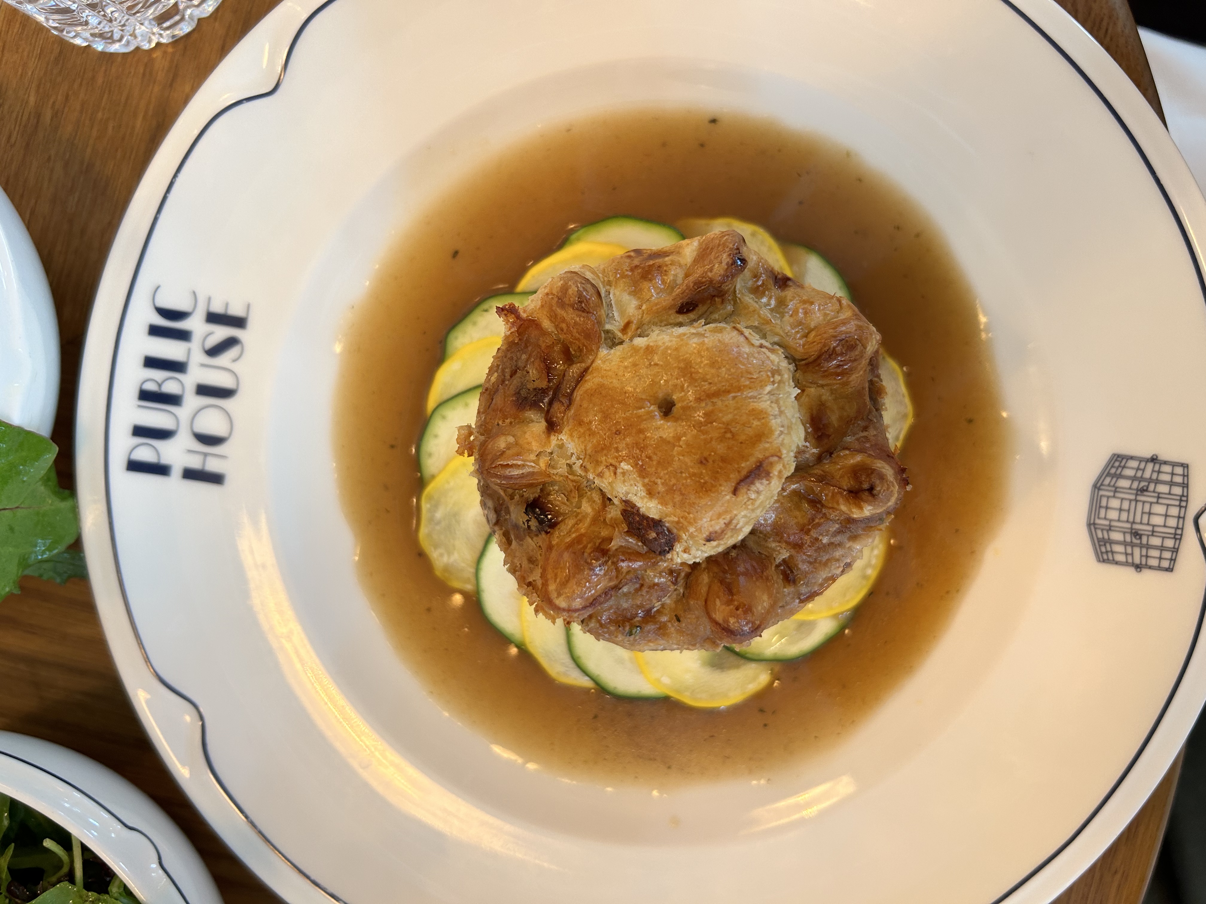 Public House est un joli lieu, avec une carte de la cuisine britannique authentique et de bonne qualité. Le copieux Beef Pie du chef, Calum Franklin (The Pie King), est incroyable avec son os à moëlle au milieu, et une délicieuse pâte. Nous avons beaucoup aimé les desserts : la Crème brulée au chocolat et le Trifle à la pomme et gingembre. Pour boire, une flûte de vin effervescent anglais (Gusbourne 2018), rare de trouver même en Angleterre. L'attente pour les desserts et la salle un peu bruyante ne m'empêcheront pas de mettre 5 étoiles. Notre serveuse, Hélène, était charmante et professionelle. J'ai déjà ma réservation pour demain soir !