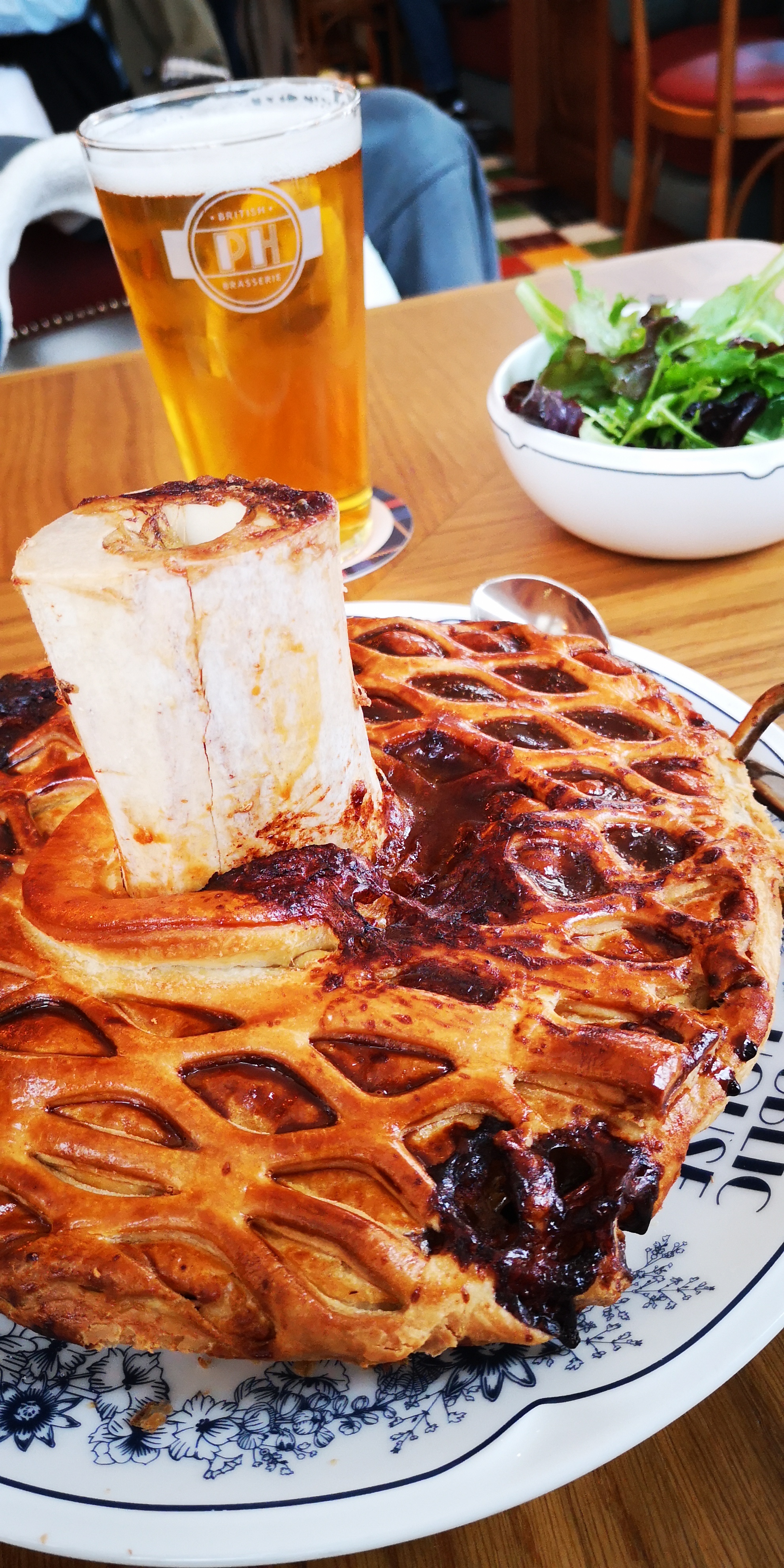 Très belle tablé anglaise, notamment la pie aux joues de bœuf, servie un peu trop rapide, pas de temps de savourer leurs excellents cocktails, on y reviendra