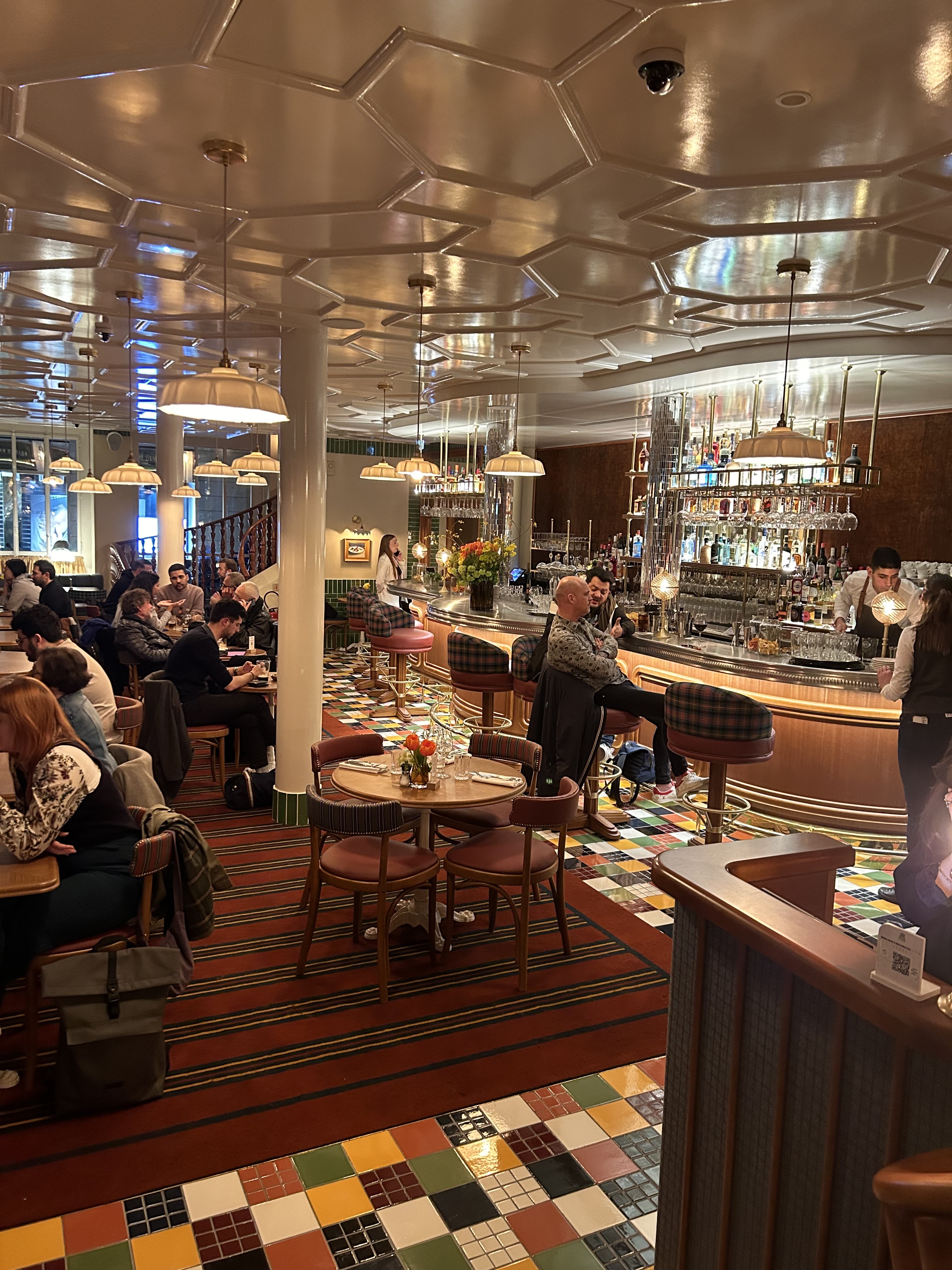 Énorme pub franco anglais, mix de brasserie et de public House. Le chef renommé pour ses pie propose aussi des classiques anglais. Déco impressionnante par le graphisme prépondérant (ligne, motifs, couleurs vives, volumes, etc). Le bar est à l'honneur, comme les cocktails. Encore en rodage (tasté semaine dernière). Les tarifs au dessus de ce que l'on s'attend en France mais Portions généreuses.. Belle qualité de produits et exécution technique parfaire. Manque juste un peu d'intensité parfois...