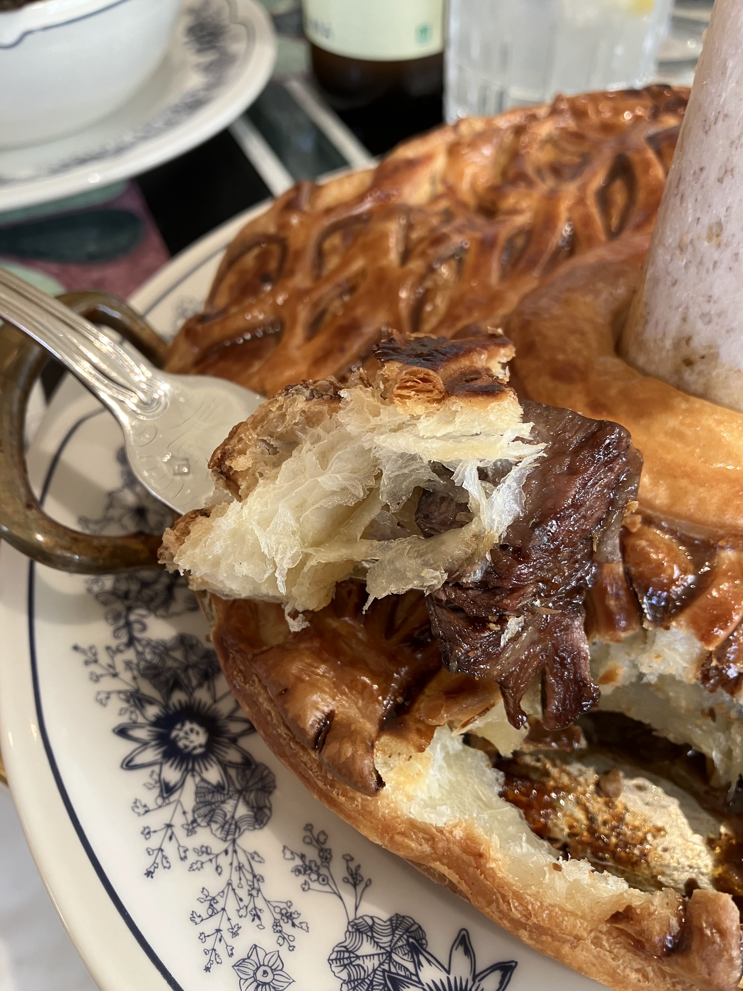 Décor et service sympa. Un peu déçu par la tourte au bœuf braisé trop simple et moyennement gouteuse même avec un bel os à moelle.