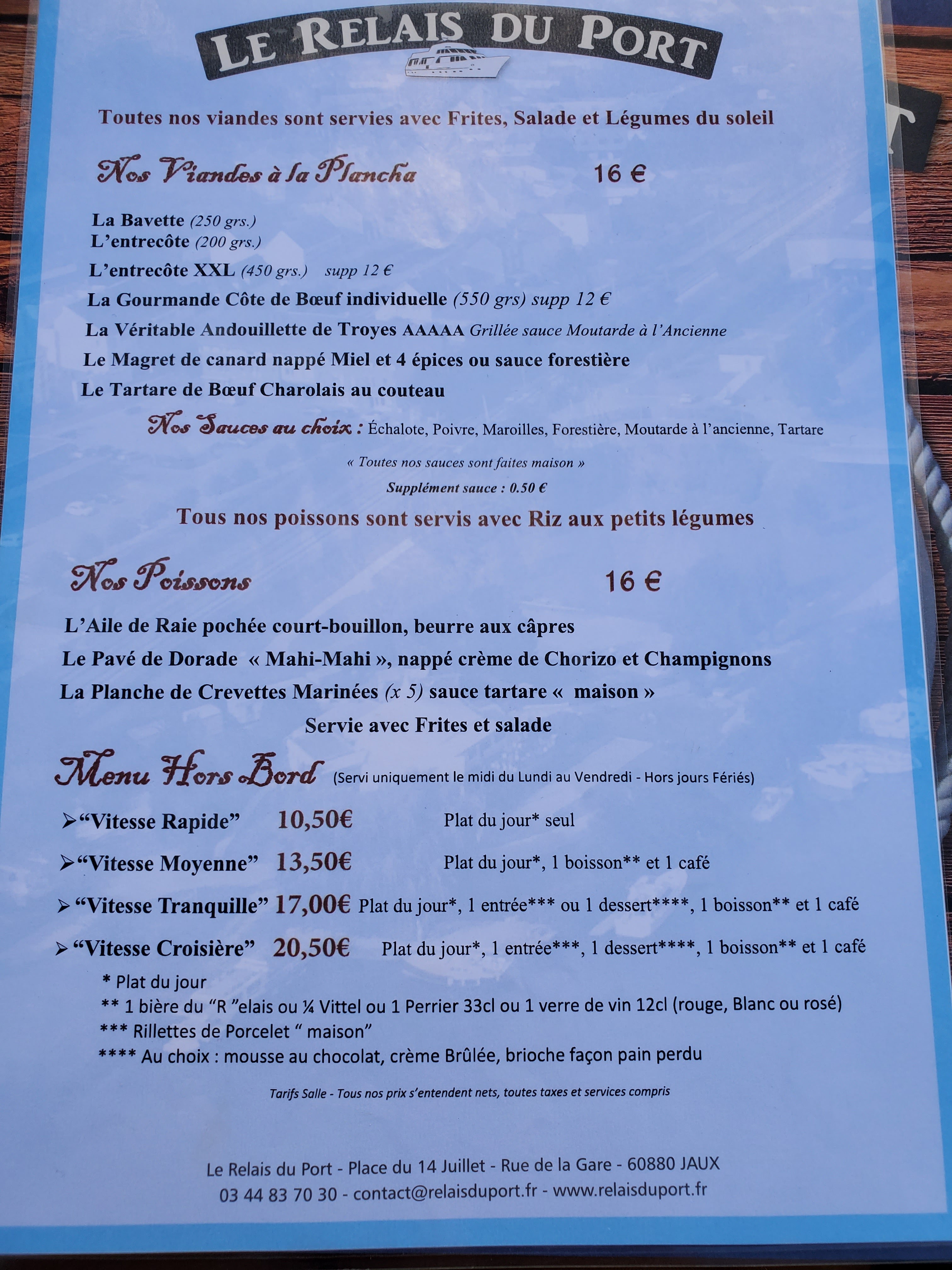 The place to be!!! Très bon accueil, un très beau cadre avec vue sur l’Oise et ses bateaux qui passent . Très bon rapport qualité/prix à la carte! La viande est délicieuse! Vous cherchez une ambiance conviviale, bien manger? Ne cherchez plus et allez au « relais du port »