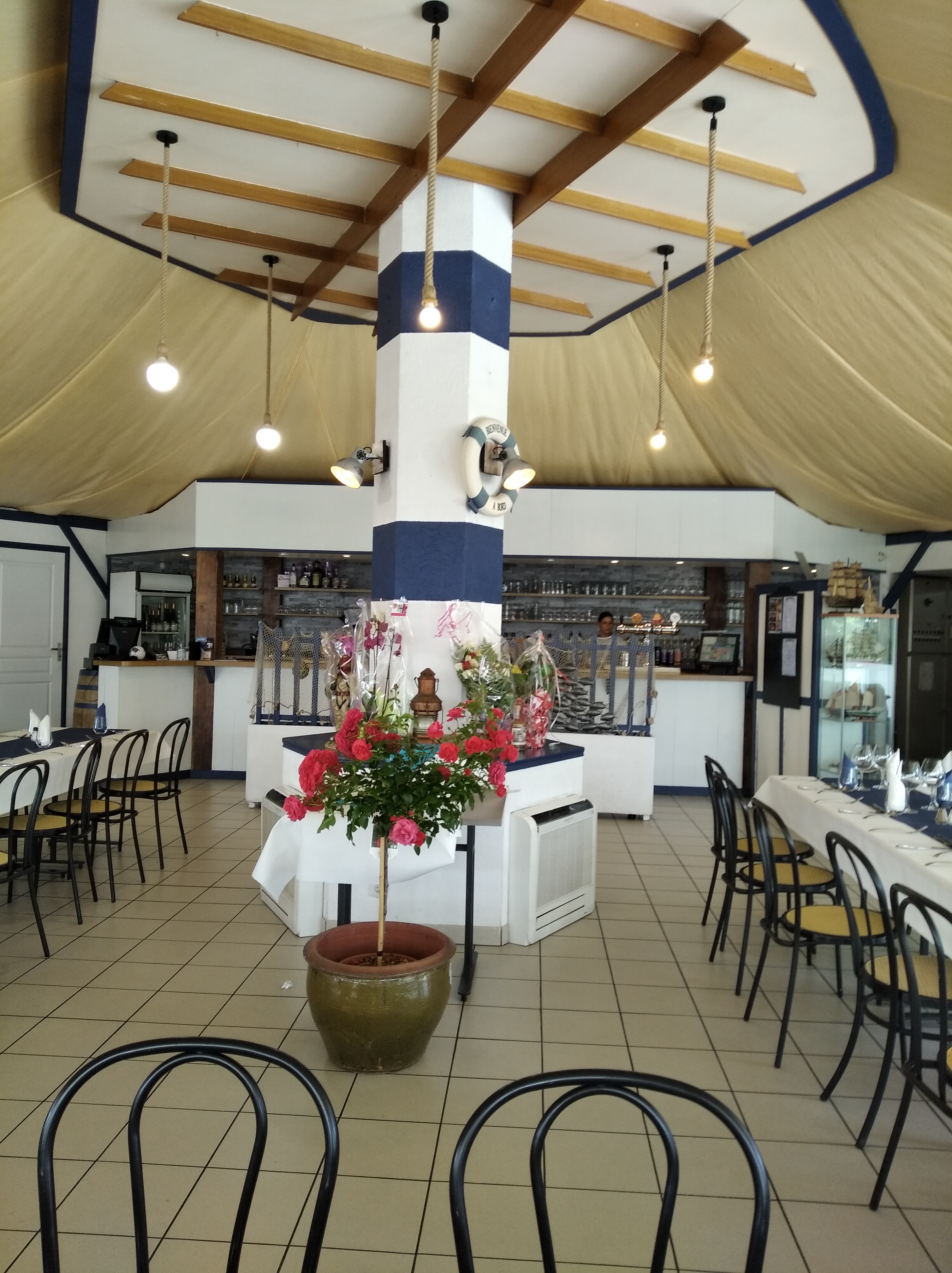 restaurant situé au bord de l'eau, tables espacées et bonne luminosité. Nous avons apprécié l'accueil souriant, le choix de la carte. Nous avons pu constater que les produits proposés sont frais et de bonne qualité. (certains produits n'étaient plus disponibles). Le service est rapide bien que le restaurant soit presque complet. Expérience à refaire